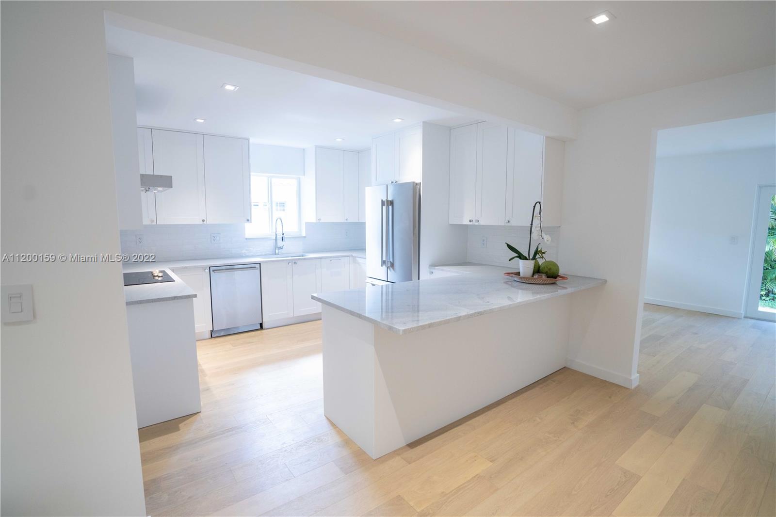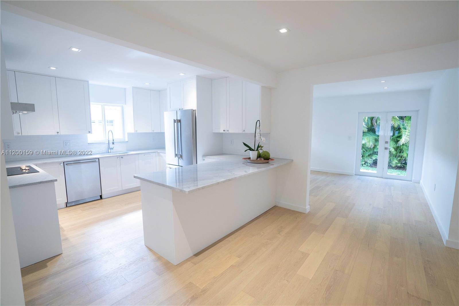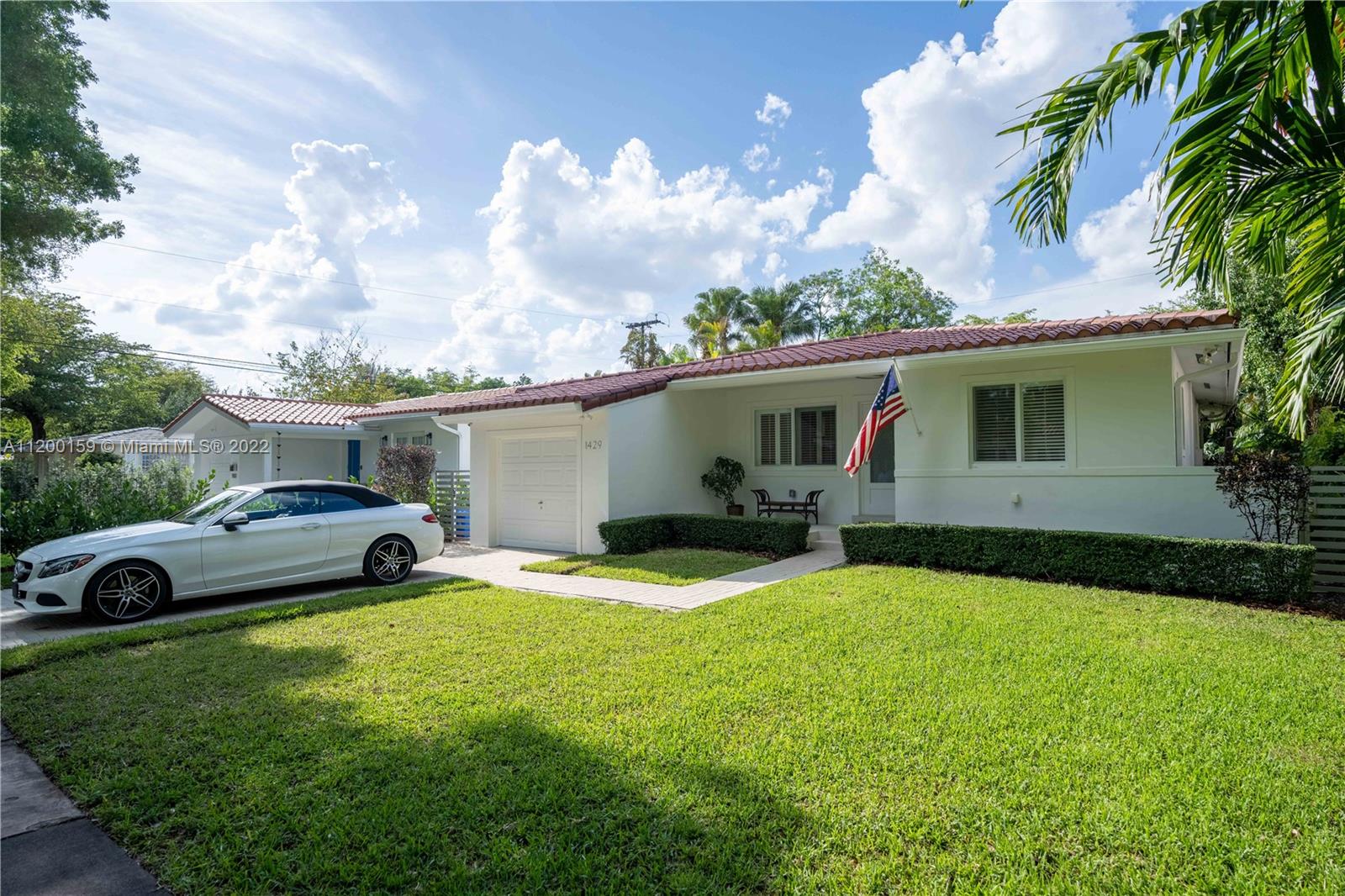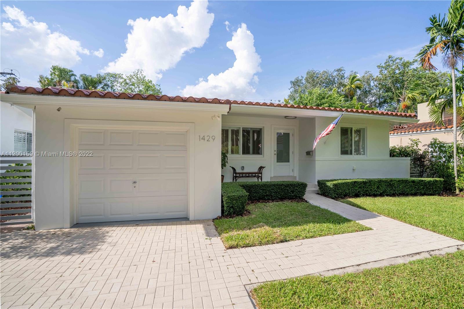 Beautiful turn-key ,open concept home on a no through street in the heart of Coral Gables boasting high end finishes w/ impct windws & drs. European Oak floors throughout rooms & common areas & Italian marble in both b/rooms w/ custom vanities & custom cut marble tile in master shower. Exceptional kitchen w/ 8ft island/peninsula & new premium Thermador "Masterpiece" appliance package w/ warranty. Deep 1.5 car garage w/ brand new Wshr/Dryr allows for plenty of room for both car & personal storage. Double French doors lead you outside to an old Chicago Brick terrace surrounded by meticulously maintained landscape. Walking distance to the Granada Golf Course & Coral Gables Country Club. This home provides all the modern luxuries while still maintaining the quintessential Coral Gables Charm.