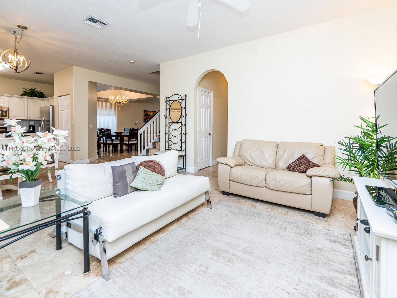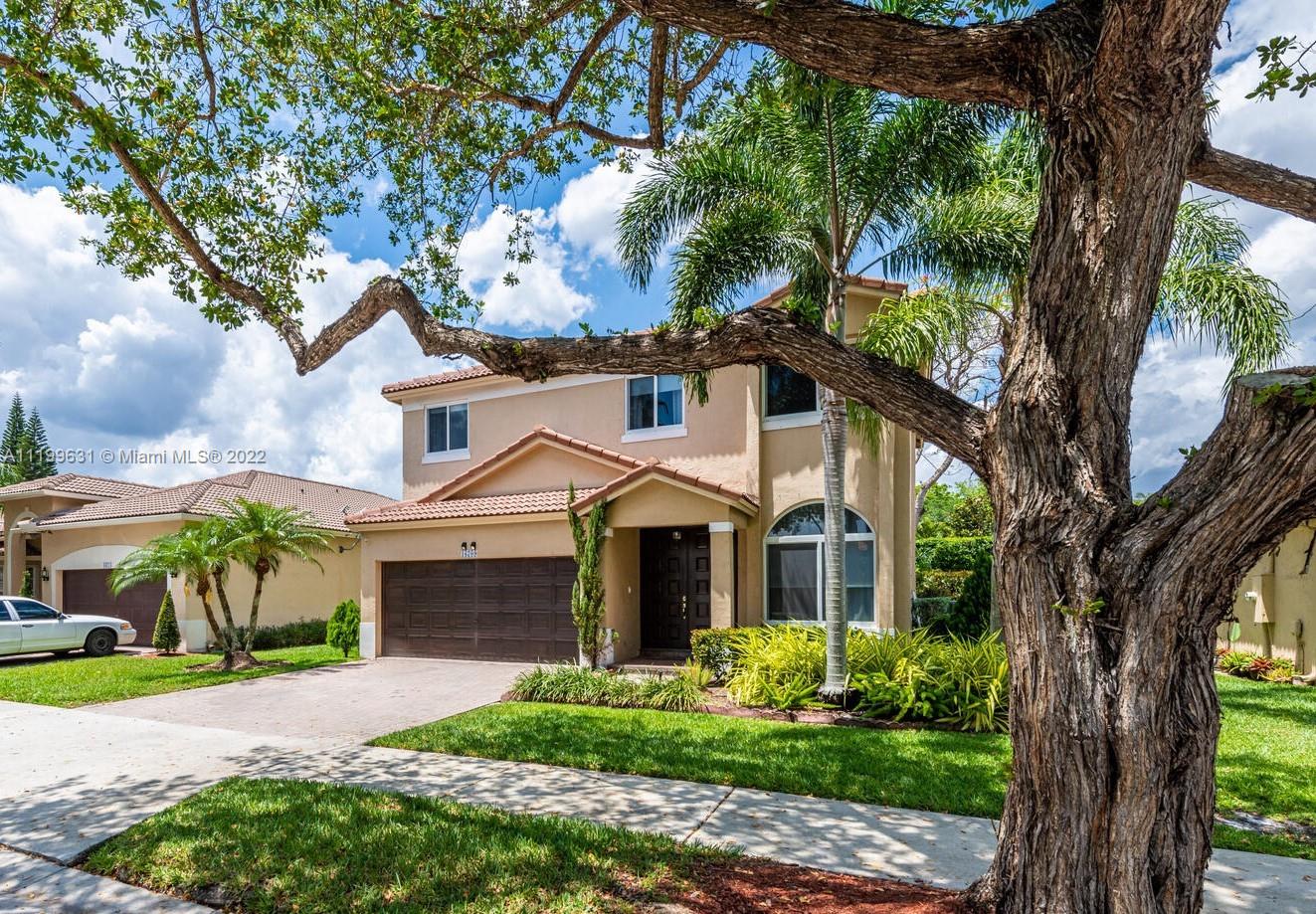 Spacious 2 story home in the desirable 24 hr gated community of Emerald Estates. This 4 bedroom/2.5 bathrooms features beautiful marble flooring downstairs, hurricane impact windows and doors throughout the house, newer air conditioner & hot water heater, kitchen has granite counter tiles w/stainless steel appliances. 2 car garage. Convenient to shopping, restaurants, and major highways. HOA fees include maintenance of lawn, tree trimming, fertilization, community pool, fitness center, kid's play area, basic cable & wifi. A+ Rated Schools.