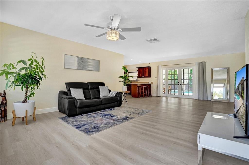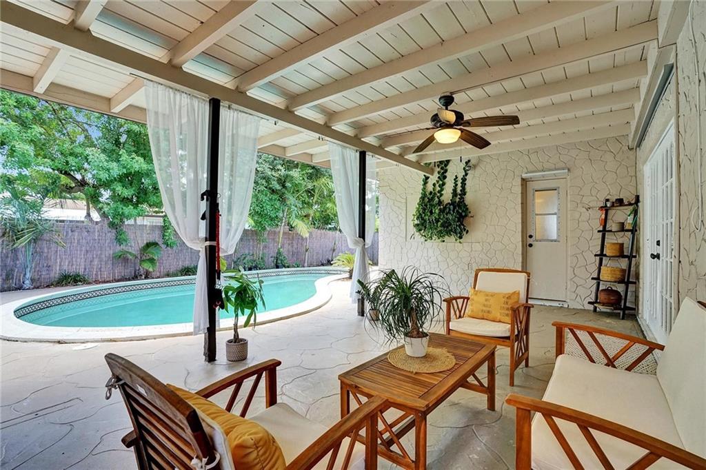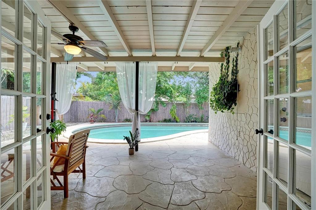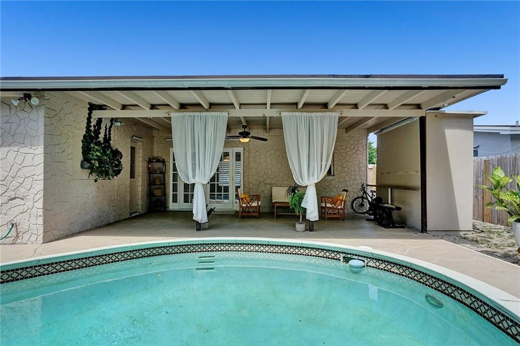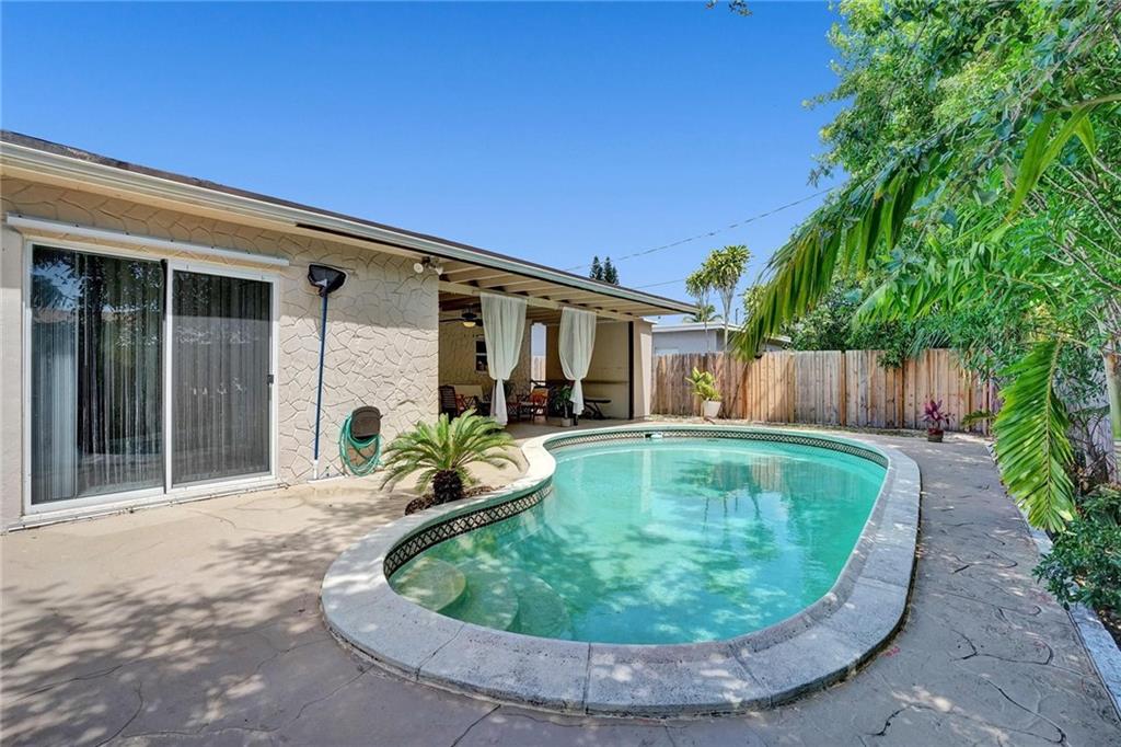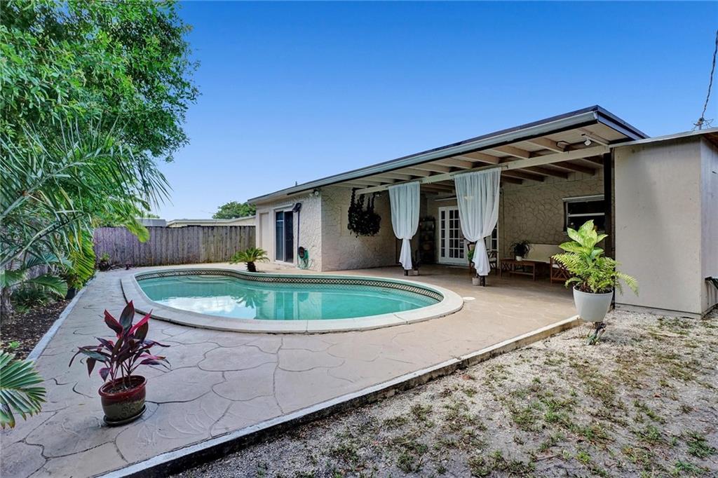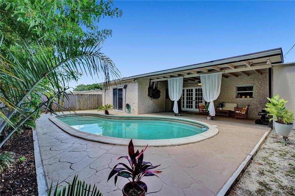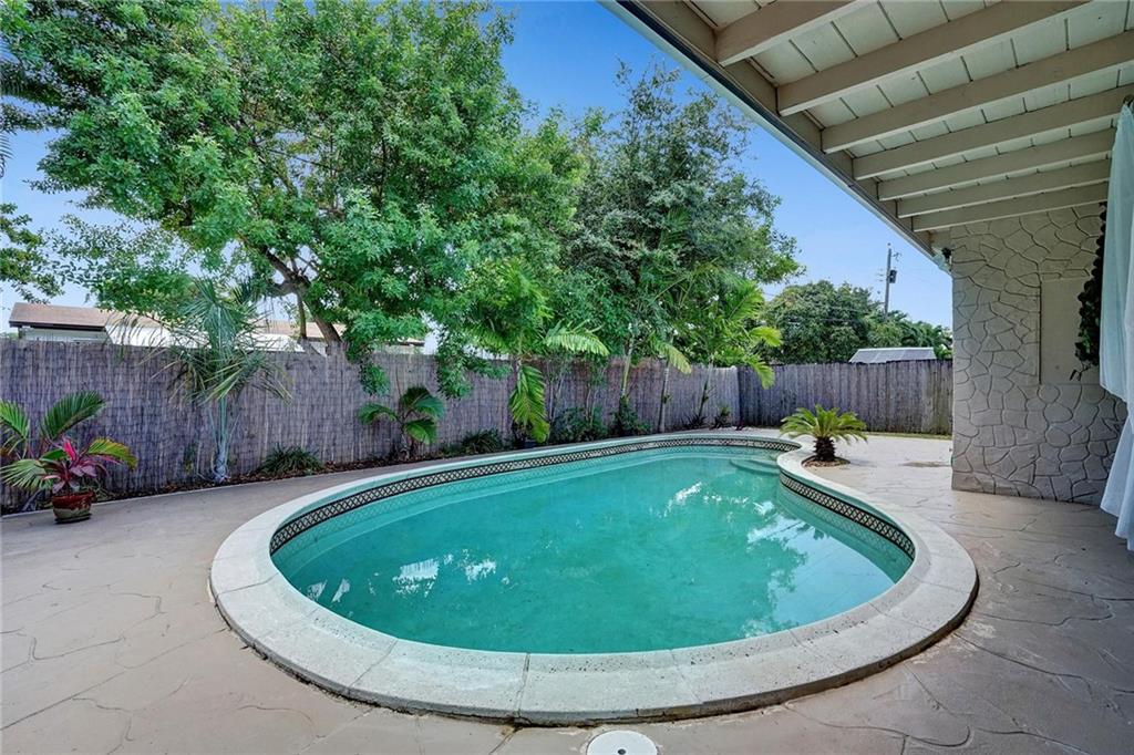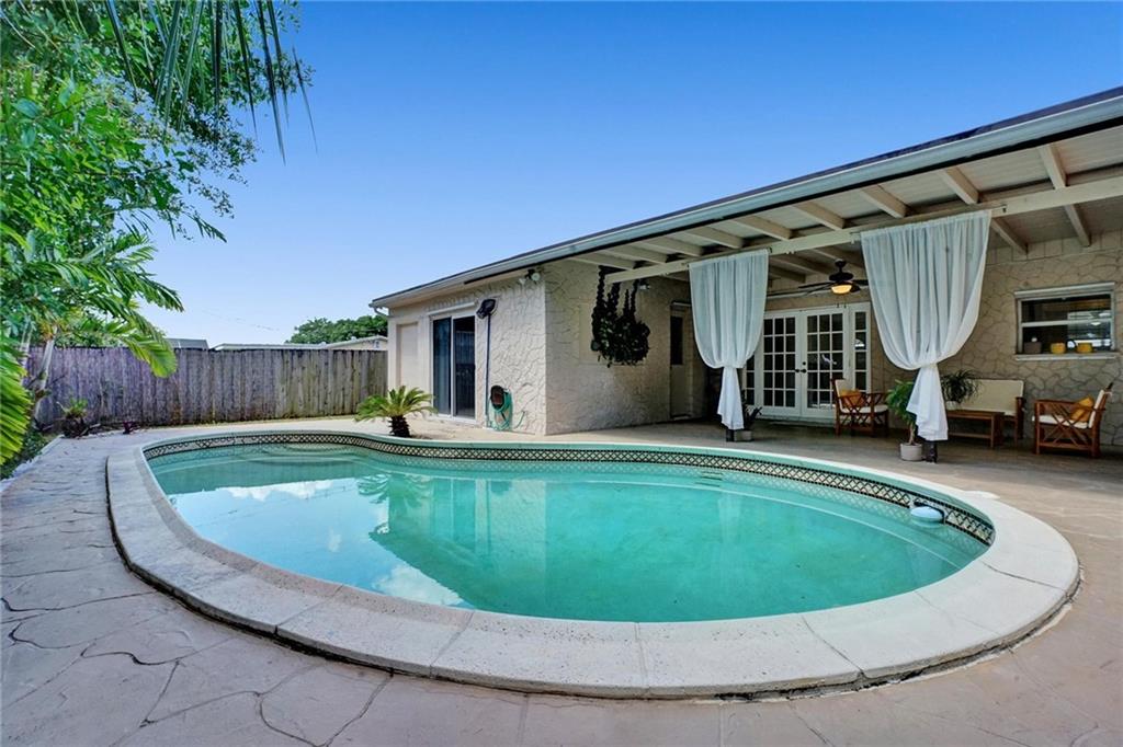 Welcome Home! Brand New Shingle Roof! Brand New A/C 06/2022. No HOA! This beautiful 3 bedroom plus den awaits your family. Nice open floor plan. Split bedrooms. New Laminate throughout home. Upgraded kitchen with stainless appliances. Both bathrooms have been updated. This home also features an extra room which can be 4th bedroom (no closet), office, workout room, play room ect. Master bedroom overlooks very inviting pool area. Cabana bathroom leading to pool. Go out the french doors and relax on your private covered patio. Hurricane Shutters, Fenced yard. Freshly painted. Newer hot water heater. Neat and clean. Don't miss this one. Call today! Showings start Wednesday, June 22.