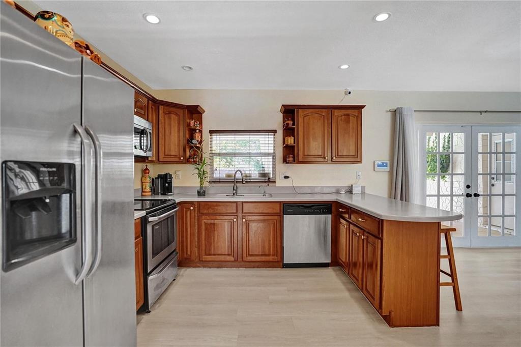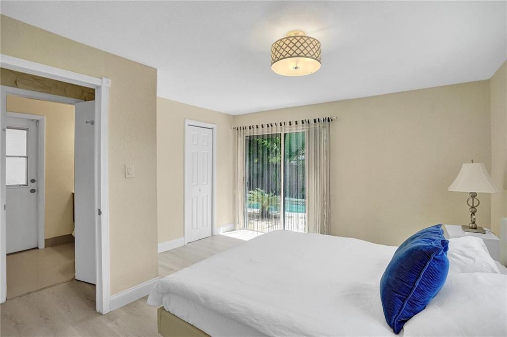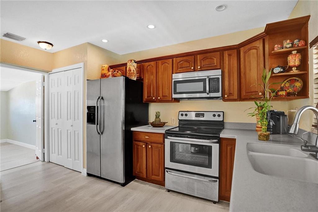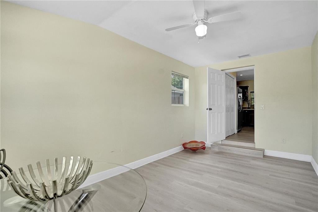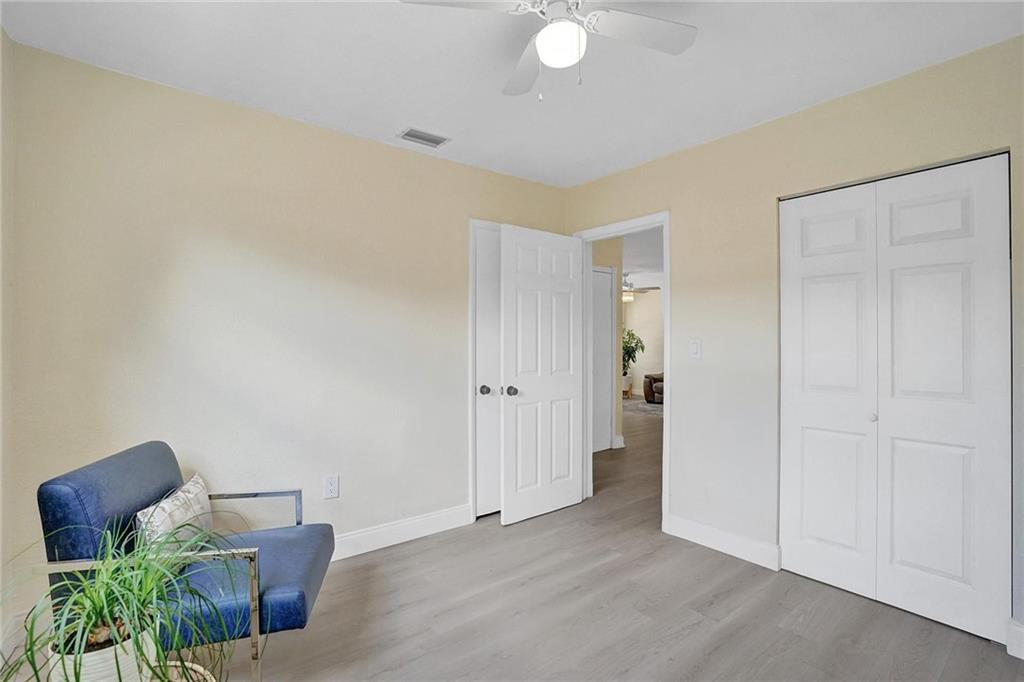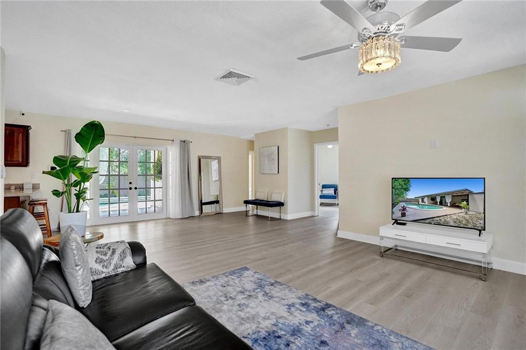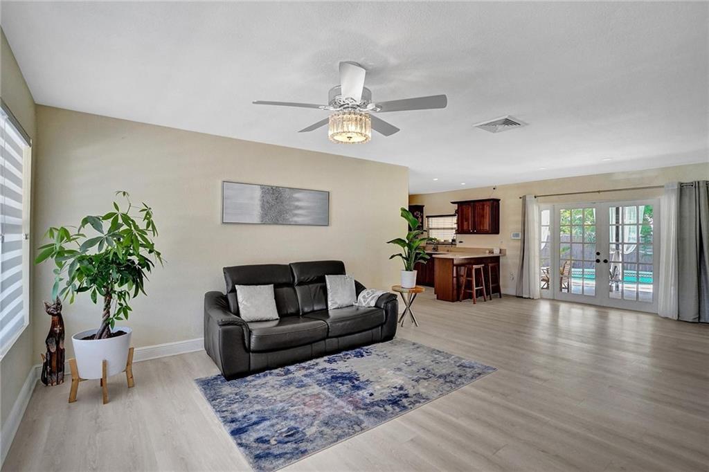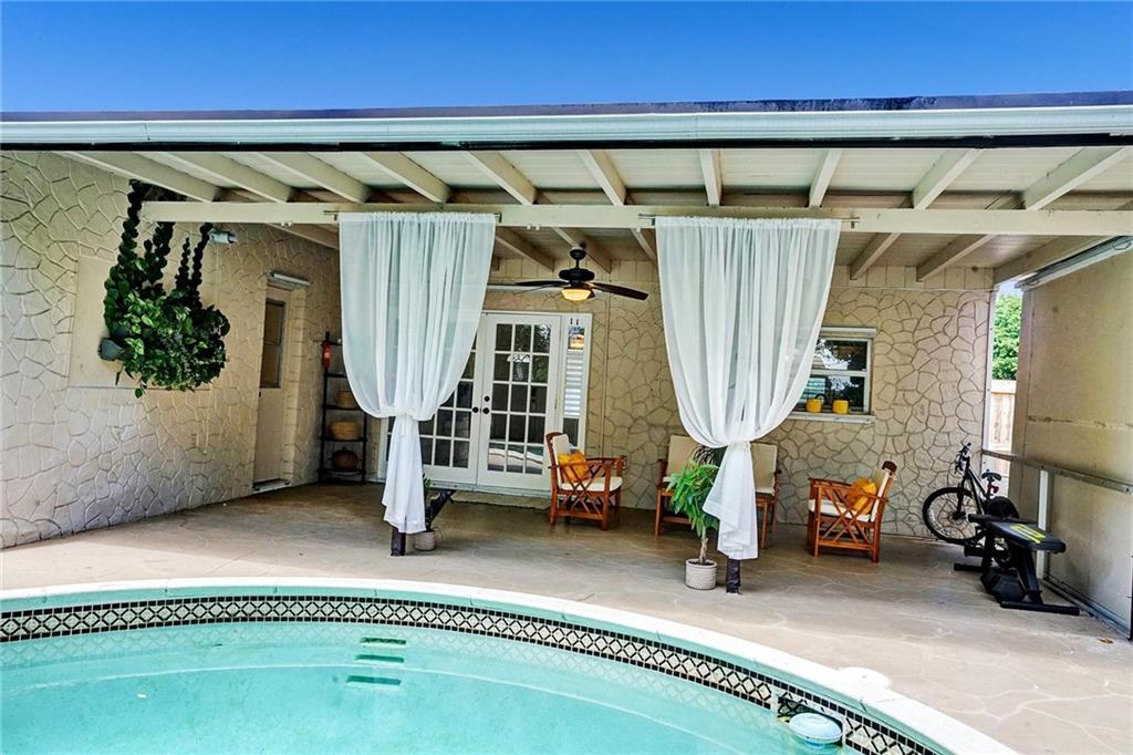 Welcome Home! Brand New Shingle Roof! Brand New A/C 06/2022. No HOA! This beautiful 3 bedroom plus den awaits your family. Nice open floor plan. Split bedrooms. New Laminate throughout home. Upgraded kitchen with stainless appliances. Both bathrooms have been updated. This home also features an extra room which can be 4th bedroom (no closet), office, workout room, play room ect. Master bedroom overlooks very inviting pool area. Cabana bathroom leading to pool. Go out the french doors and relax on your private covered patio. Hurricane Shutters, Fenced yard. Freshly painted. Newer hot water heater. Neat and clean. Don't miss this one. Call today! Showings start Wednesday, June 22.