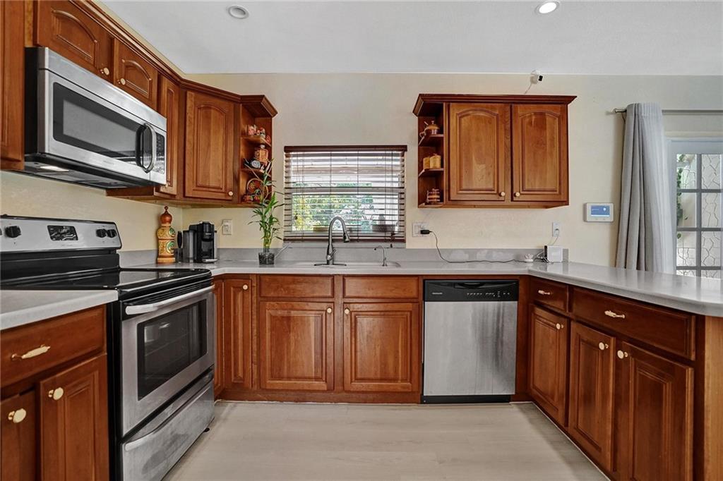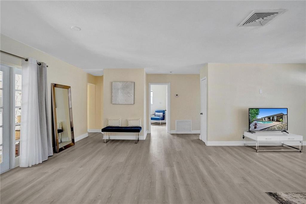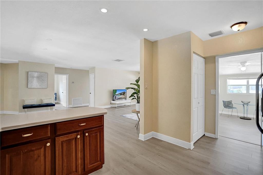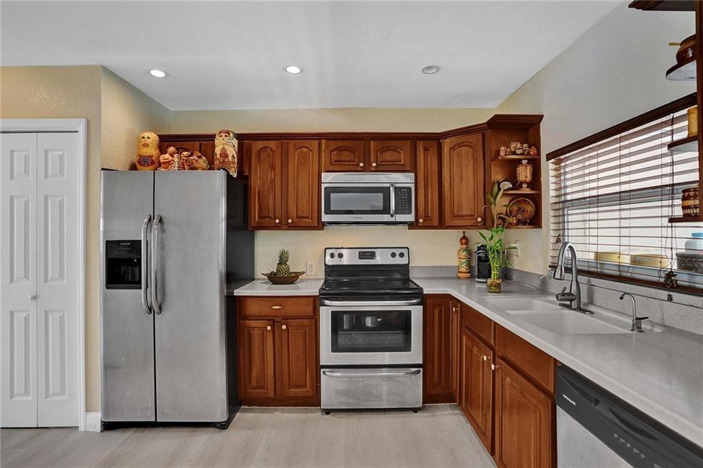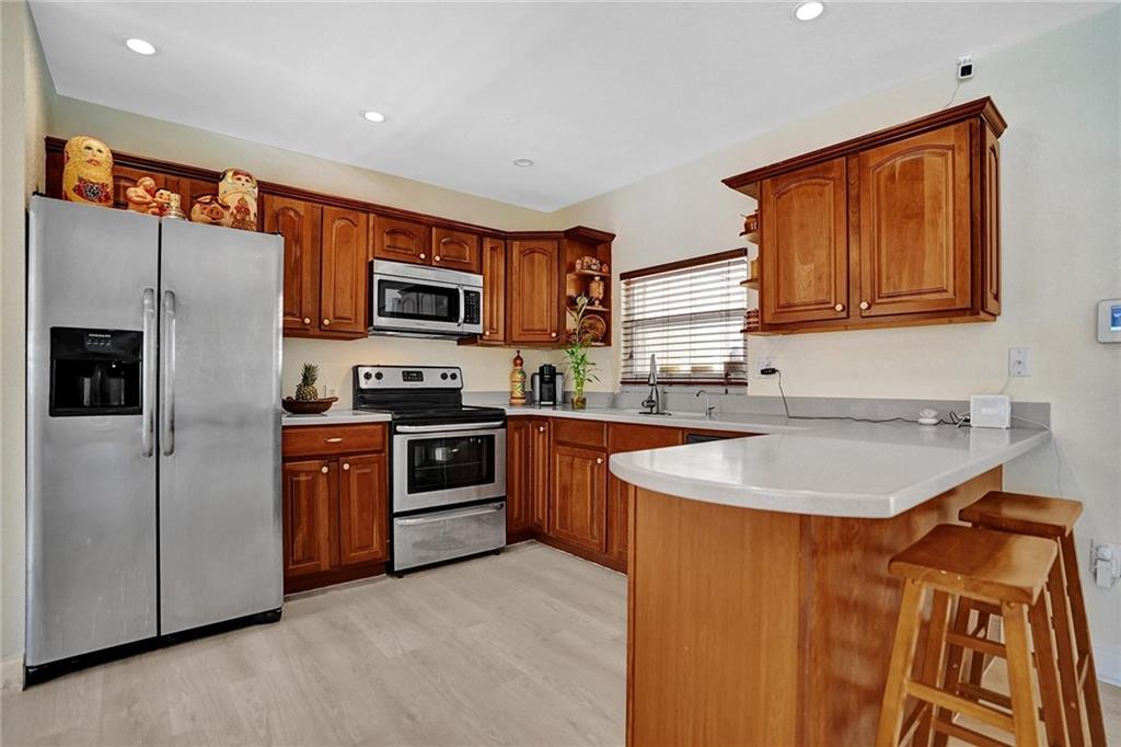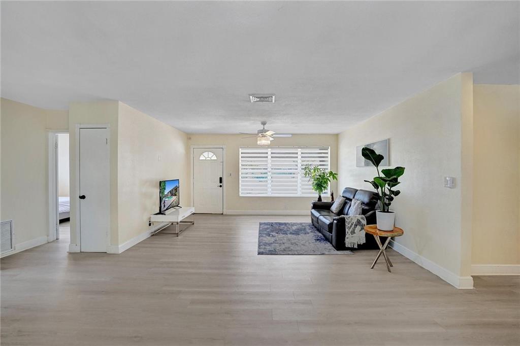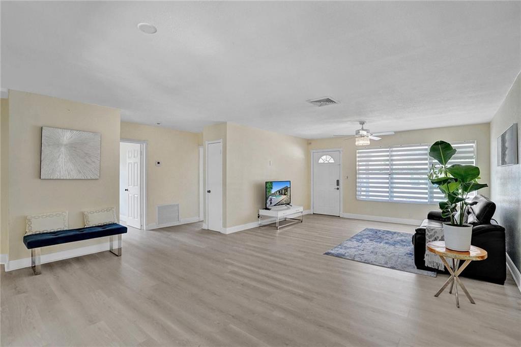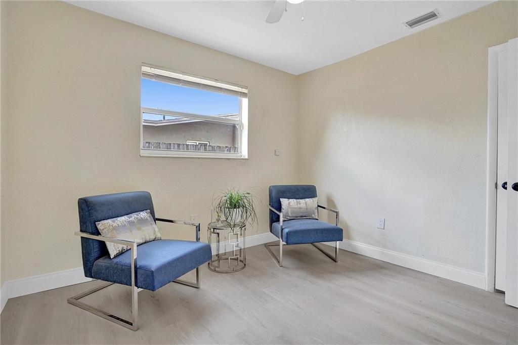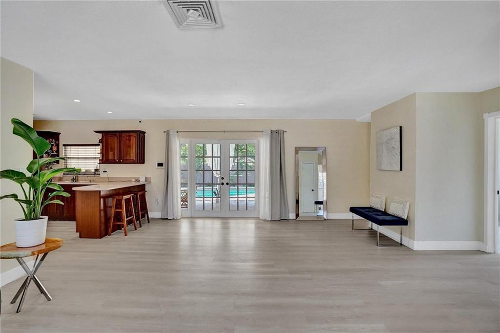 Welcome Home! Brand New Shingle Roof! Brand New A/C 06/2022. No HOA! This beautiful 3 bedroom plus den awaits your family. Nice open floor plan. Split bedrooms. New Laminate throughout home. Upgraded kitchen with stainless appliances. Both bathrooms have been updated. This home also features an extra room which can be 4th bedroom (no closet), office, workout room, play room ect. Master bedroom overlooks very inviting pool area. Cabana bathroom leading to pool. Go out the french doors and relax on your private covered patio. Hurricane Shutters, Fenced yard. Freshly painted. Newer hot water heater. Neat and clean. Don't miss this one. Call today! Showings start Wednesday, June 22.