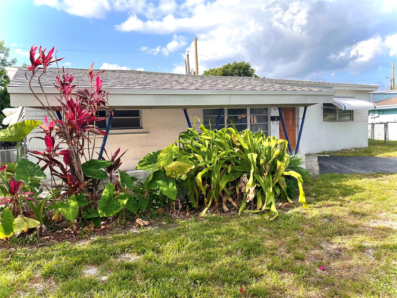 FOR SALE AS IS. Welcome to 7201 Shalimar St., a midcentury design property full of potential with an open floor plan; 3 bedrooms, 2 updated bathrooms, and vintage style kitchen.New roof and updated A/C. Bonus multi-functional room usable as an office or guest bedroom with additional exterior side door. This home has a full laundry room next to the kitchen which can serve as pantry as well. Good sized fenced backyard. Space on the sides to park a boat or RV. Peaceful neighborhood located in a convenient location. Just minutes from virtually everything including groceries, retail, dining, entertainment, Hard Rock Stadium, and the turnpike, with easy access to two international airports and the Hard Rock Hotel & Casino. House need updates and renovations.