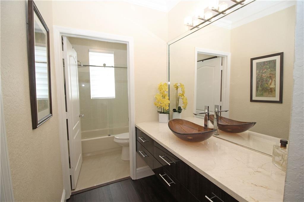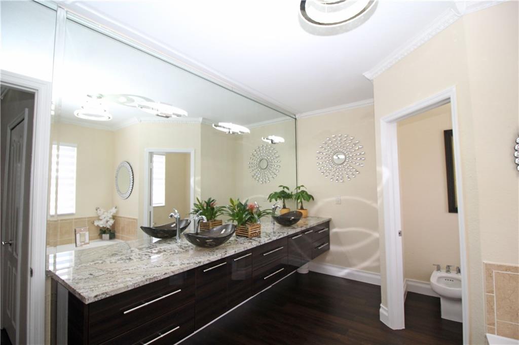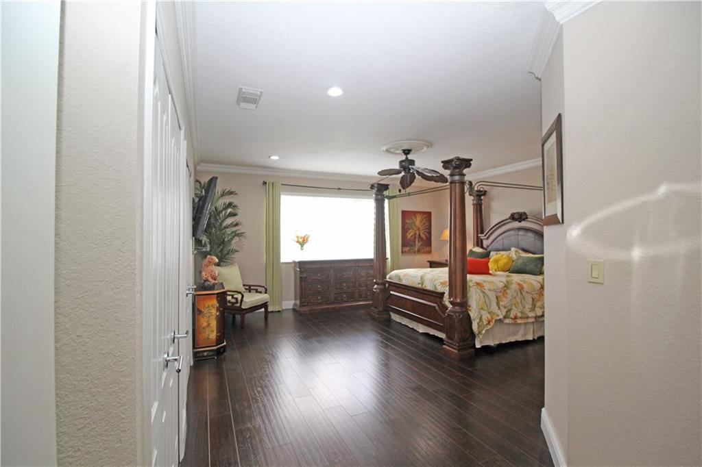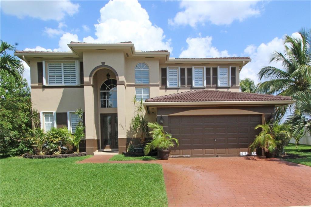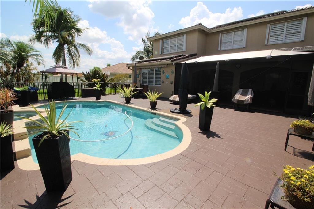 MAGNIFICENT 2 STORY 4 BEDROOM + DEN (COULD BE 5 BED) 3.5 BATHROOMS. EXTRA LARGE LOT IN DESiRABLE MONARCH LAKE. This exquisite home offers 2 master bedrms, one downstairs with private bath and entrance, Zebra blinds, Alarm system, tropical landscaped lot full of palm, coconut, mango and avocado trees, recently remodeled throughout, double oven and gas stove in beautiful upgraded chef's kitchen, heated pool and jacuzzi, screened covered patio perfect for entertaining. SAVE up to 50% on your utility bill with 31 solar panels throughout and tankless hot water heater.