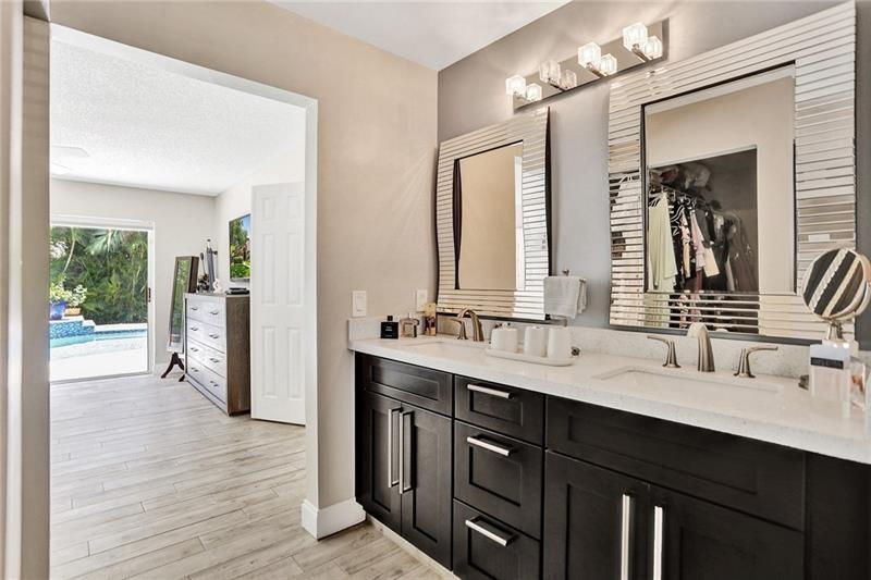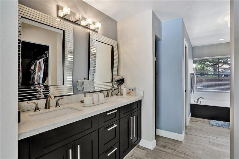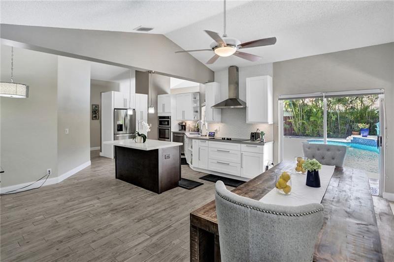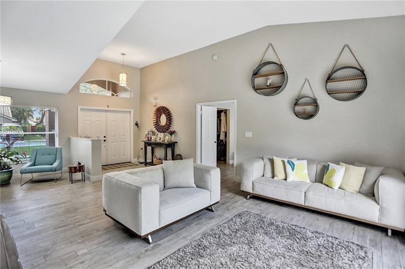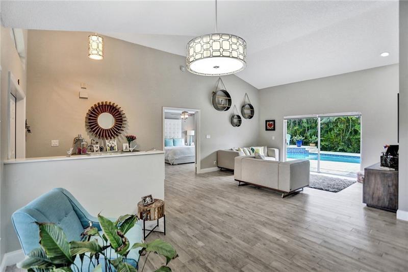 Nestled on a private fenced lot, this one story Home is just waiting what you've been looking for! Open, bright and airy floor plan featuring Newer roof (2018), totally and tastefully upgraded wood like tile floors throughout, upgraded kitchen with quartz countertops and newer SS appliances, upgraded bathrooms, walk in closets and so much more. This home has an amazing happy energy that you will feel right when you park your car, from the swing on the tree in front of the house, to the double door entry and the view of the pool and lush landscaping as you enter the house. Lots of inviting natural light.