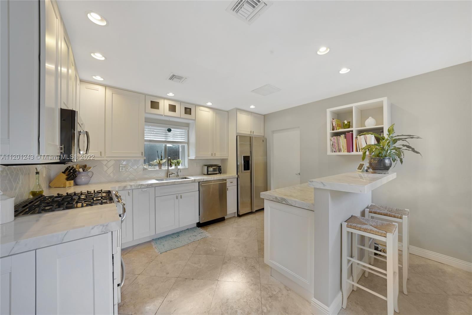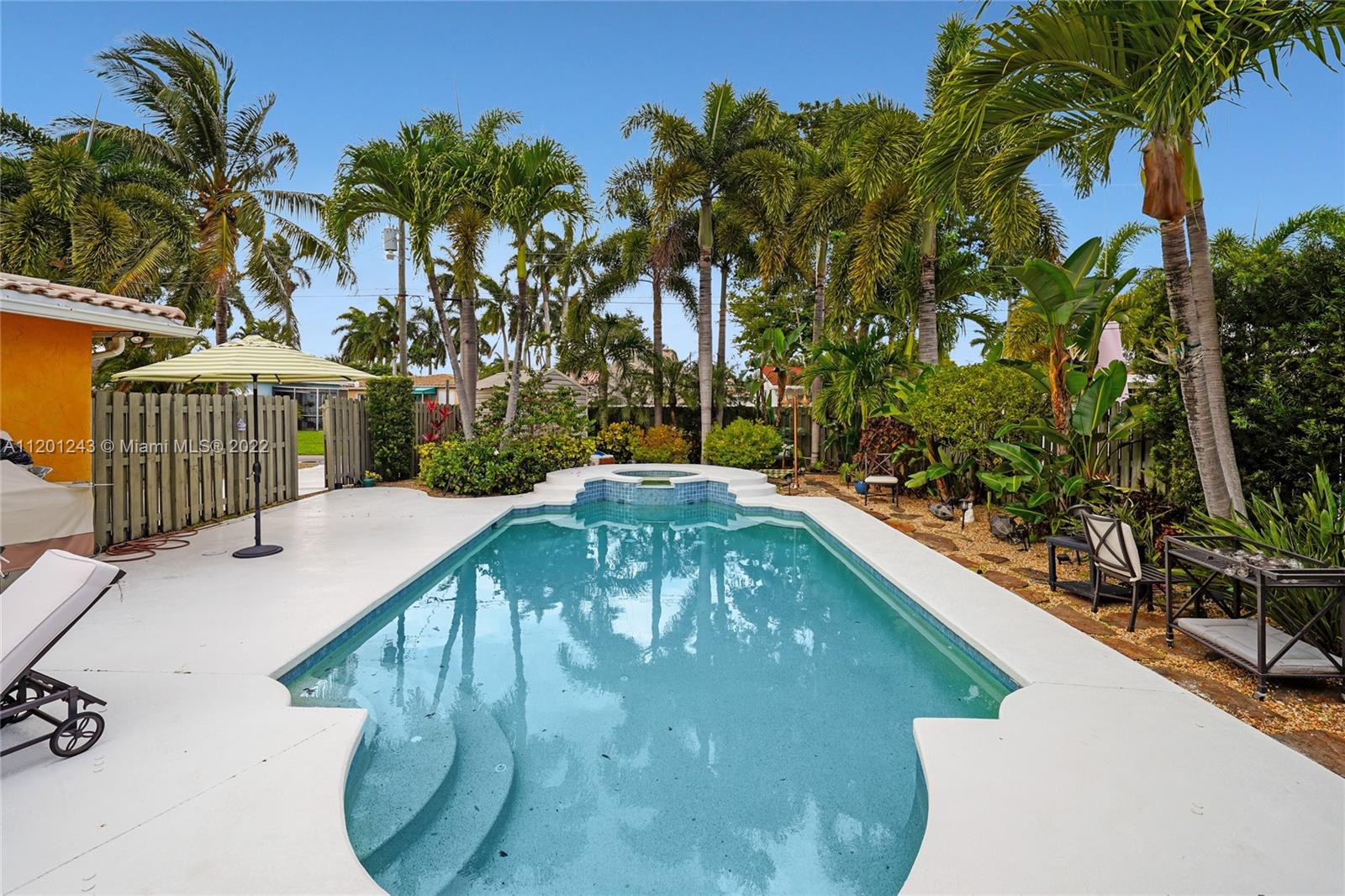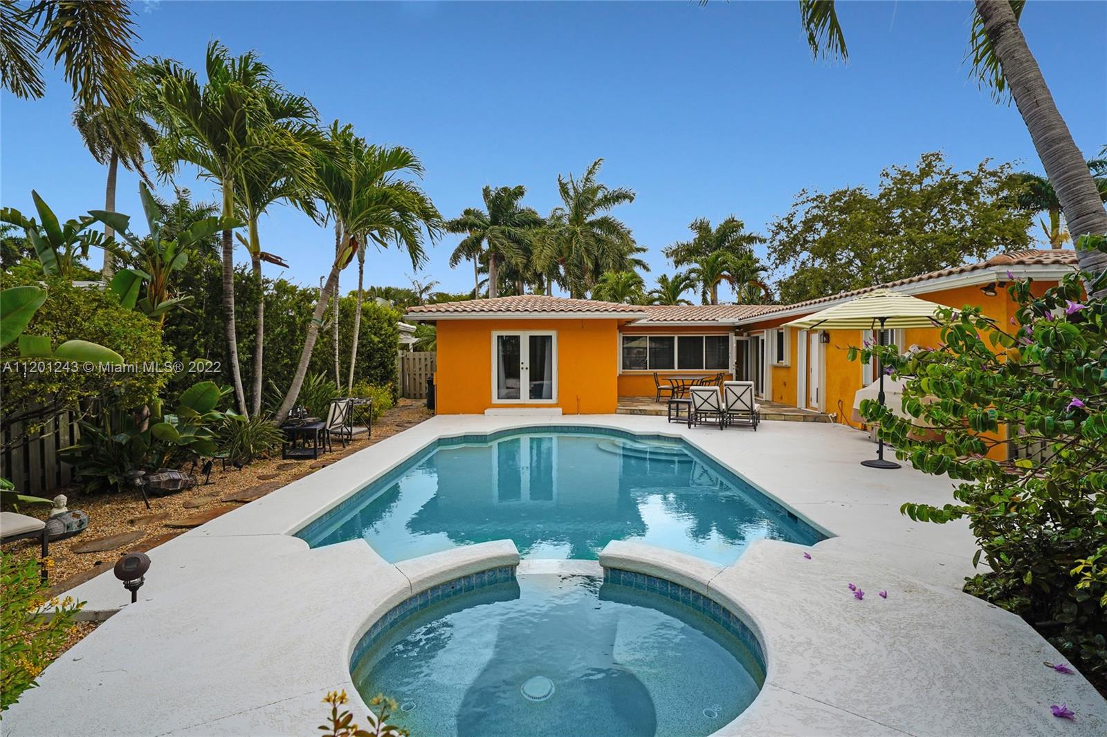 Are you ready to fall in love with the home of your dreams? This amazing property offers a recently remodeled kitchen with marble countertops, SS appliances, and gas range. Three remarkably renovated bathrooms with beautiful custom finishes, amazing spacious living quarters with custom built-ins, formal dining, commodious bedrooms including a stunning primary suite with great light from French doors that lead you into the private, fenced backyard with gorgeous landscaping. Enjoy your own personal oasis with heated pool and spa. Other features include tankless water heater, generator, two-zone HVAC, and ADT system amongst much more! Highly sought after neighborhood in Hollywood Lakes where you are walking distance from the sandy beaches of Hollywood. Make this home your own!