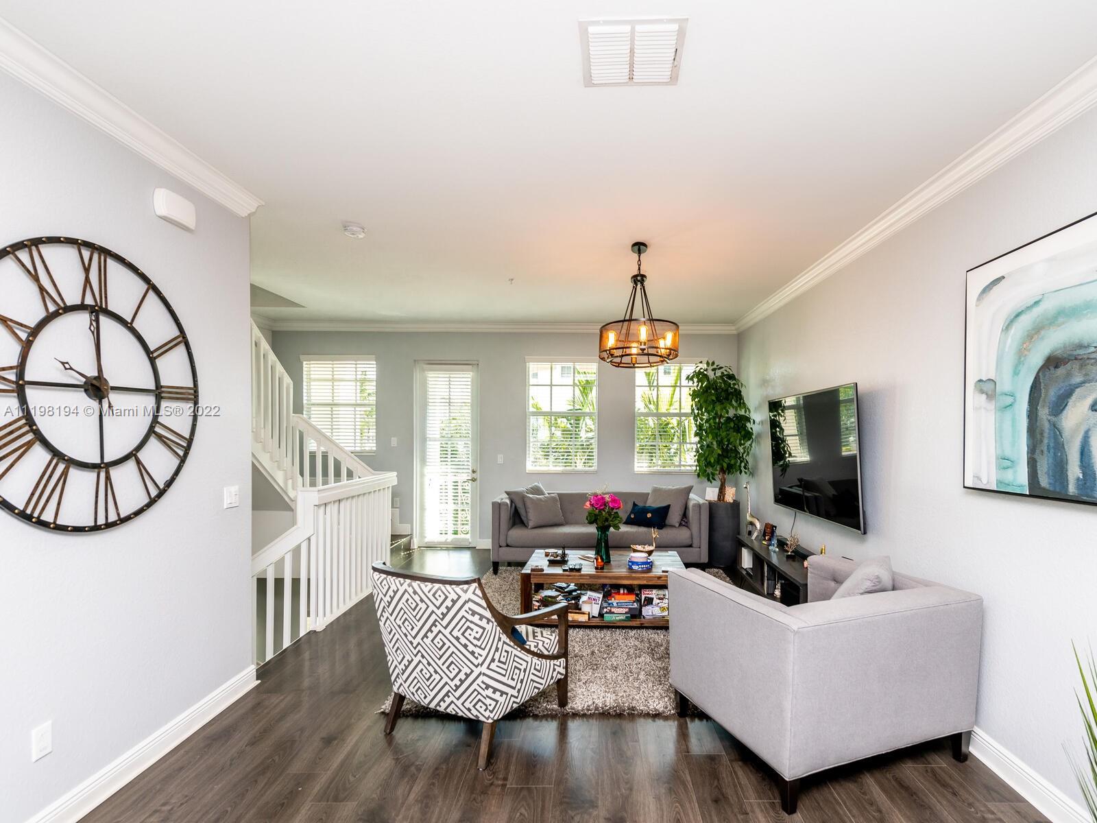 Beautiful townhouse with 3 bedrooms and 3.5 bathrooms. 1 of the bedrooms and a full bathroom are on the first floor. Updated kitchen features wood cabinetry, granite countertops, stainless steel appliances and an Island. The living area and the master bedroom have a balcony. The master bedroom has 2 walking closets. 2 car garage plus 2 parking spaces in front of the garage.