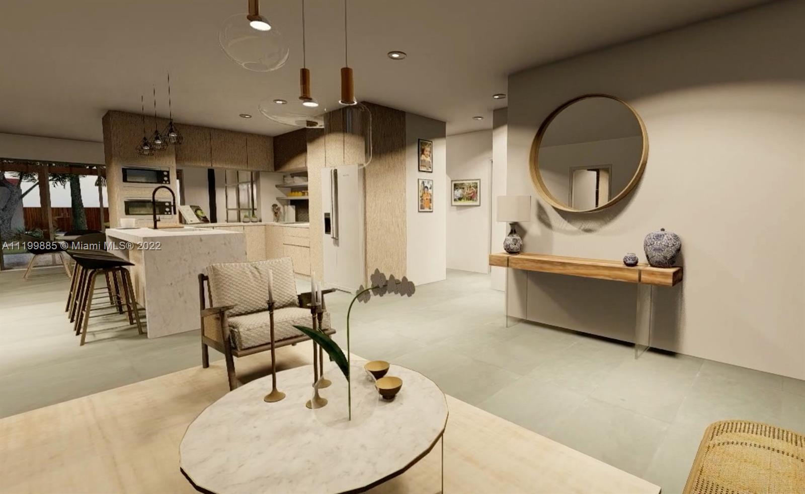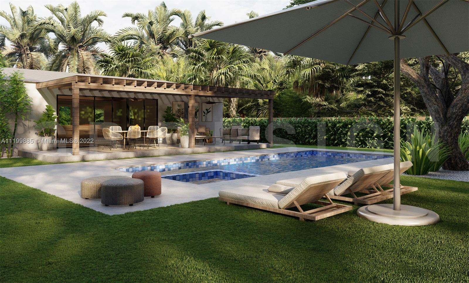 Turn-key decorator designed, fully furnished 4 bedrooms; 2 bathrooms home centrally located in desirable North Miami neighborhood. House is currently under construction and delivery date will be approximately the end of October 2022. House will be delivered as shown in the renderings. No expenses spared, recessed lights, large tile floors, costume made kitchen cabinets and bedroom closets, built-in bookshelves, lighting fixtures, window treatments. Manicured backyard with lush landscape, and large swimming pool. Living area is bigger than tax roll 1,700 SF, lot size 10,500 SF. Large concrete driveways with enough space to park several autos, RV, boat etc.