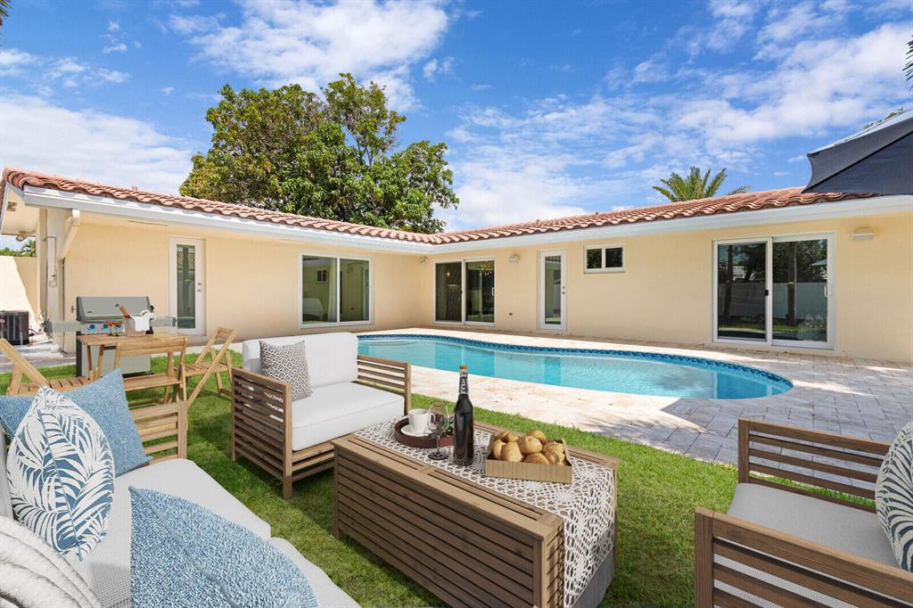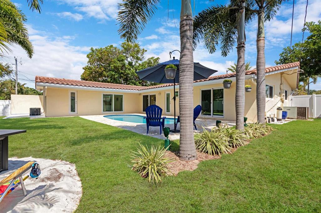 ROOF 2012. FABULOUS 4 BED (2 PRIMARYS) w/POOL VIEW, 3 BATH on LARGE CORNER LOT in ACCLAIMED IMPERIAL POINT! NO RENTAL RESTRICTIONS, NO PET RESTRICTIONS & NO HOA. IMPACT WINDOWS & DOORS THROUGHOUT/nearly 2000 sft. 15000w GENERATOR, SS APPLIANCES, LAUNDRY ROOM. OPEN CONCEPT: family room, dining area w/stunning contemporary fixtures, kitchen & a pool view. The kitchen has new JK wooden, soft close cupboards/drawers, wine cooler & under cabinet lighting. Tons of windows/sliders keep this home light & bright. The gorgeous landscaping is maintained with SIX-ZONE SPRINKLERS. 7-color-LIGHTED KIDNEY-SHAPED POOL, BACKYARD FIRE-PIT enhanced by tall palms evenly spaced & ambient lighting. The EXTRA LARGE CORNER LOT allows for a huge DOG RUN (10x50) OR KIDS PLAY SET on the grassy section on the side of
