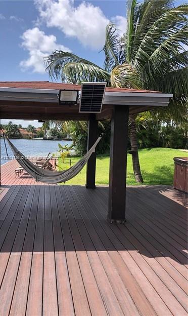 Beautiful 4 bedroom 3 bathroom house in the heart of Doral. Tastefully upgraded with sleek kitchen, modern bathrooms, spacious living area, separate dining room, laundry room and its own movie theater room. The backyard features a large pool, a build in BBQ area, bar, cabana, jacuzzi and private dock with access to the lake. All this in your backyard! Gated community with tons of amenities and security. House needs no work, just bring your furniture and move in! Must see, won't last long!