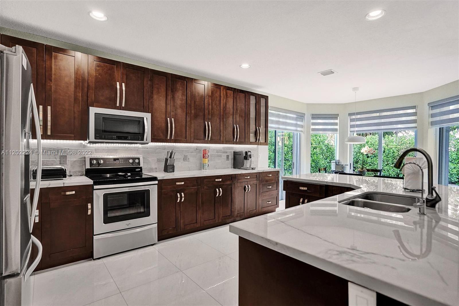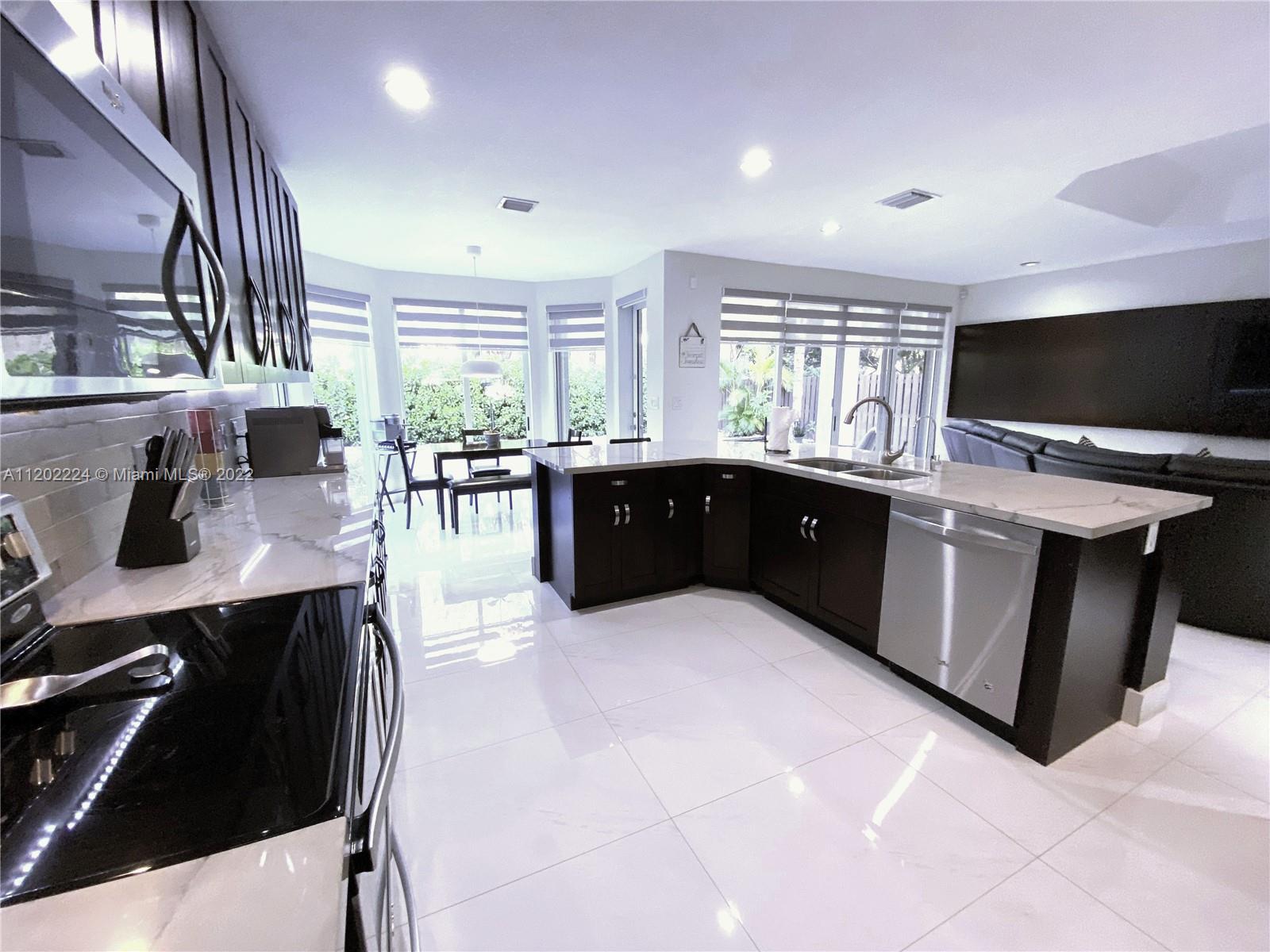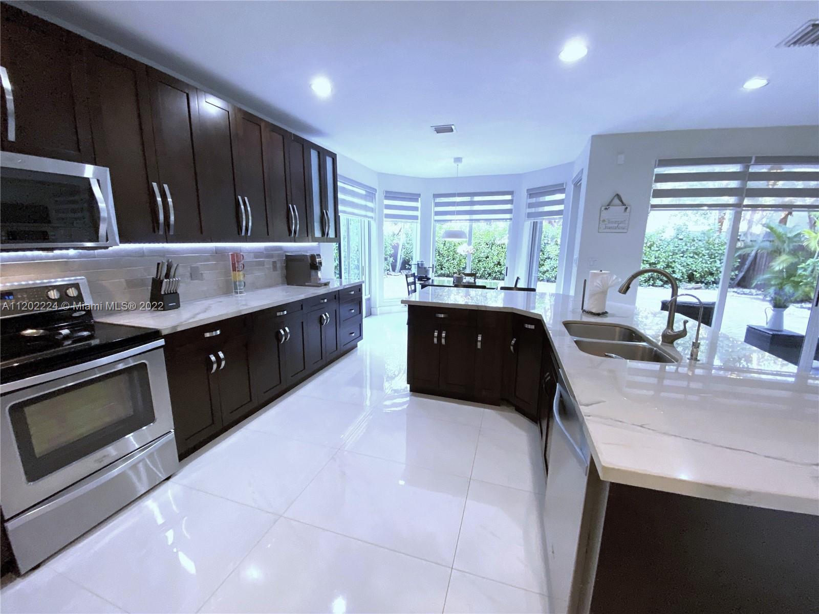 Stunning single family home in sought after Doral Isles/ St Croix community. Huge 5 bedroom,3 bathroom, 3 car garage floorplan. Boasting over 3700 Sq. ft. One full 1 bedroom and 1 bathroom downstairs. Flooring beautifully redone with porcelain tile downstairs and and upstairs. All stainless steel kitchen appliances, kitchen and bathrooms cabinets and countertops tastefully remodeled with a modern touch. Home protected by accordion shutters, great insurance savings. Pavers all around home exterior. Enjoy a resort style neighborhood with amenities such as a clubhouse with a restaurant, pool, gym, tennis court, basketball court, and soccer field. No association approval required. See brokers remarks.