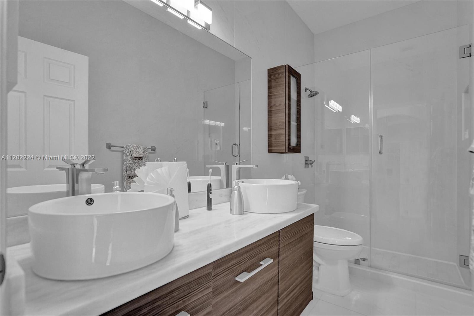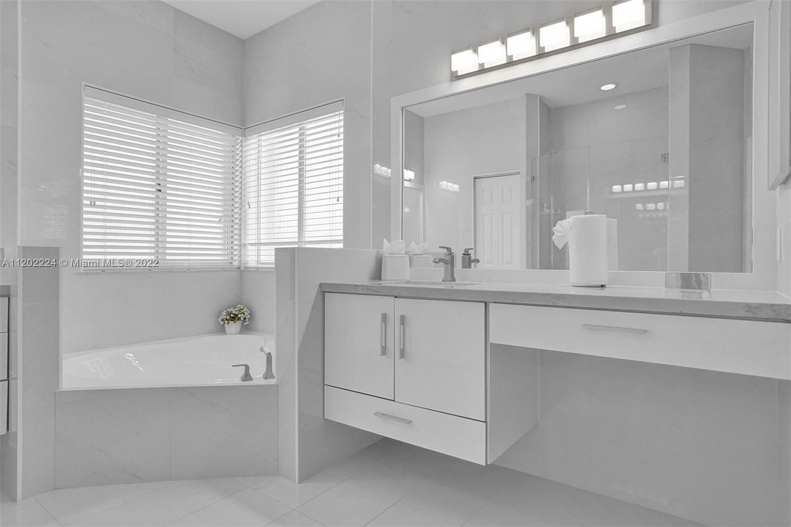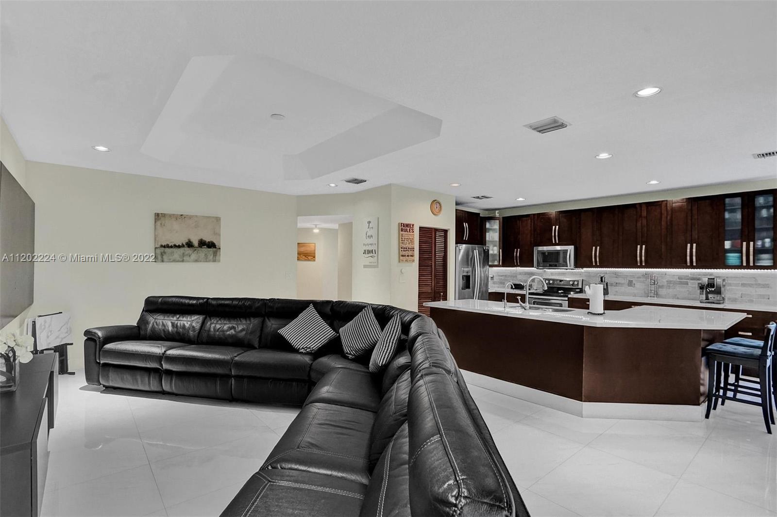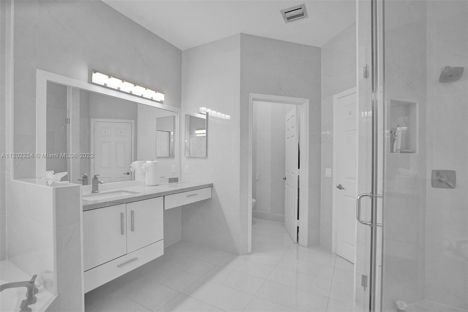 Stunning single family home in sought after Doral Isles/ St Croix community. Huge 5 bedroom,3 bathroom, 3 car garage floorplan. Boasting over 3700 Sq. ft. One full 1 bedroom and 1 bathroom downstairs. Flooring beautifully redone with porcelain tile downstairs and and upstairs. All stainless steel kitchen appliances, kitchen and bathrooms cabinets and countertops tastefully remodeled with a modern touch. Home protected by accordion shutters, great insurance savings. Pavers all around home exterior. Enjoy a resort style neighborhood with amenities such as a clubhouse with a restaurant, pool, gym, tennis court, basketball court, and soccer field. No association approval required. See brokers remarks.