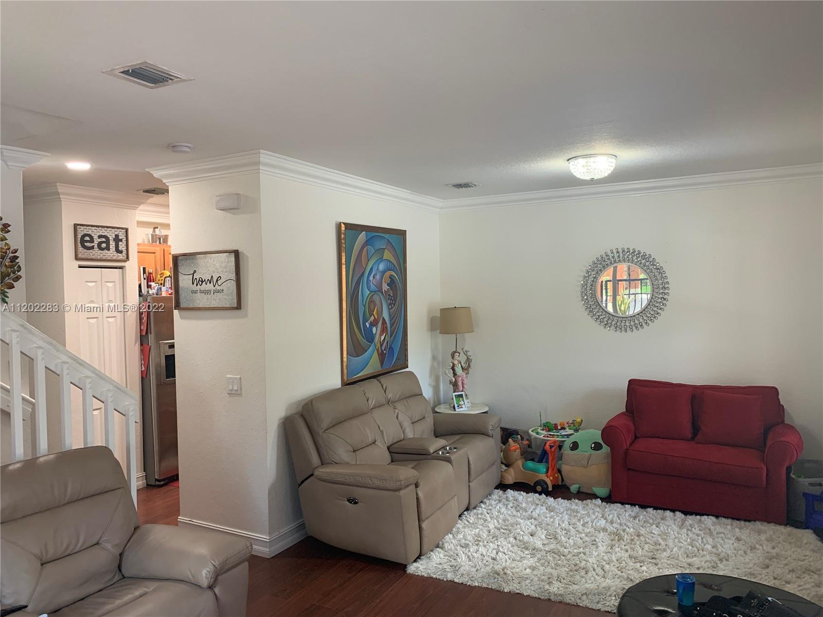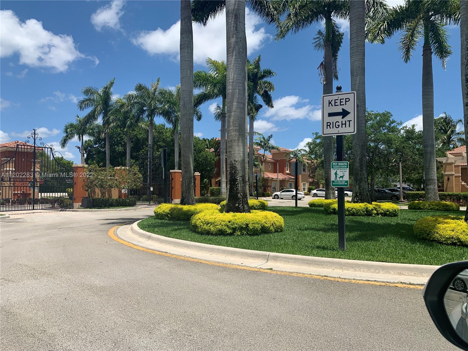 Spacious corner townhouse in Mint Condition. Gated community. All rooms are upstairs. Impact windows. Upgraded bathrooms. New A/C, dishwasher and Microwave. Washer and Dryer in second floor. Laminated wood floors, 2 parking space right in front the unit. Big Patio. Excellent and quiet community. Close to shopping centers, Restaurants, schools. Easy access to Florida Turnpike and I-75. HOA APPROVAL 30 DAYS. PROPERTY WILL BE SHOWING ONLY BEGINNING SATURDAY MAY 14TH FROM 11:00 A.M. TO 2:00 P.M.