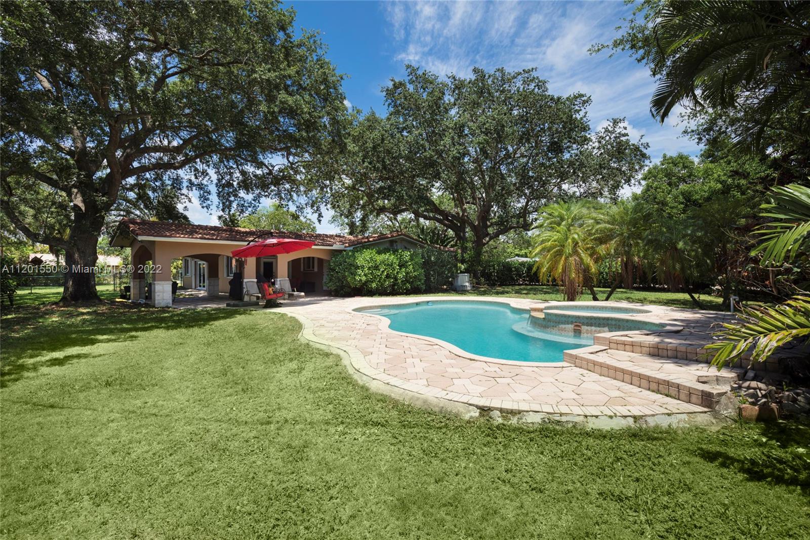 Don’t miss the best opportunity within the Village of Pinecrest. Set on a half-acre corner lot with beautiful oak canopy, this family home checks all the boxes. Complete plumbing replaced with PVC, whole house generator with underground propane tank, freeform heated pool with spa, indoor laundry room, and two car garage. Flexible floor plan with several, oversized common spaces including a living room, dining room, family room, and breakfast area. Primary suite with adjacent bonus room to use as a den, office, or nursery. Relax under the large, covered terrace or play in your lush, private and fully gated backyard. Come enjoy everything the Pinecrest lifestyle has to offer!