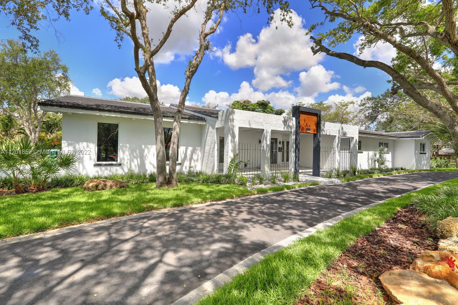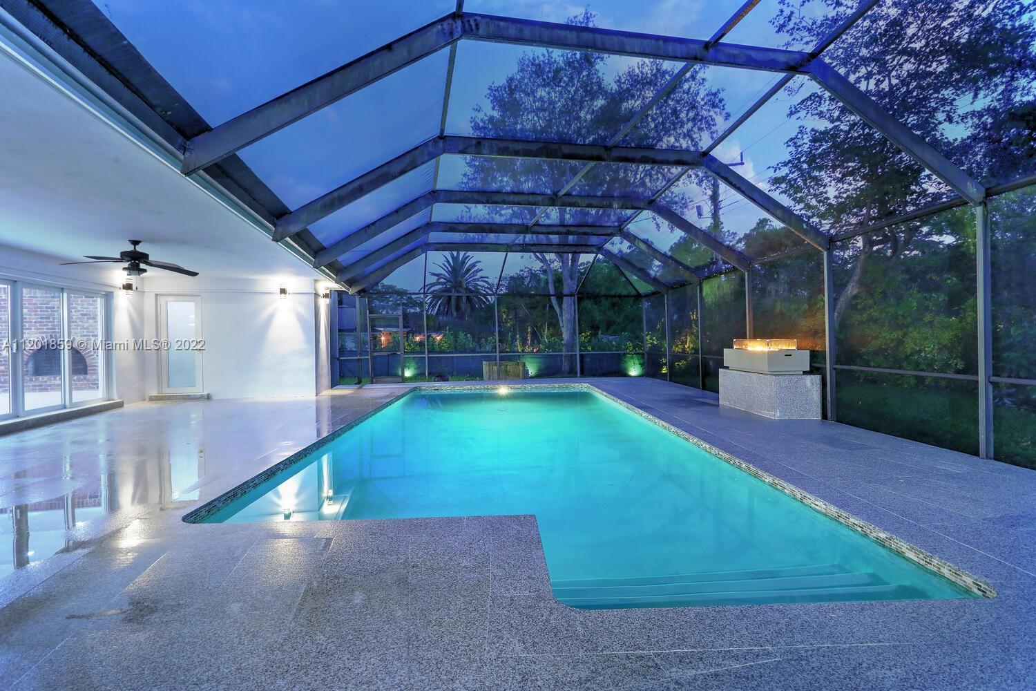 This turn-key 5/4 Pinecrest home sits on a 34,891 sqft lot. New tile roof & impact windows throughout. Features European porcelain floors, oak floors in living room, wood burning fireplace in family room & walk-in 220 bottle glass wine room in dining area of this open concept home. Oversized gourmet all Monogram kitchen boasts quartz countertops, gas range w/ griddle & oven, double French wall oven, under mount sink & drawer microwave. Primary bedroom w/ ample closets, spa bath complete w/ double shower & soaking tub. Additional four bedrooms include en-suite ideal for guests & a convertible home office w/ custom oak cabinetry. Bathrooms appointed w/ marble finishes. Outside areas w/ granite flooring including pool area ideal for entertaining. Gas powered fire feature and outdoor shower.