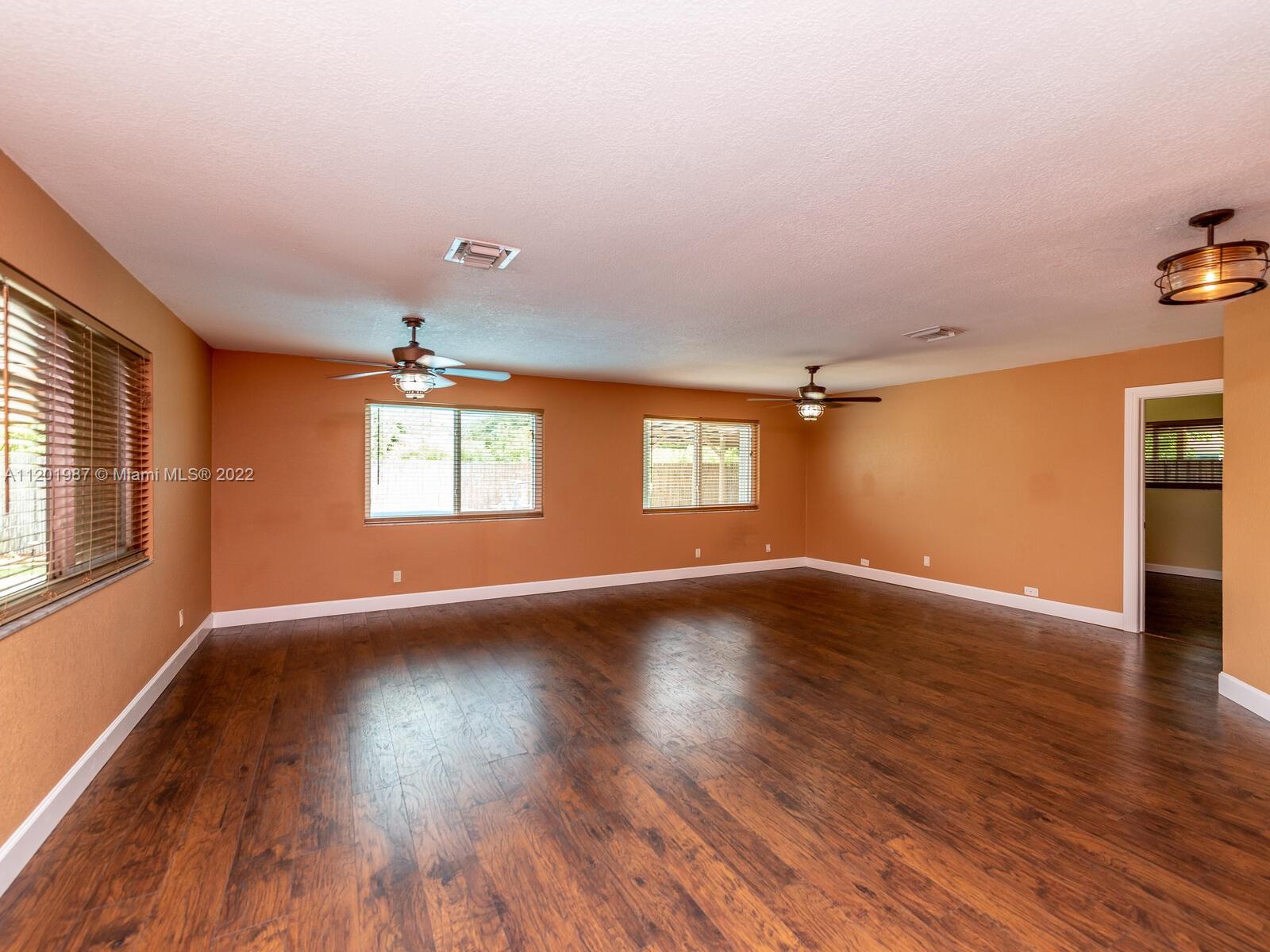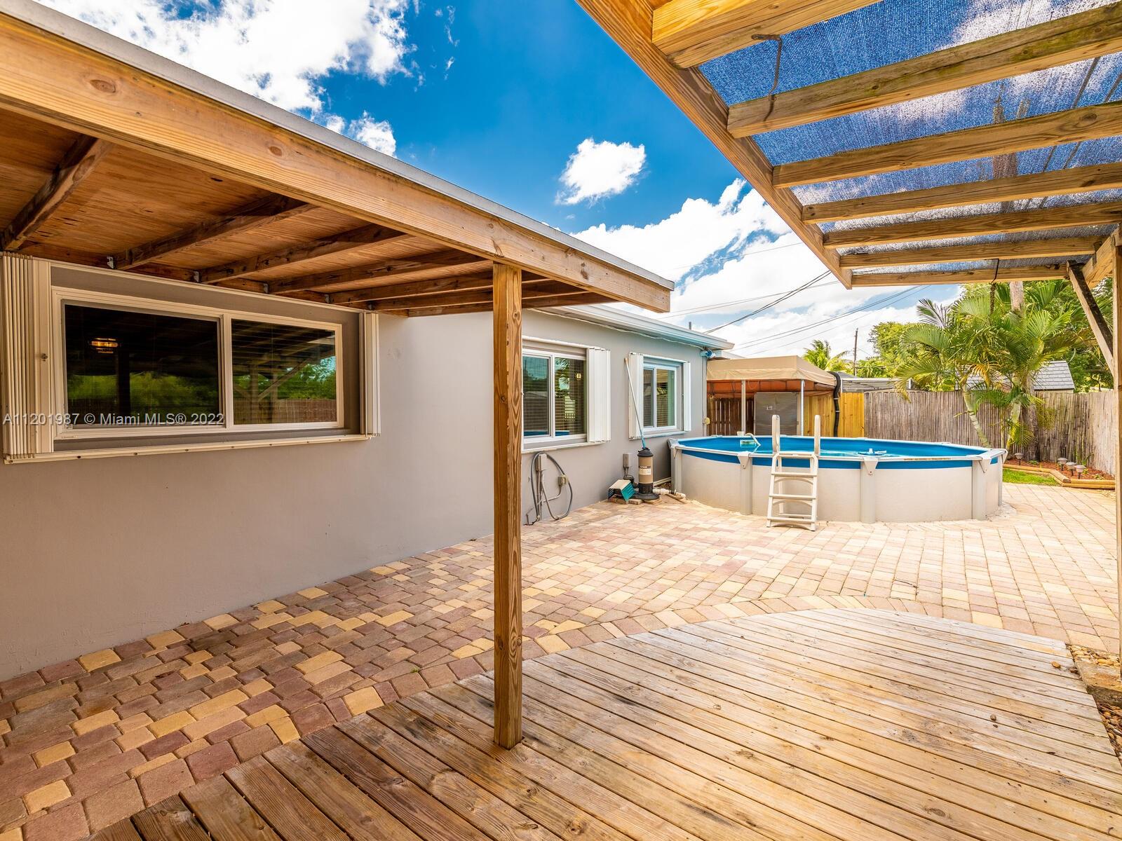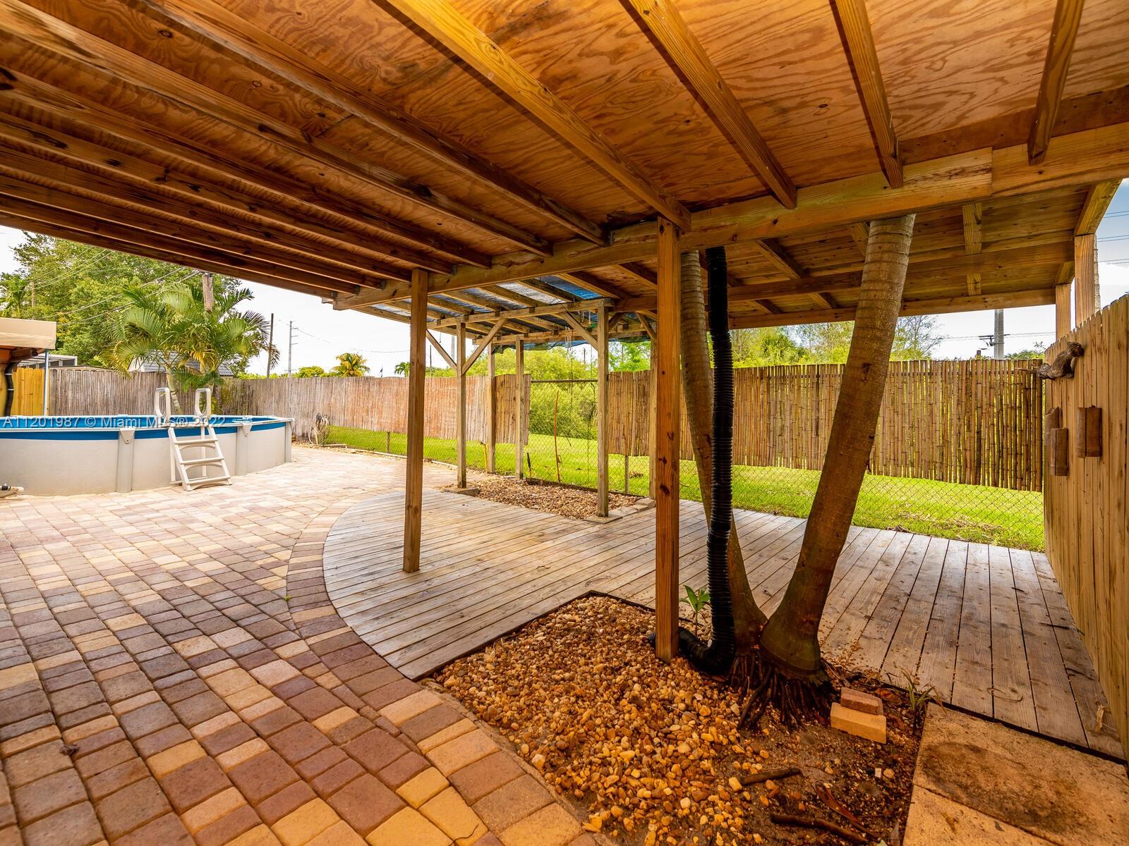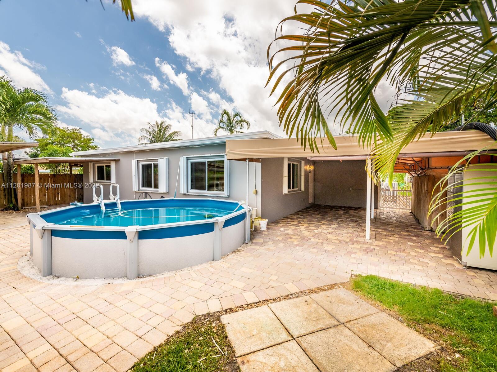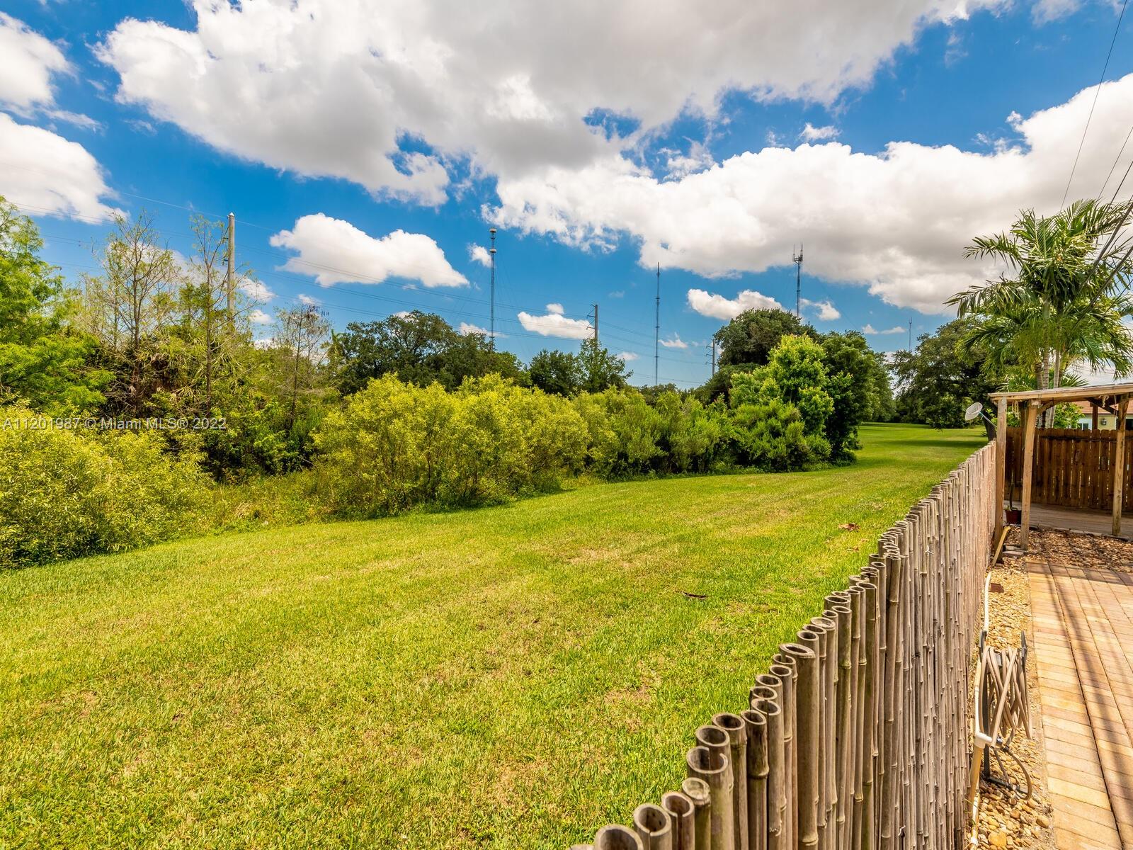 This large family home is located on the quiet street of East Shore Road in Miramar. The interior has an open concept with 4 bedrooms and 2 baths. It is a 3 way split floor plan with the master in the back of the house The kitchen has dark wood cabinets and granite countertops and opens up to the spacious family and dining room. The laundry room is enormous with lots of cabinets and counter space. The yard is completely fenced in with a pavered partially covered patio and above ground pool. There are 72 acres of state protected wetlands directly behind it which makes it very private. The front of the home has a beautiful pavered driveway with plenty of room for cars and trucks. There is No HOA