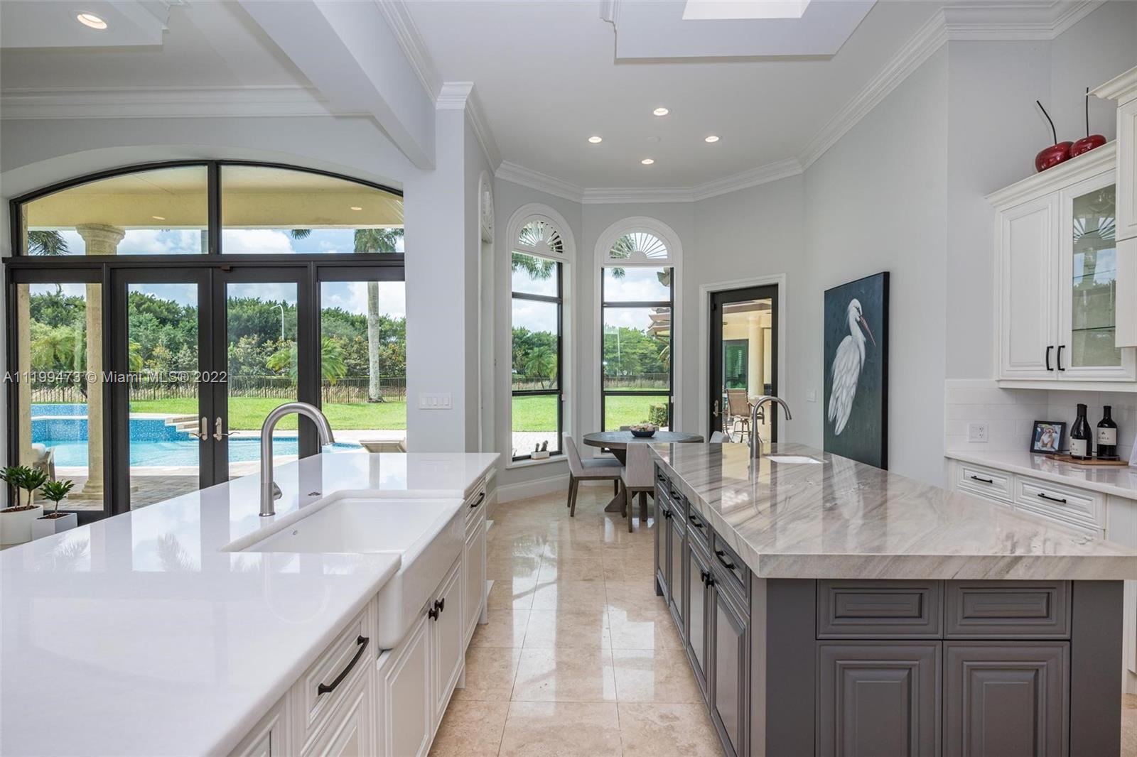 Created for the most meticulous buyer who deserves the very best, this custom built estate home sits on a 49,922 SF private waterfront lot in prestigious Windmill Ranch Estates. Your highest expectations of lux living will be met in this smart home including full IMPACT windows & doors and NEWER ROOF. Enter through the expansive circular driveway to a completely renovated 6 bedroom, 6 full bath (all en-suite baths) plus office w/ soaring 14ft ceilings! Marble flooring in all main living areas, marble working fire place, custom millwork & plantation shutters. New, professionally designed chef’s kitchen w/ custom cabinetry, subzero refrigerator, Viking appliances, marble countertops. Fabulous resort style backyard with oversized heated pool & spa, summer kitchen and guest house.