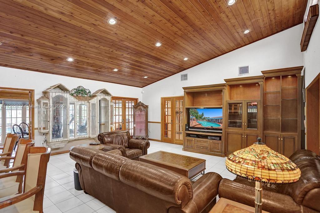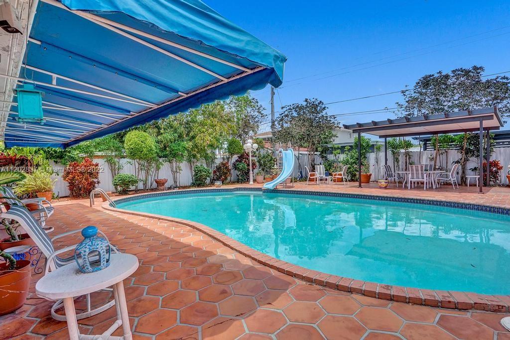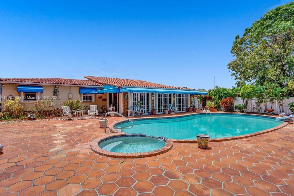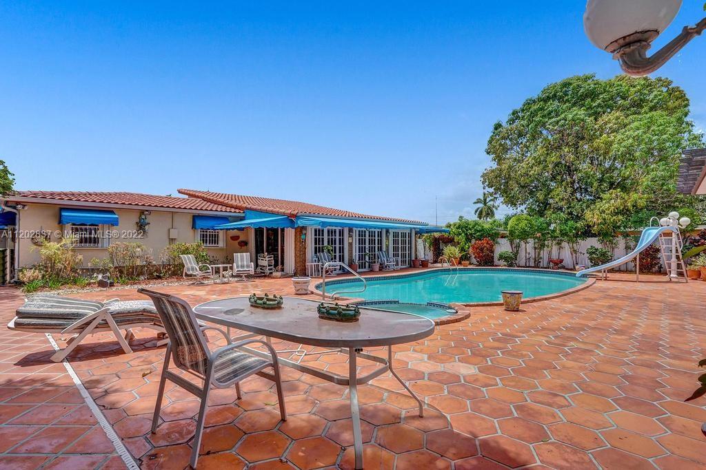 West Hialeah pool home on a 10,500 sq.ft lot. Over 2,800 sq.ft, all additions done with permits. The home also features an oversized one car garage with additional storage space and a separate laundry room. This special home is big enough for two families! The home features a wet bar with an added stove, and refrigerator boosting its function for easy entertainment and/or private in-law quarters. The wet bar opens to a spacious family room with vaulted ceilings covered with wood planks which adds a sense of charm and character to the space. French doors divide the family room and a sunroom which allows tons of natural light to stream inside while enjoying the view of the pool area. Lots of possibilities with so much space, this home can provide so many needs. Do not miss this opportunity.
