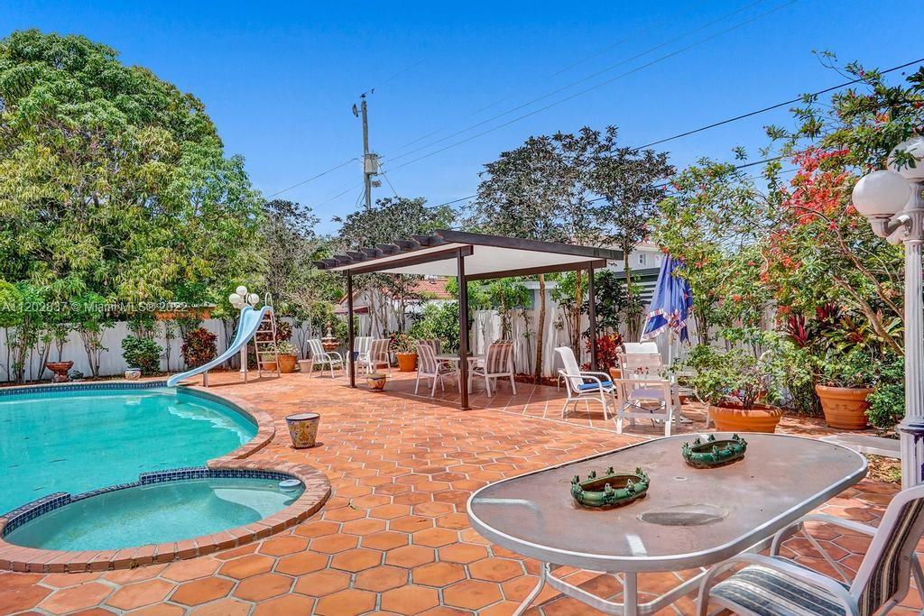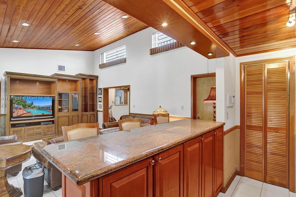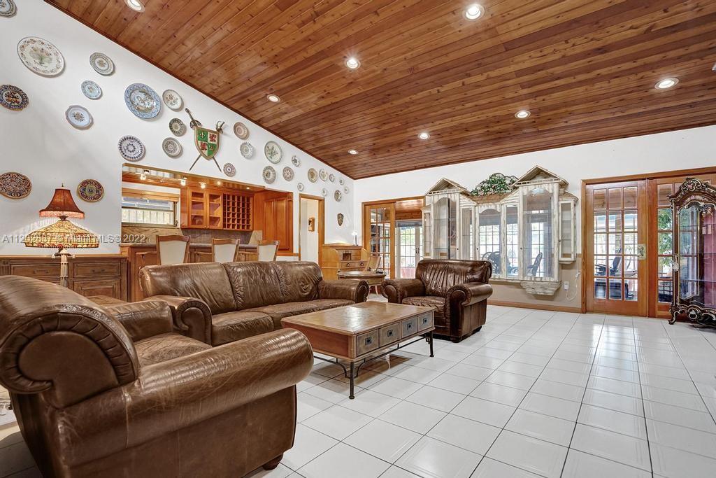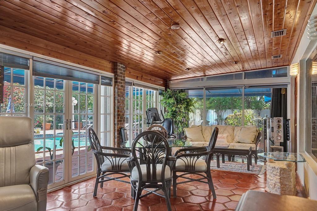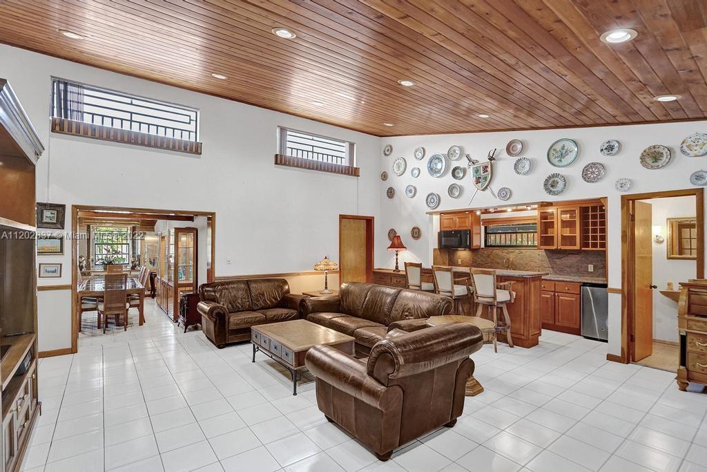 West Hialeah pool home on a 10,500 sq.ft lot. Over 2,800 sq.ft, all additions done with permits. The home also features an oversized one car garage with additional storage space and a separate laundry room. This special home is big enough for two families! The home features a wet bar with an added stove, and refrigerator boosting its function for easy entertainment and/or private in-law quarters. The wet bar opens to a spacious family room with vaulted ceilings covered with wood planks which adds a sense of charm and character to the space. French doors divide the family room and a sunroom which allows tons of natural light to stream inside while enjoying the view of the pool area. Lots of possibilities with so much space, this home can provide so many needs. Do not miss this opportunity.