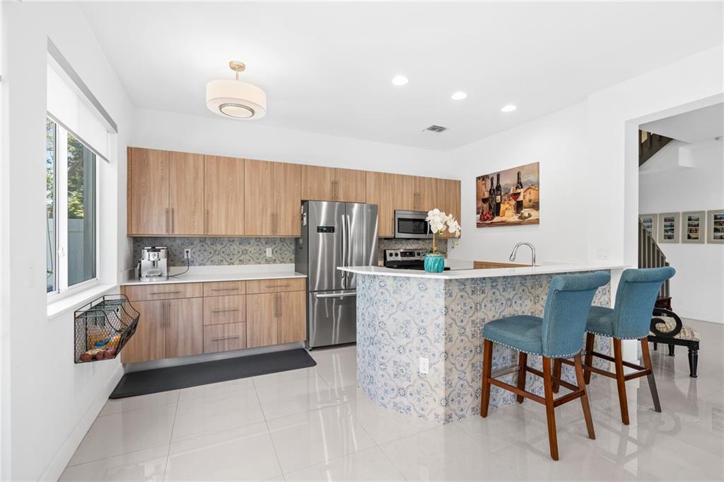 Remarkable, and luxurious, this custom 3BR 2.5BA corner unit townhome located in the heart of Pompano Beach boasts expert craftsmanship, design, and style. You will fall in love with the light, bright and airy flow through open kitchen, living, and dining room, perfect for entertaining guests. Beautiful 24X24 tile throughout the first floor, gorgeous high traffic water resistant laminate flooring upstairs. Upstairs features two generous guest bedrooms, and a spectacular executive suite with two walk in closets, private bathroom, and a private balcony! Plenty of outdoor space with a fenced in patio space, impact windows and doors throughout, and a two car garage. gated community with community pool, hot tub, and club house. All with a low maintenance fee. Come take a look today!