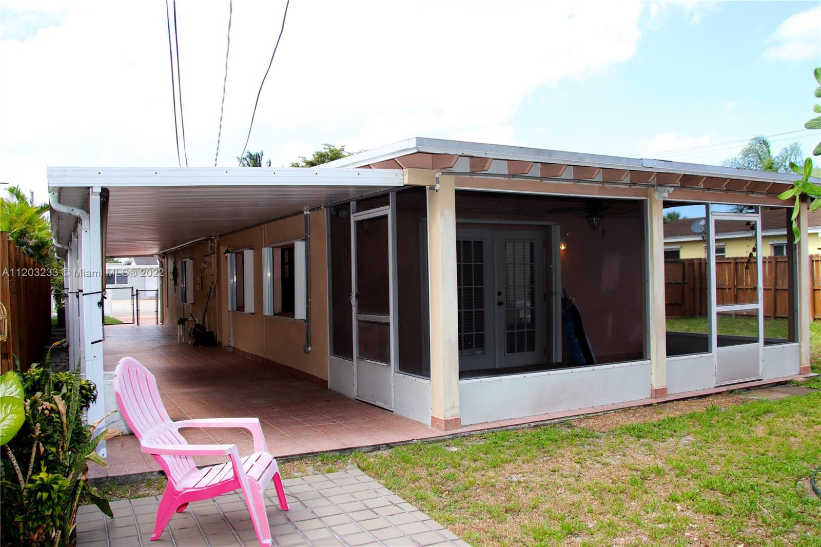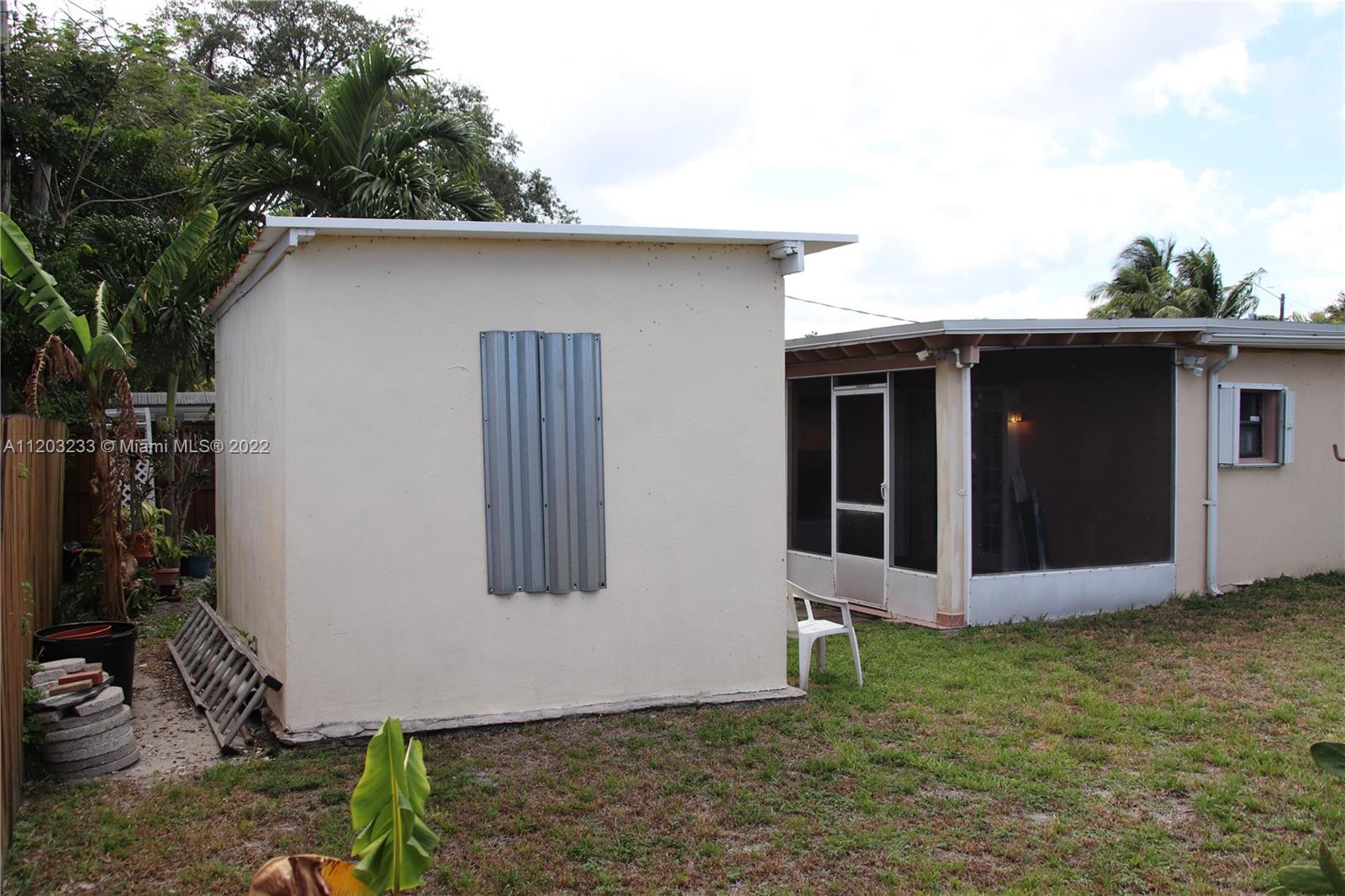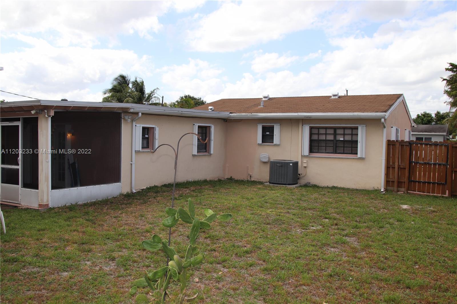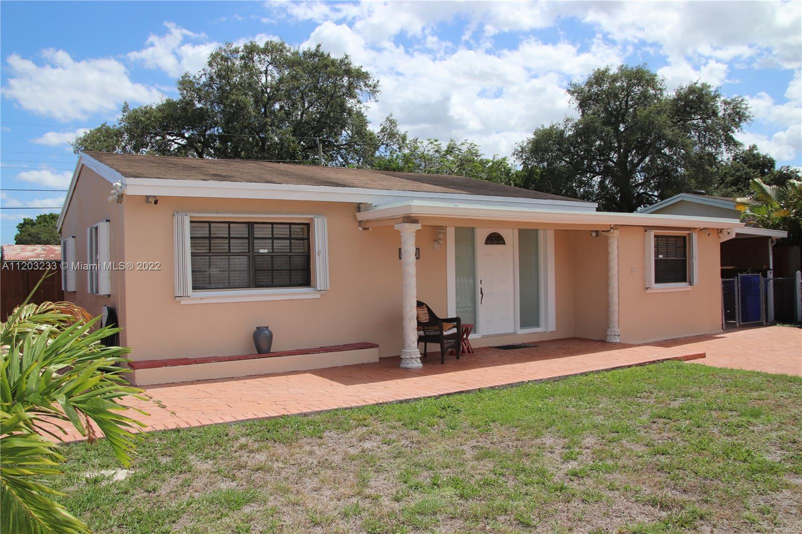 Spacious home with New Kitchen, stainless steel appliances, updated bathroom, tile floor and laminate floor in rooms. Window shades. Hurricane shutters and large yard with screened-in porch and a detached large storage room in the back yard. Shingle roof replaced in 2011. Septic tank fully serviced in 2020. Security cameras around the house. Trane air-conditioner replaced in 2012. Very large laundry room with washer and dryer. Master bedroom also has a private entrance. NO HOA. Less than 1 mile away from the Guitar Hard Rock Casino and about 20 minutes from Hollywood Beach. As Is. No Appraisal Contingencies. Must present proof of funds for excess amount over appraisal. Contact listing agent for showings.