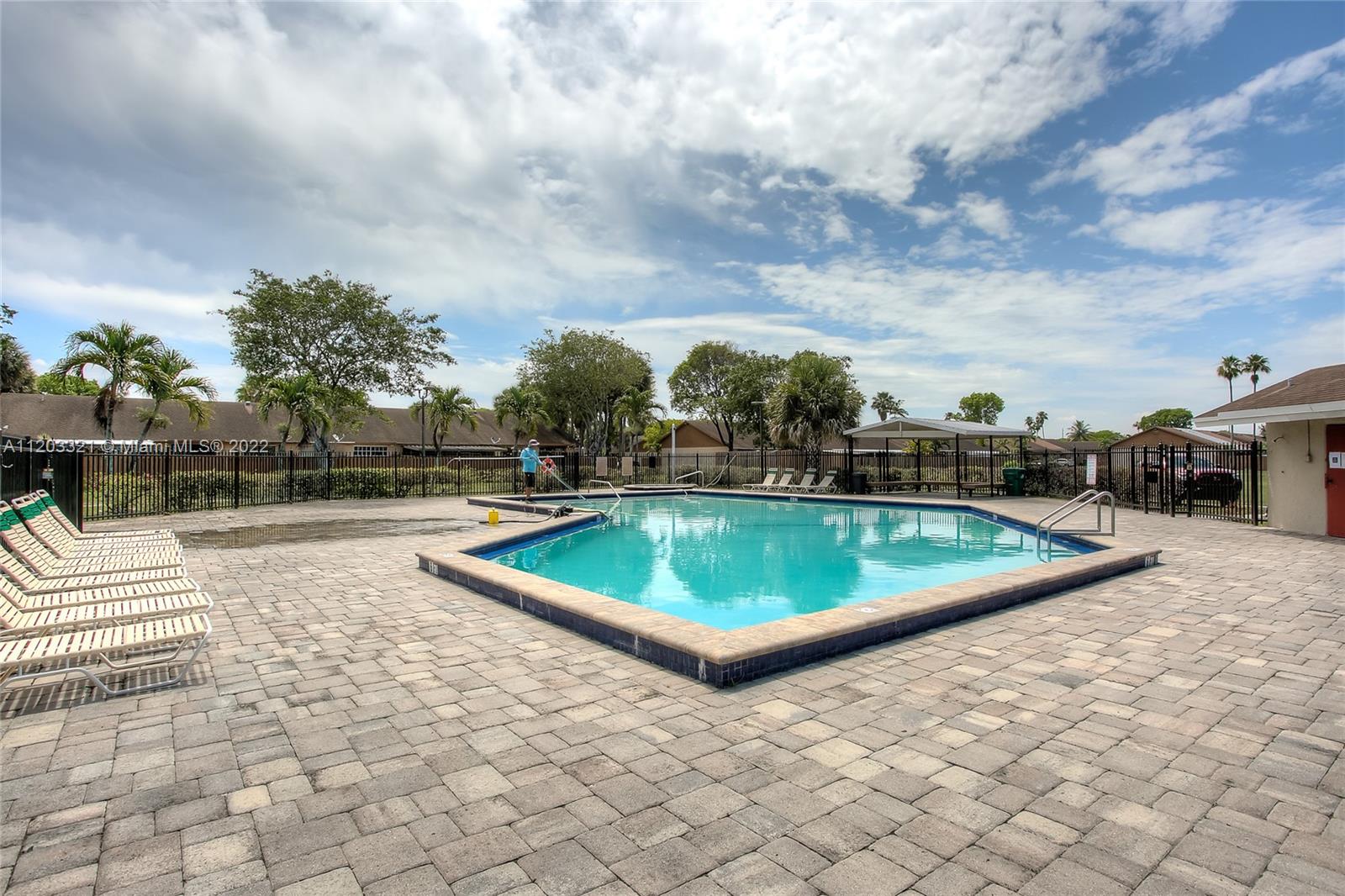 Spacious & bright 2/2 townhouse offers renovated kitchen with granite countertops. Tile flooring throughout. Washer|Dryer located inside the unit. Large covered back yard with no back neighbors. Two assigned parking spaces in front of your unit + guests. Community offers 24 hour security, tennis courts, pool and children's playground. Currently leased but will be vacant at the time of closing. Newer Roof.