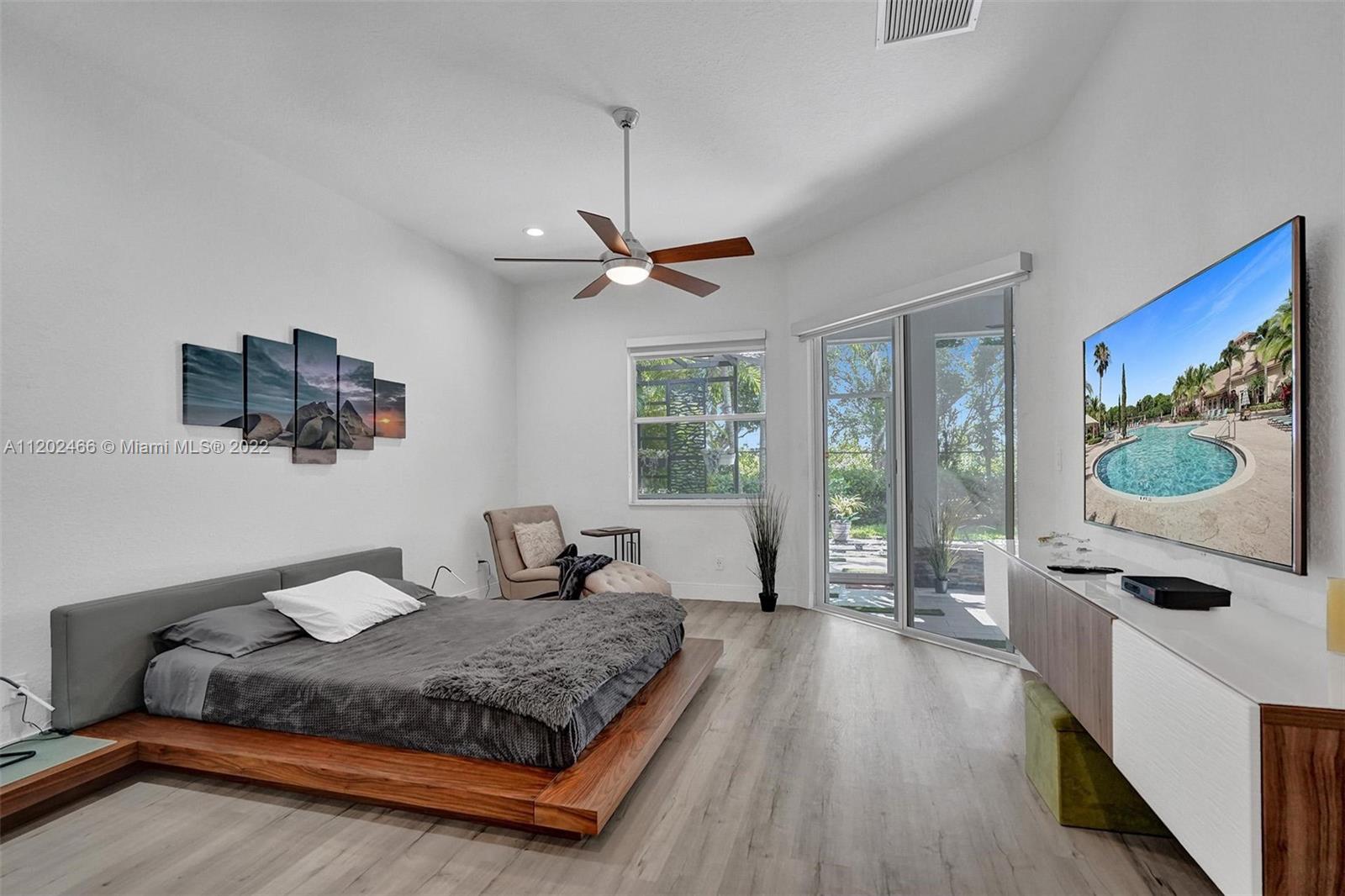**NEW ROOF**(5/2022)Outstanding" Whitewater"model in one of the most sought after guard gated communities in Weston.Open bright and airy floor plan offered in this contemporary one story home 4 spacious rooms + FLEX room,3 completely renovated baths, with walk- in shower, shower panel tower, and* NEW *vinyl floors. Private covered patio with a conservation view. Best A-rated schools.Low HOA includes cable, high speed internet with Resort- style club house ,including heated pool with a separate wading pool, fitness center, volleyball, basketball courts, tot lot, and game rooms.Lots of upgrades including, electric tankless water heater, recessed lighting, new AC (2018),Reme Halo air purification system,** painted all Interior and Exterior(2022)**,Security cameras installed.Owner/agent.