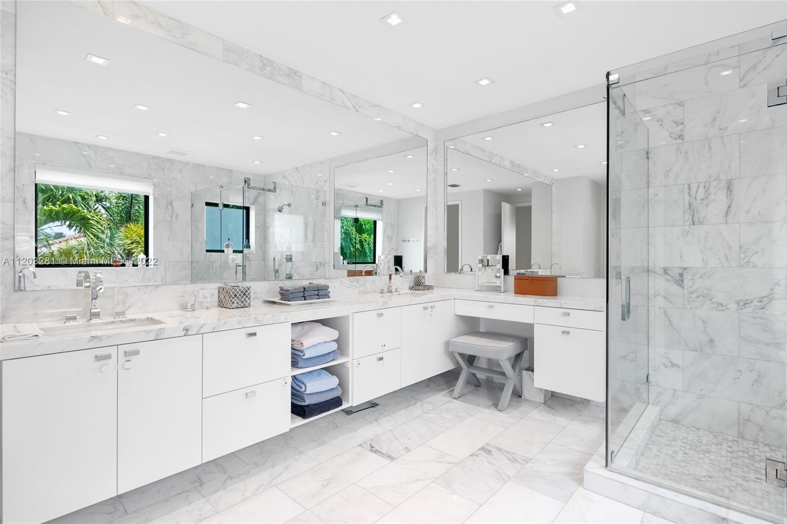 Contemporary Masterpiece situated on coveted North Bay Road. This custom built home boasts 4600 SF of designer curated interiors, top of the line finishes, 10' ceilings & a layout that is perfect for both family enjoyment & entertainment. Nestled behind private gates on quiet Upper North Bay, this custom build is conveniently located in between South Beach, Sunset Harbour & Bal Harbour where you'll find the finest shopping & dining Miami has to offer. The home's indoor outdoor flow is complimented by a large outdoor entertainment area w/ covered dining, lounge, summer kitchen, heated saltwater pool w/ glass pool fence, artificial turf yard & cabana bath. Features include Control4 system w/cameras, full generator, sonos, upstairs laundry, gym, office & gated entrance to your covered parking