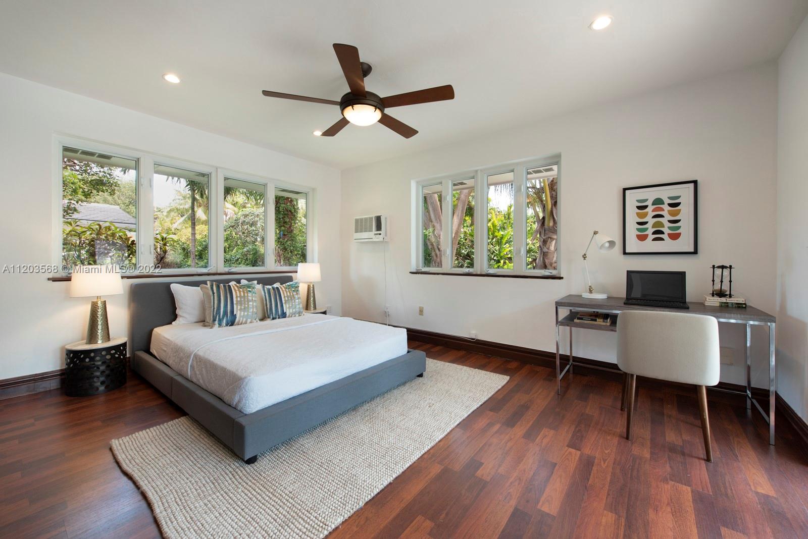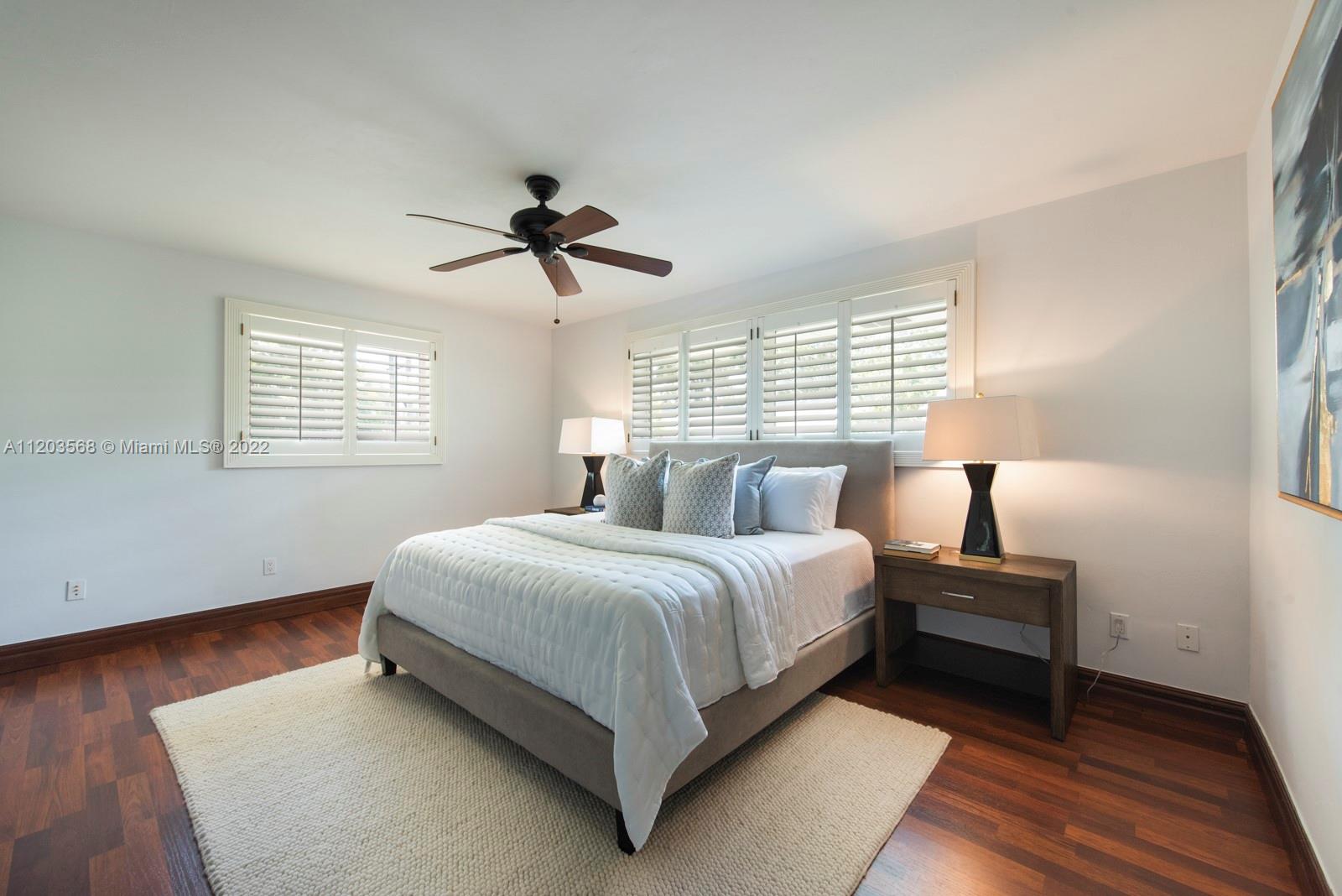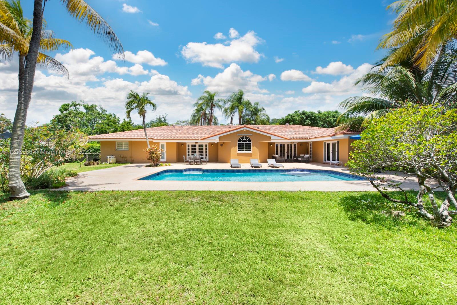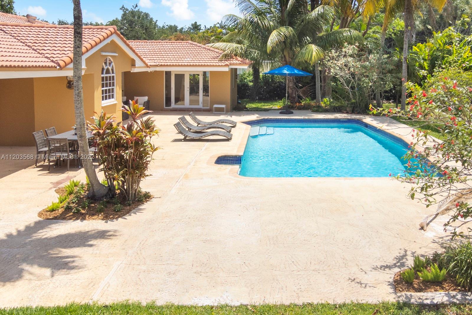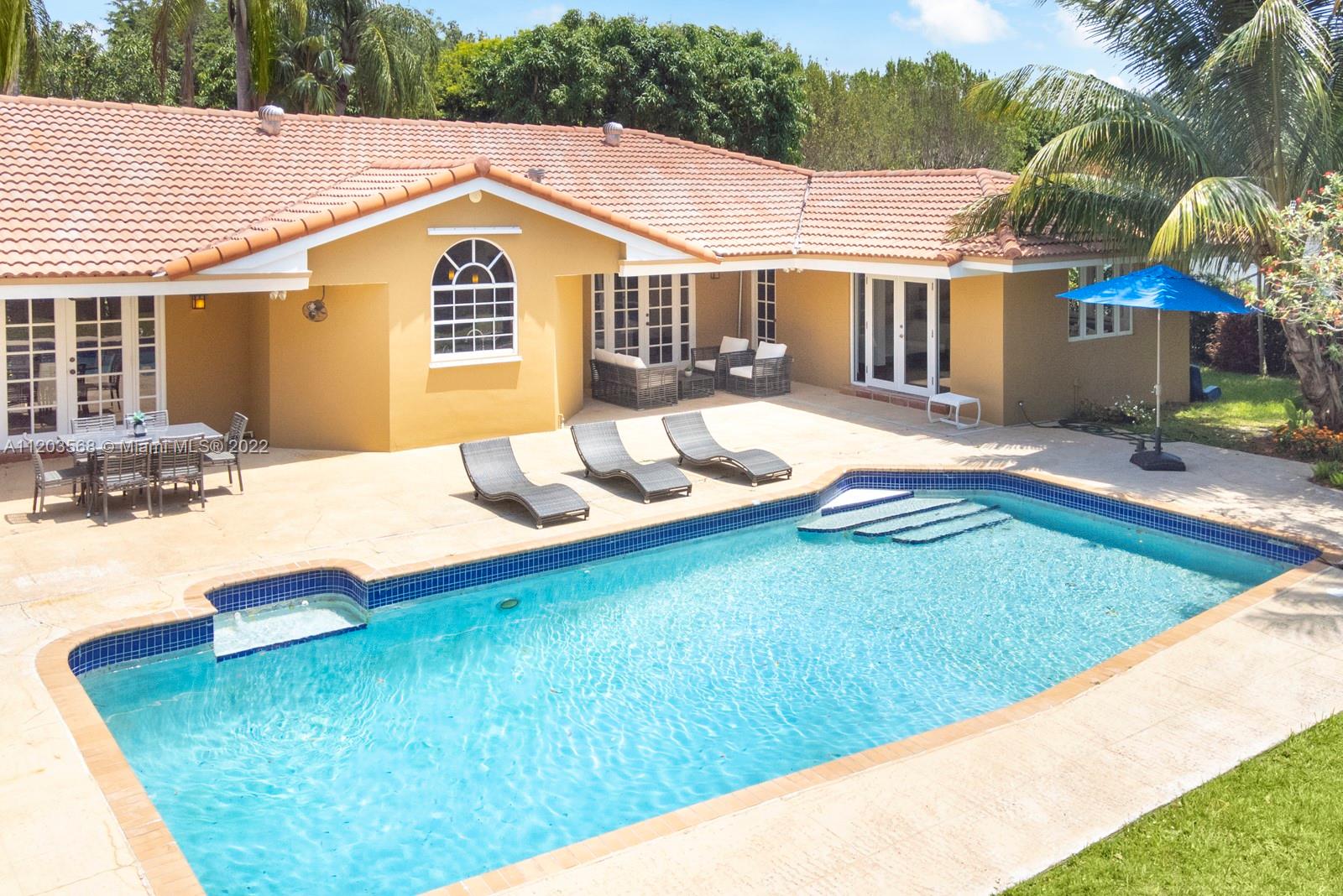 Sought after and rarely found 5-bedroom family home on an oversized half acre lot on quiet no traffic North Pinecrest street. Split plan, tile roof, enlarged wood kitchen, wood flooring in bedrooms, 2 skylights. Great layout with 2-car garage, deep pool, large cantilevered overhang (no columns) , big yard and privacy. Hurricane shutters throughout (some impact glass windows) , flood zone "x" so no flood insurance required. Pinecrest Elementary.