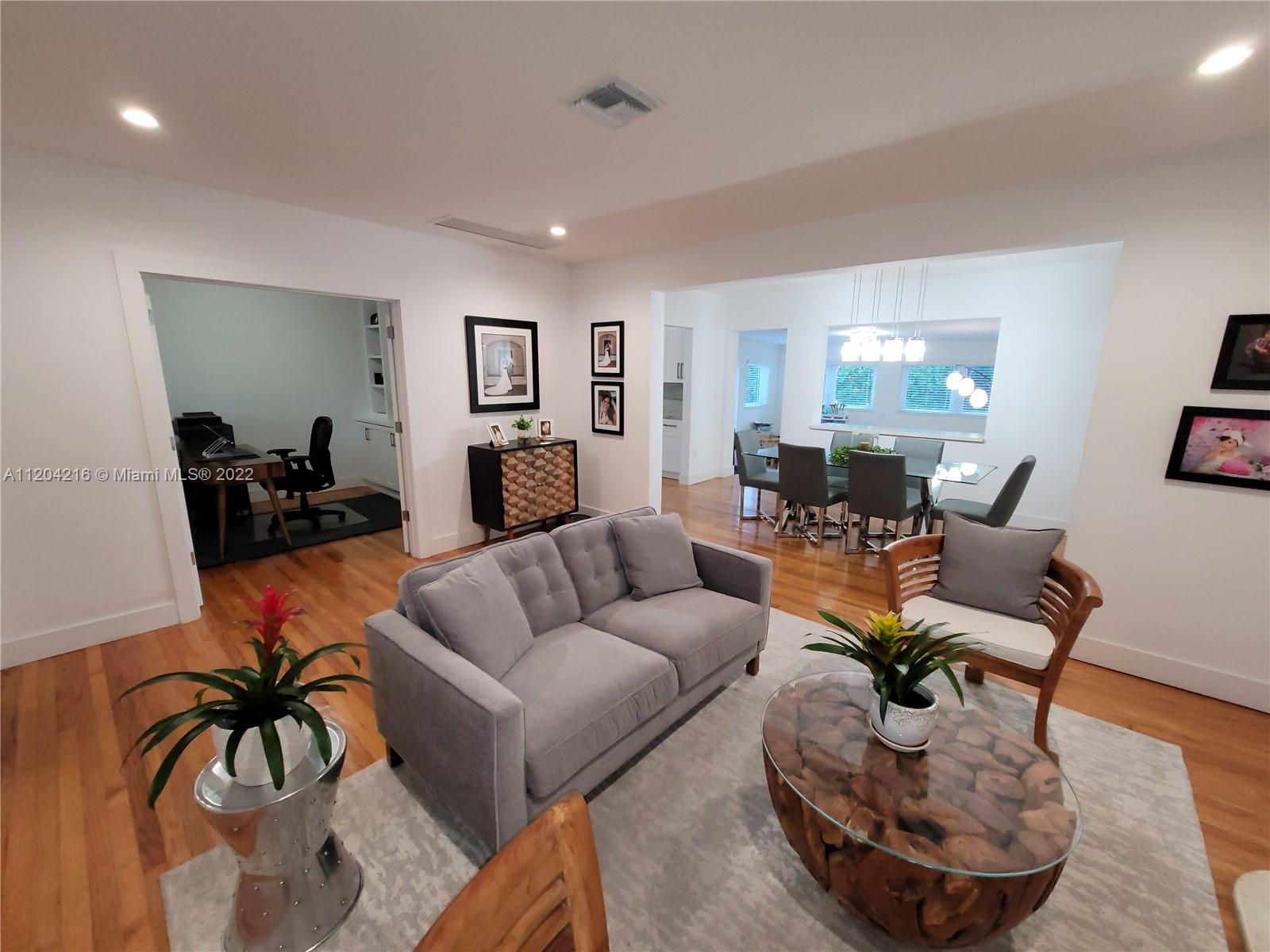 Incredible opportunity to own this 3 bedroom 2 bath plus office / den in the heart of Coral Gables. This home has updated plumbing, updated electrical, all impact windows and doors and newer roof. Move in ready home on a double lot. Located on quiet two block long street. Home also has a small breakfast area by kitchen and a family room. Laundry is inside the home and not the garage. Property sits on the lot perfectly has room for pool and for expansion if needed. Home has a one car garage but can add a lift for all you car enthusiasts. This home will not disappoint. Has updated bathrooms, updated kitchen, and built ins for the office. Kitchen has Quartzite counter and backsplash. Newer water heater and newer AC. Home is also pre wired with ethernet and cable connections.