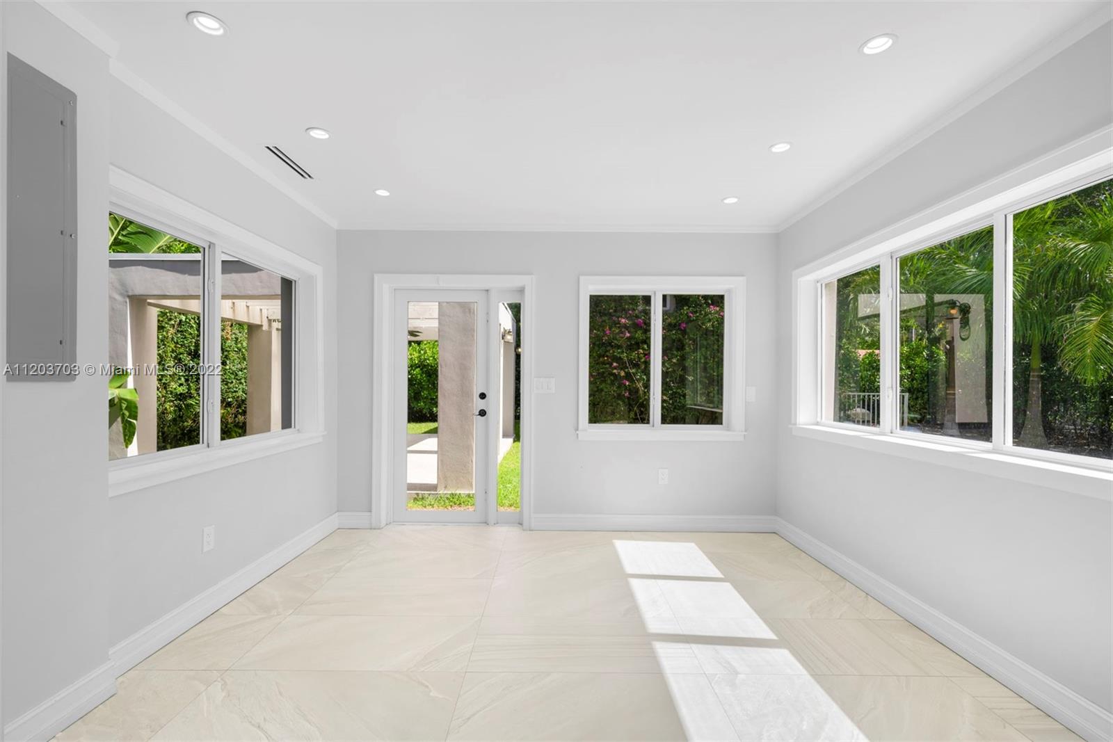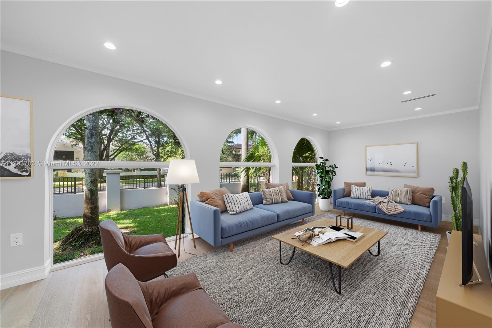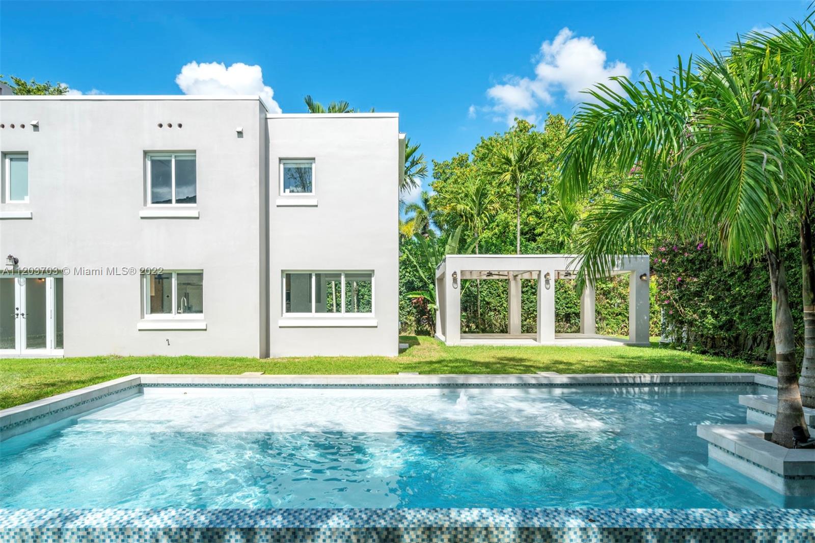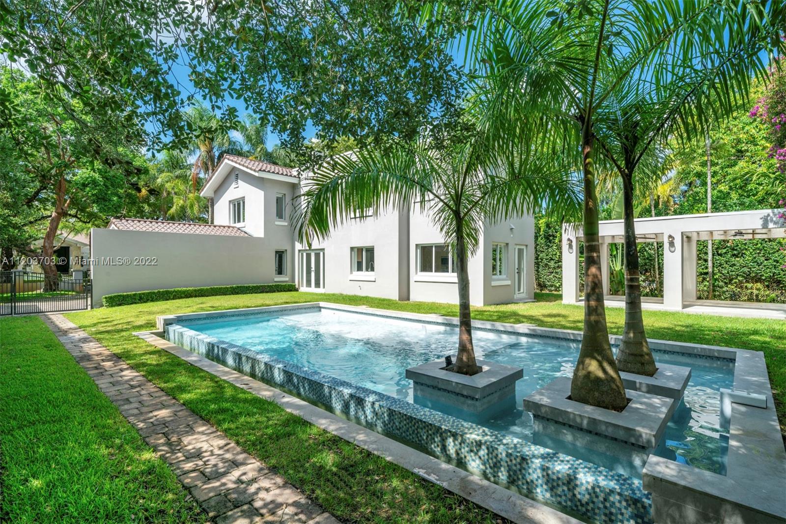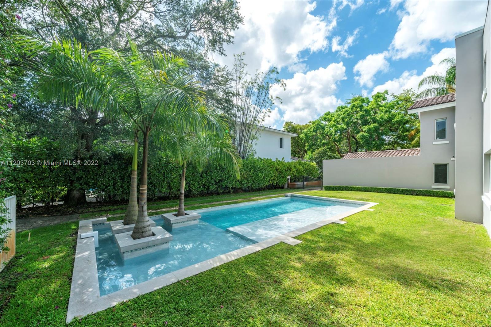 Gorgeous 3,295 Sq. Ft. home with three bedrooms and two and a half bathrooms, surrounded by tall palm trees providing peaceful views from every room. The spacious living room comes with a fireplace, and an expansive chef’s kitchen features a large eat-in island, top of the line appliances and breakfast and lounge area. The Florida room has large picture windows providing abundant natural light, seamlessly combining indoor and outdoor living. The main suite offers an attractive retreat, with a beautiful bathroom and custom walk-in closet. Outdoors include a resort-style pool with tanning ledge and water features, and a pergola ideal for alfresco dining. This incredible home offers a serene, harmonious living experience conveniently close to excellent schools, shopping, dining and parks.