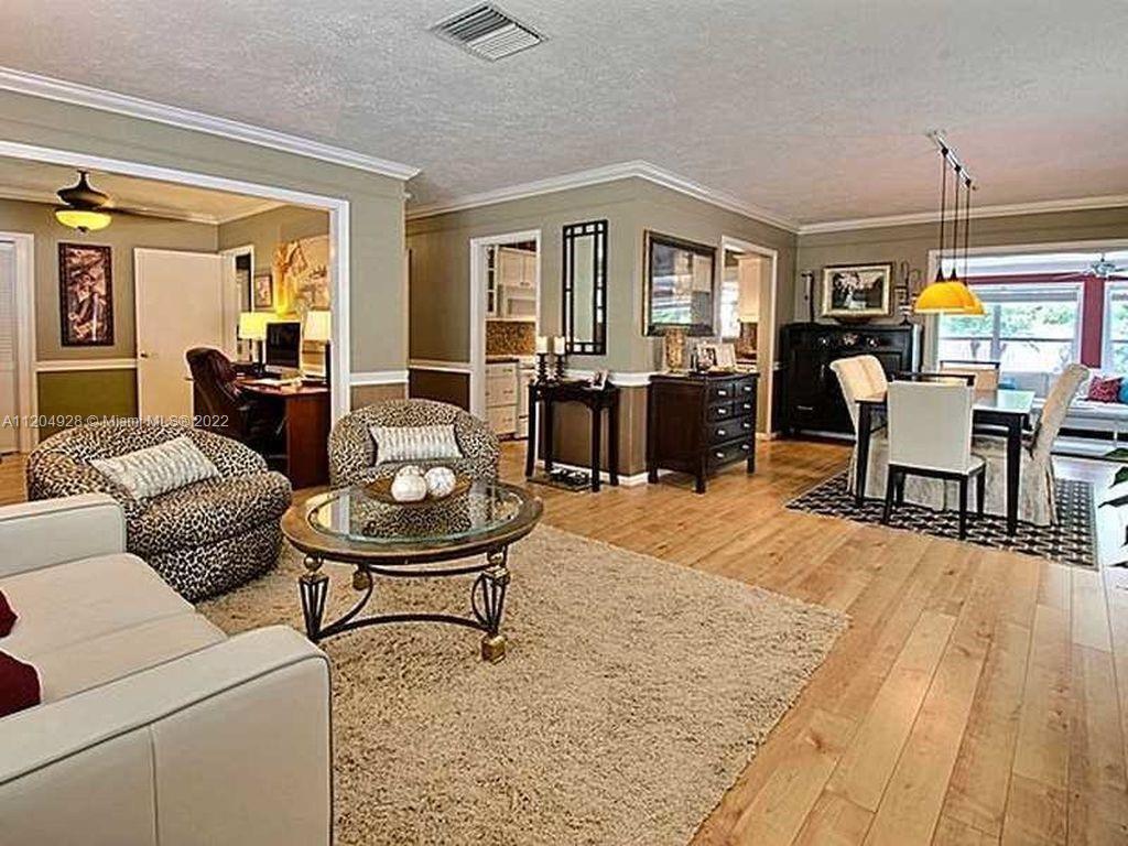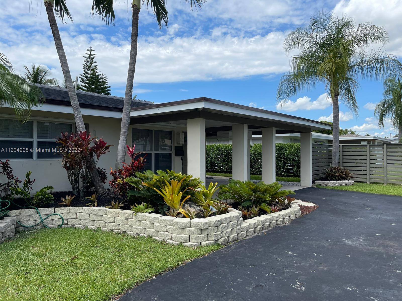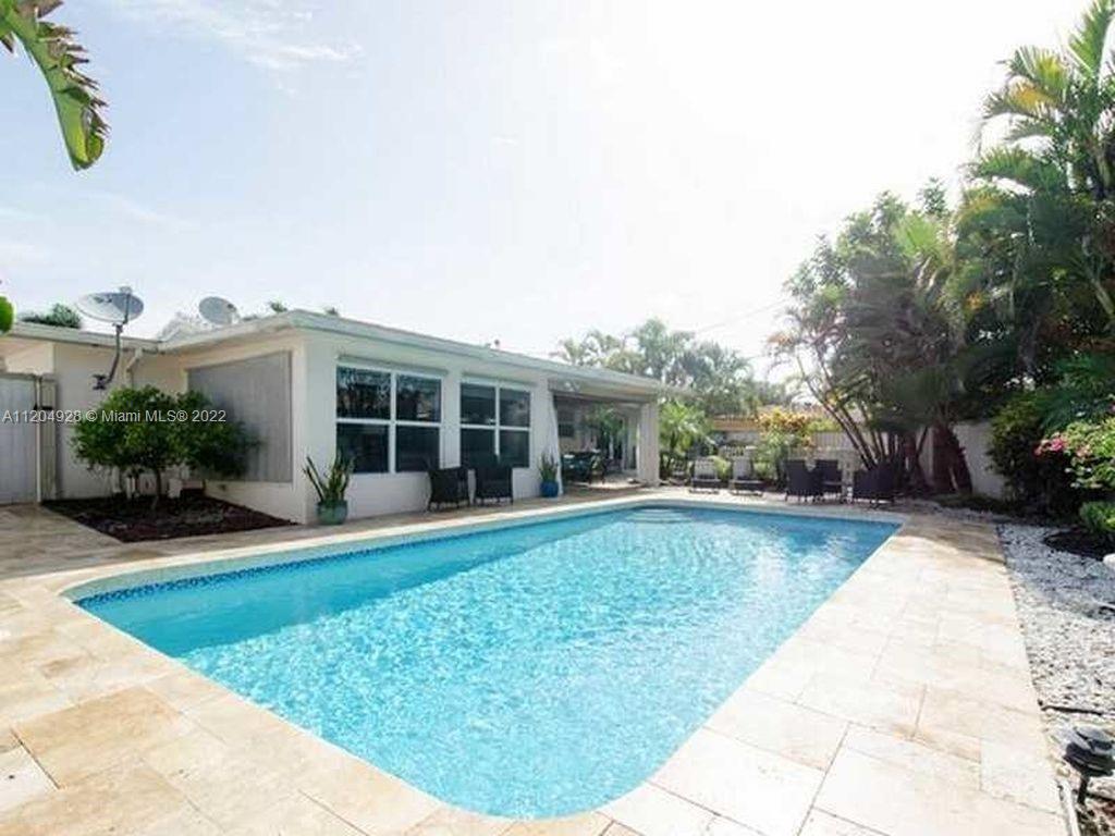 East side Fort Lauderdale Oasis Home with 3 Bed/2 Bath and salt water pool. Lush Tropical Landscaping encompasses this home that has a great Entertainment space featuring a Travertine paved pool. New and Updated Features include a new charcoal colored Flat Tile roof, new Quartz kitchen with appliances, updated bathrooms, large patio pavers, horizontal fence, electric panel, and Tesla charging outlet. Upon entry, this home is illuminated with sunlight that extends to every room of this home and highlighted in the Master Bedroom overlooking the pool. Situated near Commercial/US1 minutes from the beach, fine dining, and Las Olas shopping.
