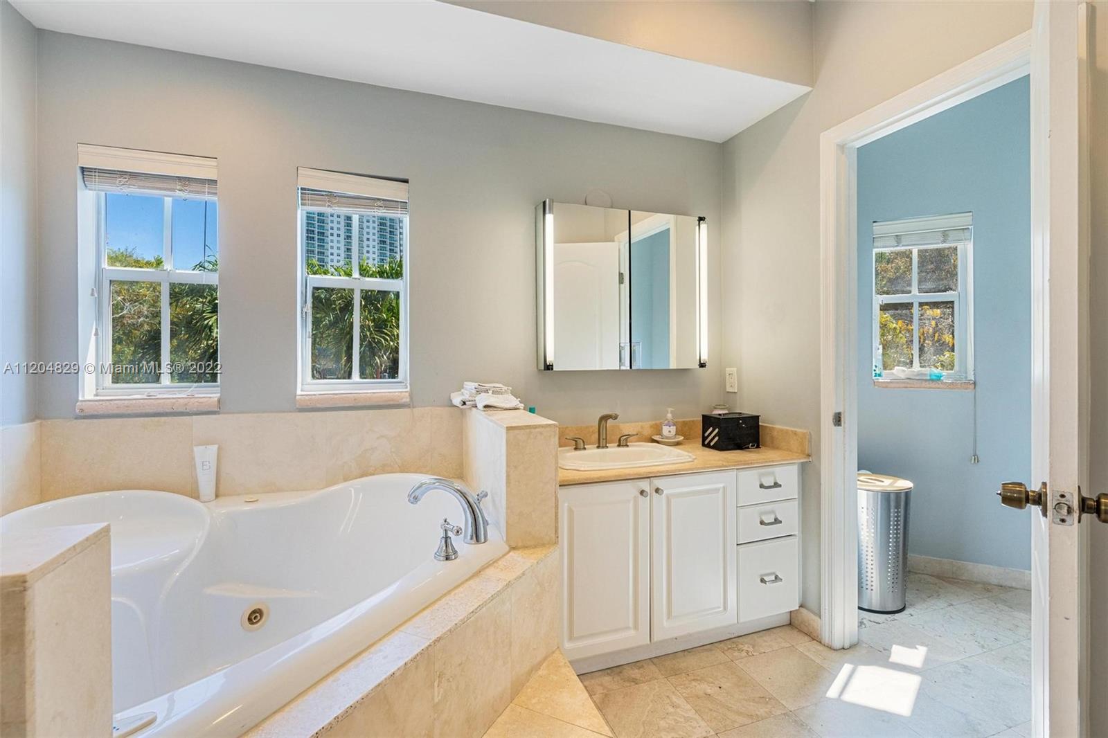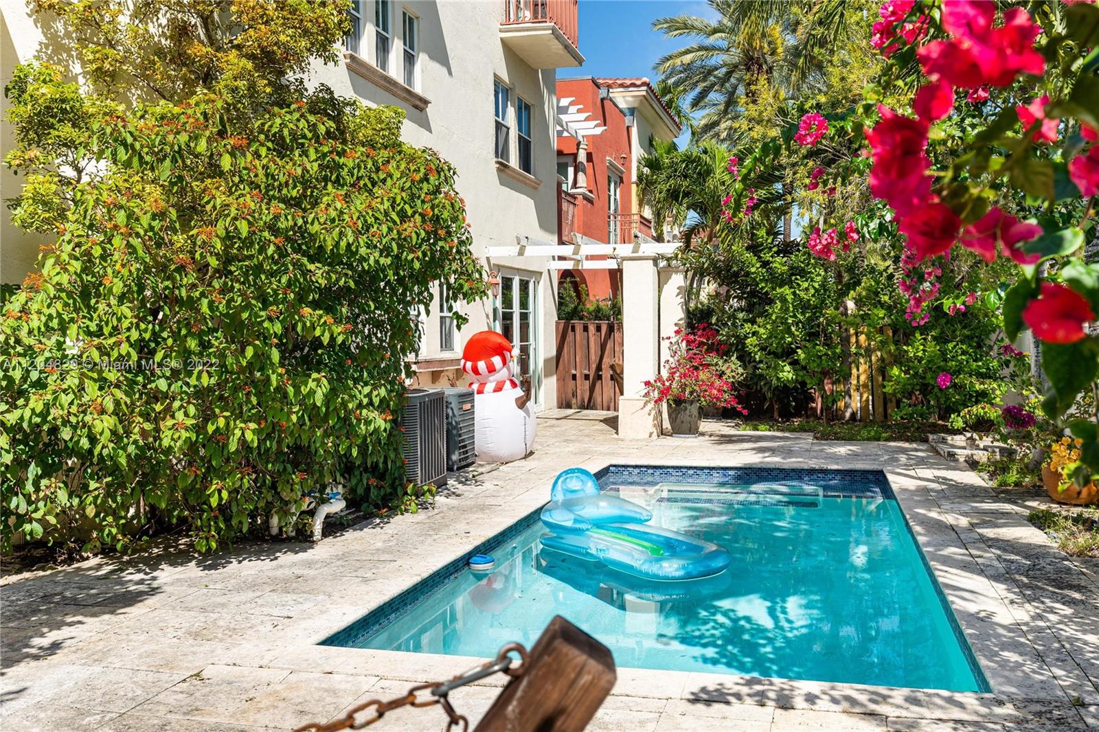 LARGEST UNIT, LARGEST YARD+PRIVATE POOL: 4/3.5 (easy convert to 5/3.5) tri-level in beautiful and exclusive mediterranean village of 63 homes in the HEART of Aventura. PERFECT FOR A FAMILY - A+ park/playground is literally steps away. Rare and unique unit has the ONLY full-size PRIVATE POOL, and LARGEST backyard in Aventura Bay - the "Developer's unit" - Also has the best VIEWS with eastern exposure, park views, light, bright and open skies and sunrises. BEST schools in Miami including ACES and new Soffer High. Natural stone floors everywhere AND SO MUCH SPACE: 3rd floor can be easily divided into 2 bedrooms (for a total of 5BR!). NEW ROOF and exterior paint (not pictured) in 2022. Next to Lubavitch temple. Unit rented until 8/2023 @$4500/mo, giving you time to make this house your home.