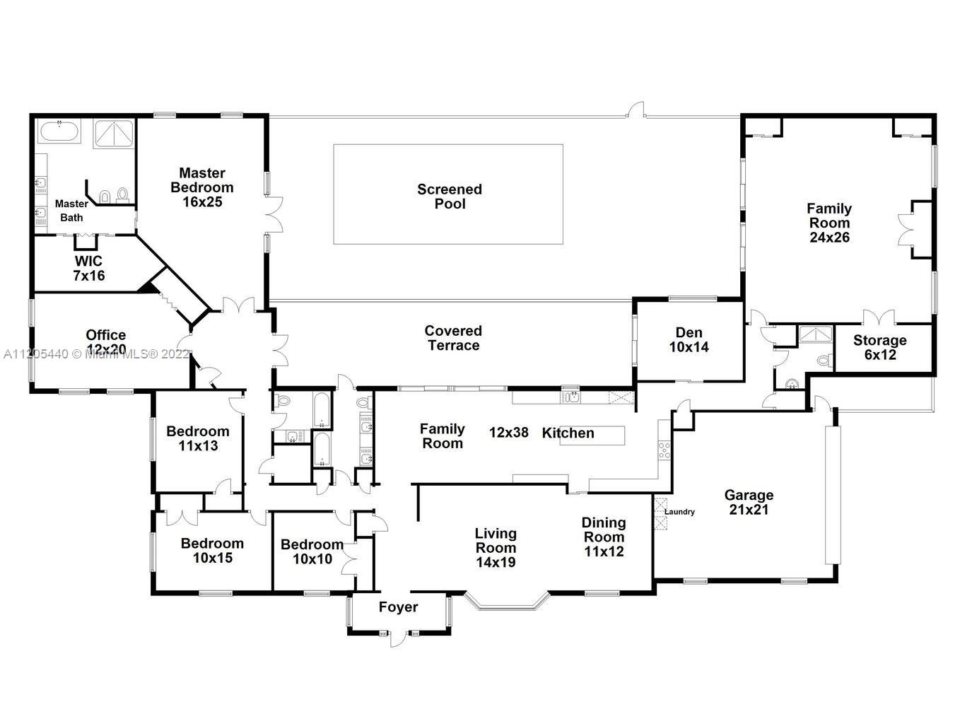 Exquisite Pinecrest home nestled within a lushly landscaped builder's acre with magnificent oak trees, located on a highly coveted street. Impeccably maintained 6 bed/4 bath with beautiful porcelain tile floors throughout. Formal living/dining area. Thermador appliances, granite countertops. Split floor plan with large primary suite wing to the south, and oversized junior suite with vaulted ceilings on the opposite side. One bedroom equipped with office cabinetry. Bonus study/den/office. Covered terrace with screened pool. Separate, fenced yard. Full-house generator. Interior/exterior camera system. 2-car garage. Close proximity to top rated public & private schools. The ideal home to raise a family and entertain guests.