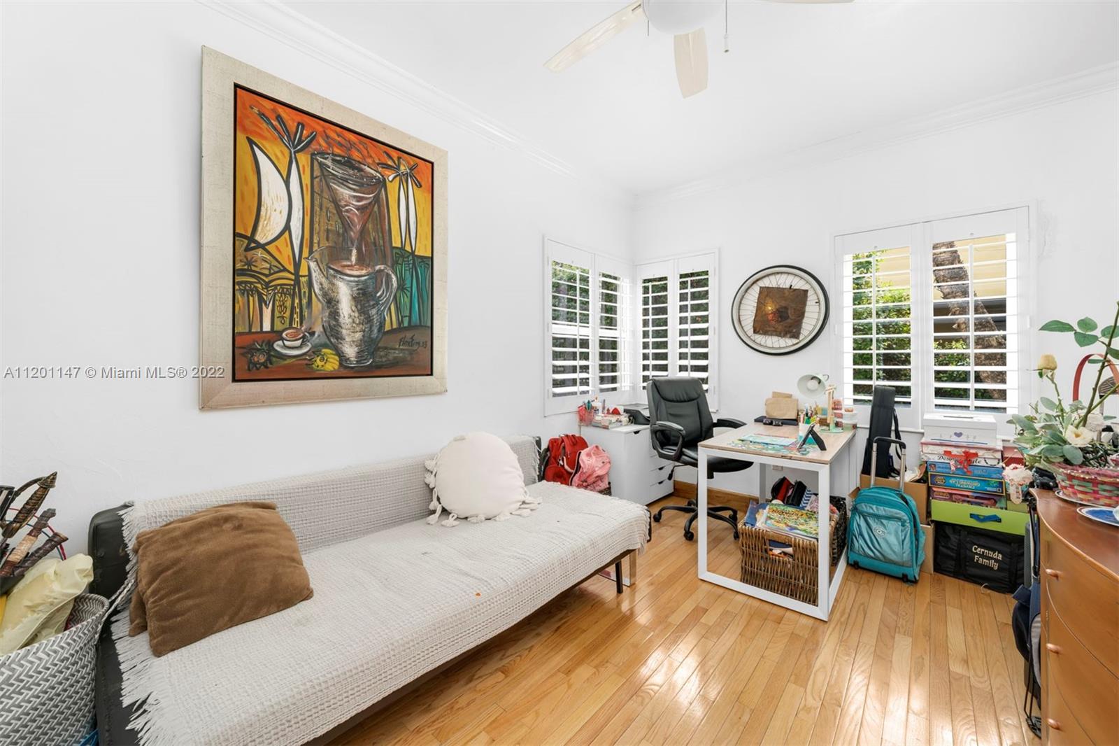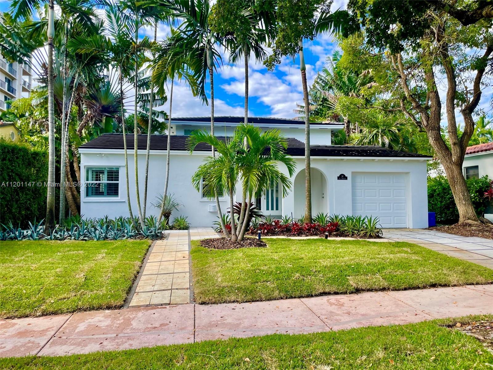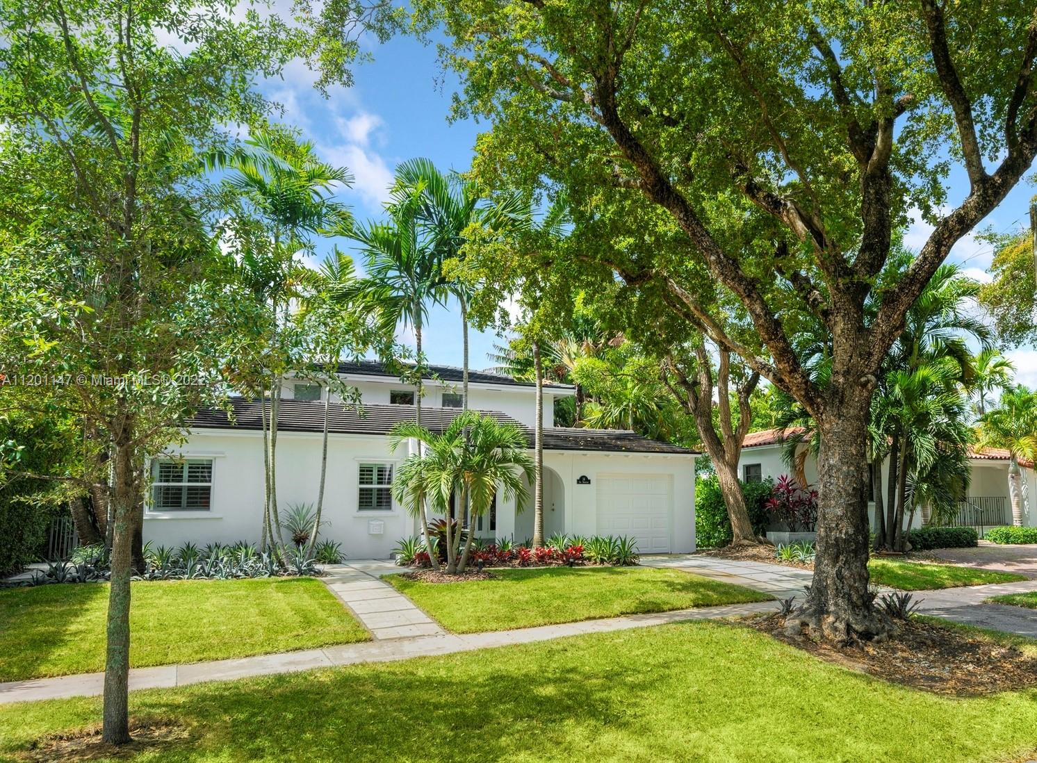 Pristine Coral Gables home with 4 Bedrooms and 3 & 1/2 Baths, in immaculate move-in condition. The living room & dining room offers open space for entertaining, including built-in sideboard & cabinets. The Great Room offers HUGE entertaining areas with large kitchen, separate breakfast nook, bookshelves, 1/2 bath, French doors open garden terrace. Two Bedrooms downstairs with separate bath. Second floor master bedroom suite and an additional large bedroom, both with on-suite bathrooms and HUGE walk-in closets. Bonus room garage conversion with AC, closets & mezzanine storage. Many home updates including storm windows, plantation shutters throughout, new electric & plumbing, hardwood flooring, and recent flat tile roof. Location offers privacy, safety, and a fabulous tree-lined street.