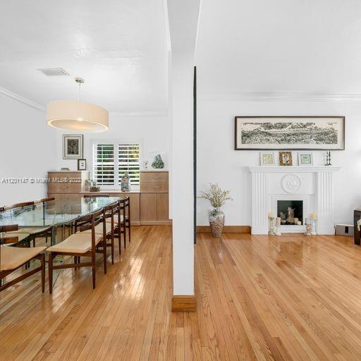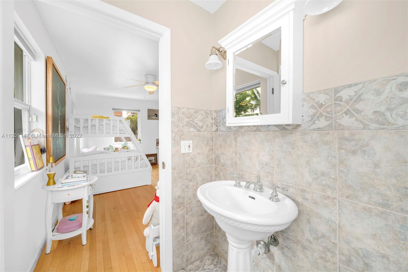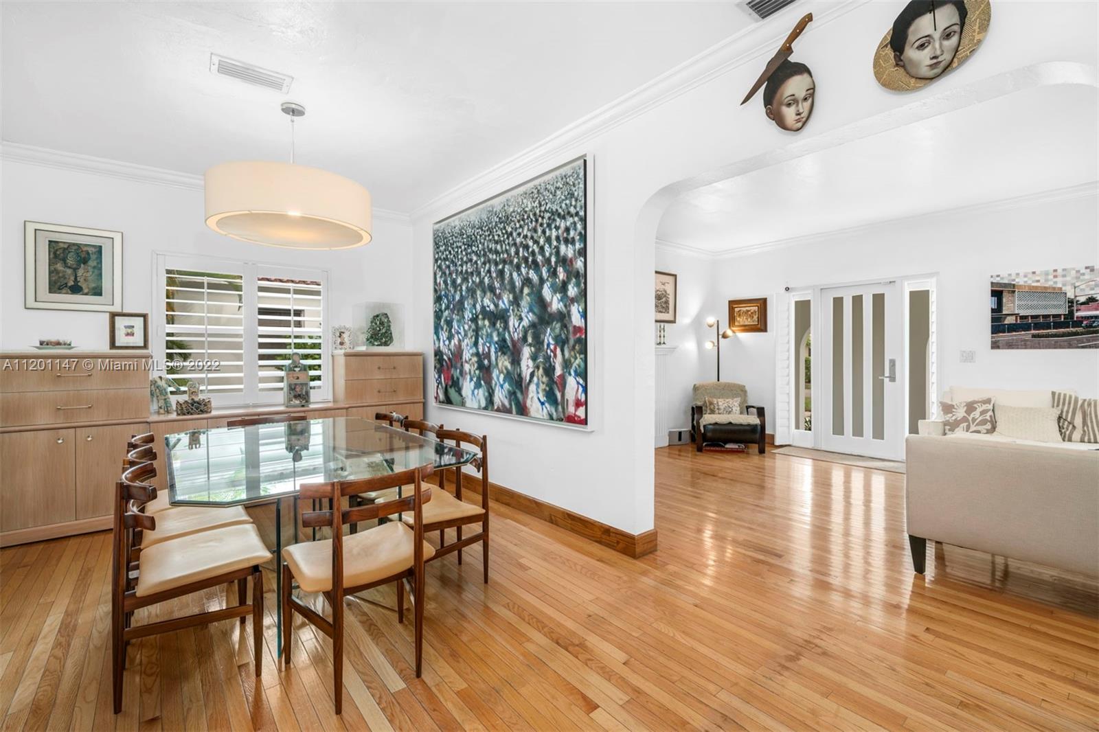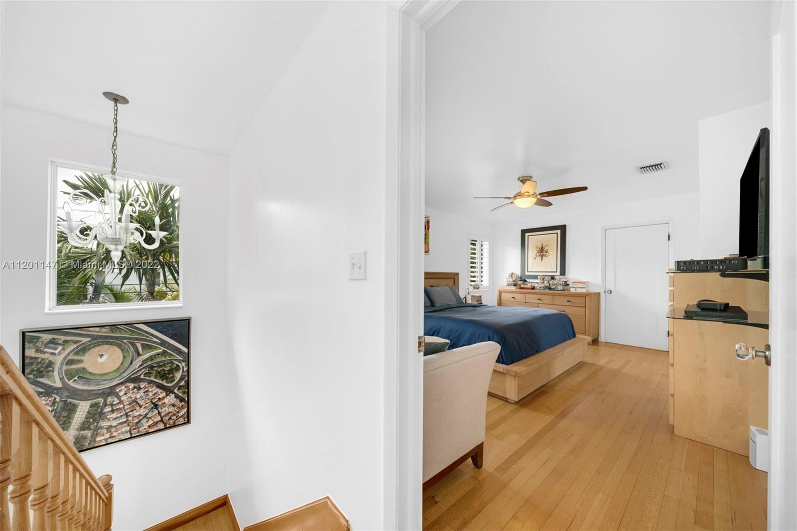 Pristine Coral Gables home with 4 Bedrooms and 3 & 1/2 Baths, in immaculate move-in condition. The living room & dining room offers open space for entertaining, including built-in sideboard & cabinets. The Great Room offers HUGE entertaining areas with large kitchen, separate breakfast nook, bookshelves, 1/2 bath, French doors open garden terrace. Two Bedrooms downstairs with separate bath. Second floor master bedroom suite and an additional large bedroom, both with on-suite bathrooms and HUGE walk-in closets. Bonus room garage conversion with AC, closets & mezzanine storage. Many home updates including storm windows, plantation shutters throughout, new electric & plumbing, hardwood flooring, and recent flat tile roof. Location offers privacy, safety, and a fabulous tree-lined street.