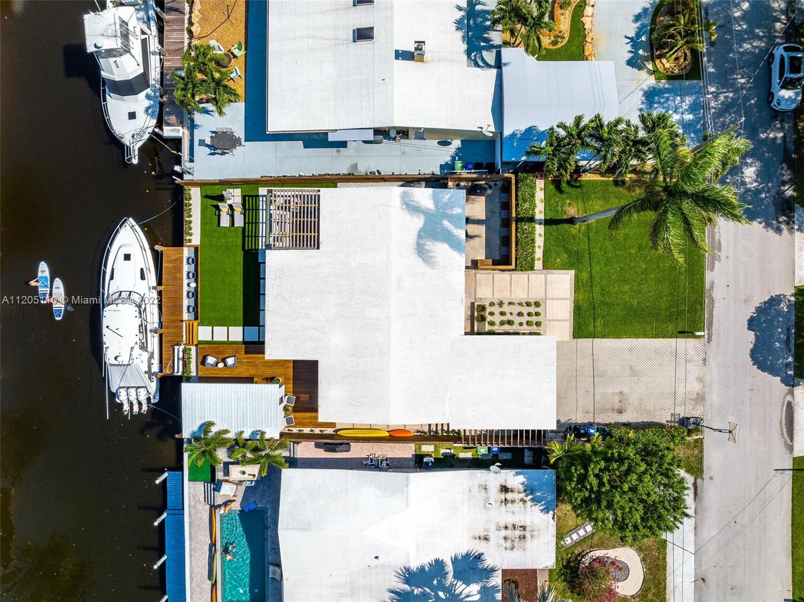 Mid-Century Modern Turnkey Stunner! High-End Waterfront remodel with an open concept layout and vaulted ceilings on 60' of deep water ocean access and no-fixed bridges. Free-standing modern bonus space office/guest structure overlooking the canal that can be a live/work at home space or a 4th guest bedroom. Updated Kitchen and Bathrooms, new electrical and plumbing, impact windows and doors. Extended outdoor gathering space around a fire pit and covered 14' x 14' pergola. Outdoor shower, artificial turf and pavers throughout the entire private backyard. This amazing modern California vibe boating home is in the hidden gem of the Lauderdale Isles neighborhood. Only 3 miles from Las Olas, downtown, beach and FLL International Airport.