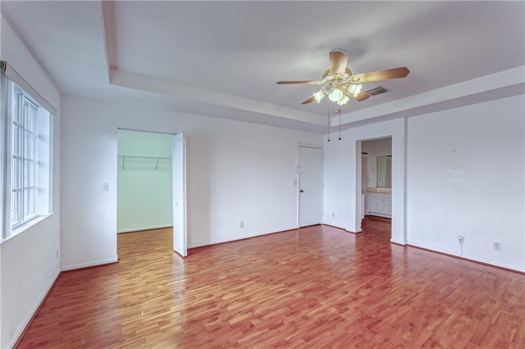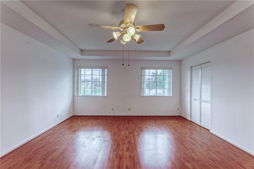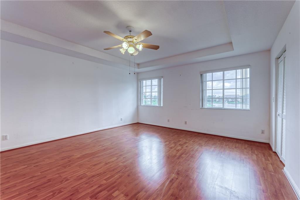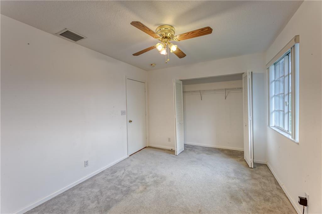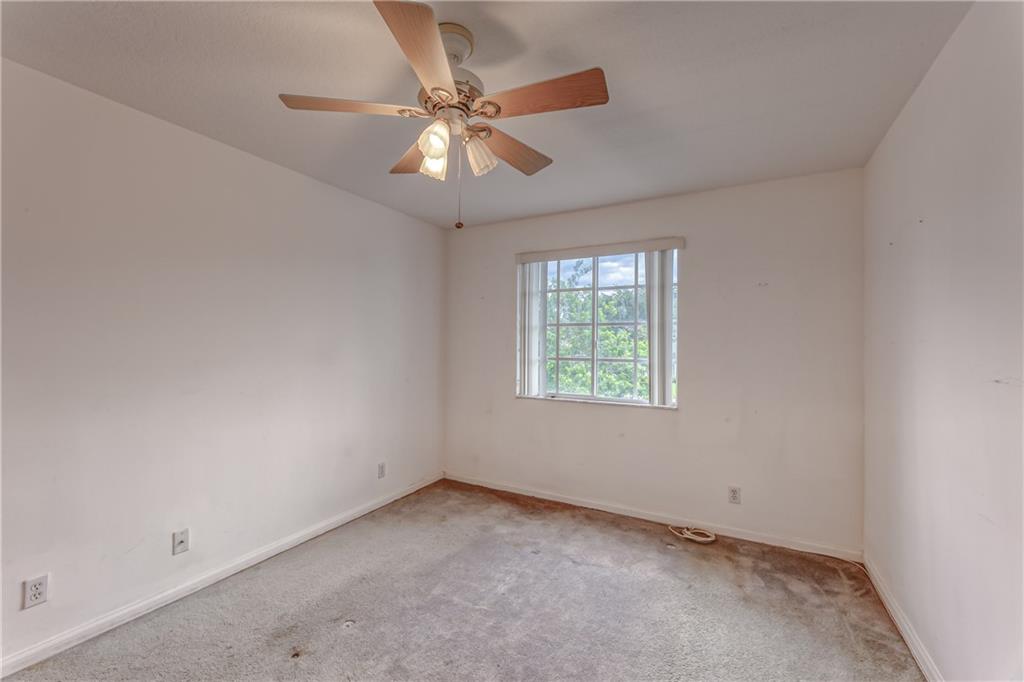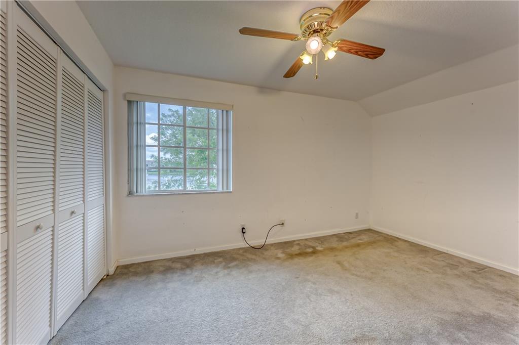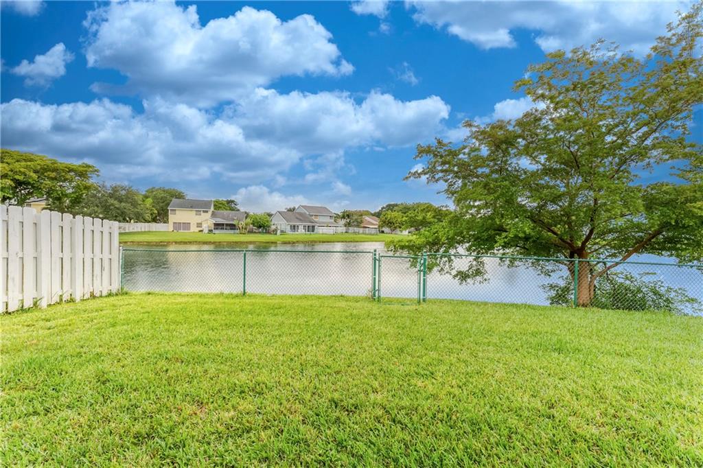 End unit townhome with large fenced yard sitting on a lake. Upstairs has 3 bedrooms, downstairs has a den/media room that could also be used as a bedroom. Half bathroom downstairs. Eat in kitchen with formal dining room as well. Large patio faces west.