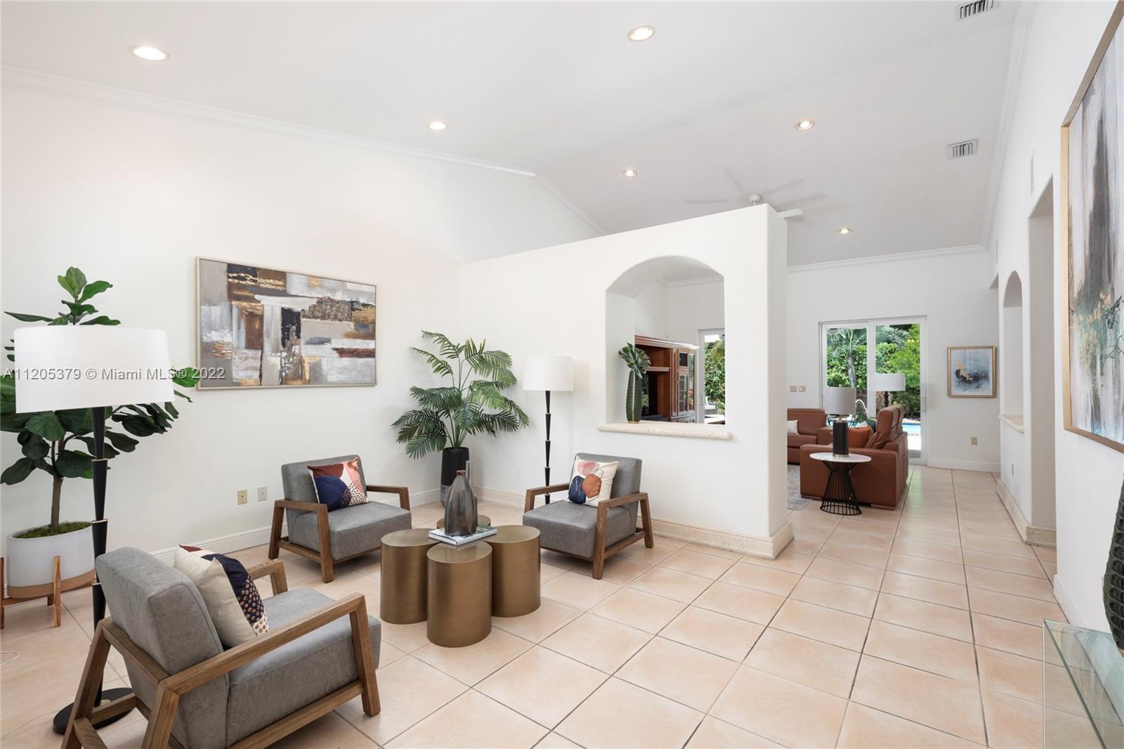 Set on the corner of a quiet North Pinecrest cul-de-sac with views of one of Miami’s largest banyan trees, this inviting home is too good to miss! As you step into the formal foyer, be enchanted by the high vaulted ceilings and bright open floor plan. With formal living and dining rooms, a family room, and a large kitchen with a breakfast area, there’s plenty of space for family and friends. From the kitchen or family room, step out on to your covered terrace and enjoy the pristine backyard with fountains into the pool, tropical landscaping, and 25+ orchids hanging from the trees. Zoned for Pinecrest Elementary with top private and public schools nearby. Impact windows/doors, whole house generator, two-plus-car garage, and two paved driveways complete this picture-perfect home.