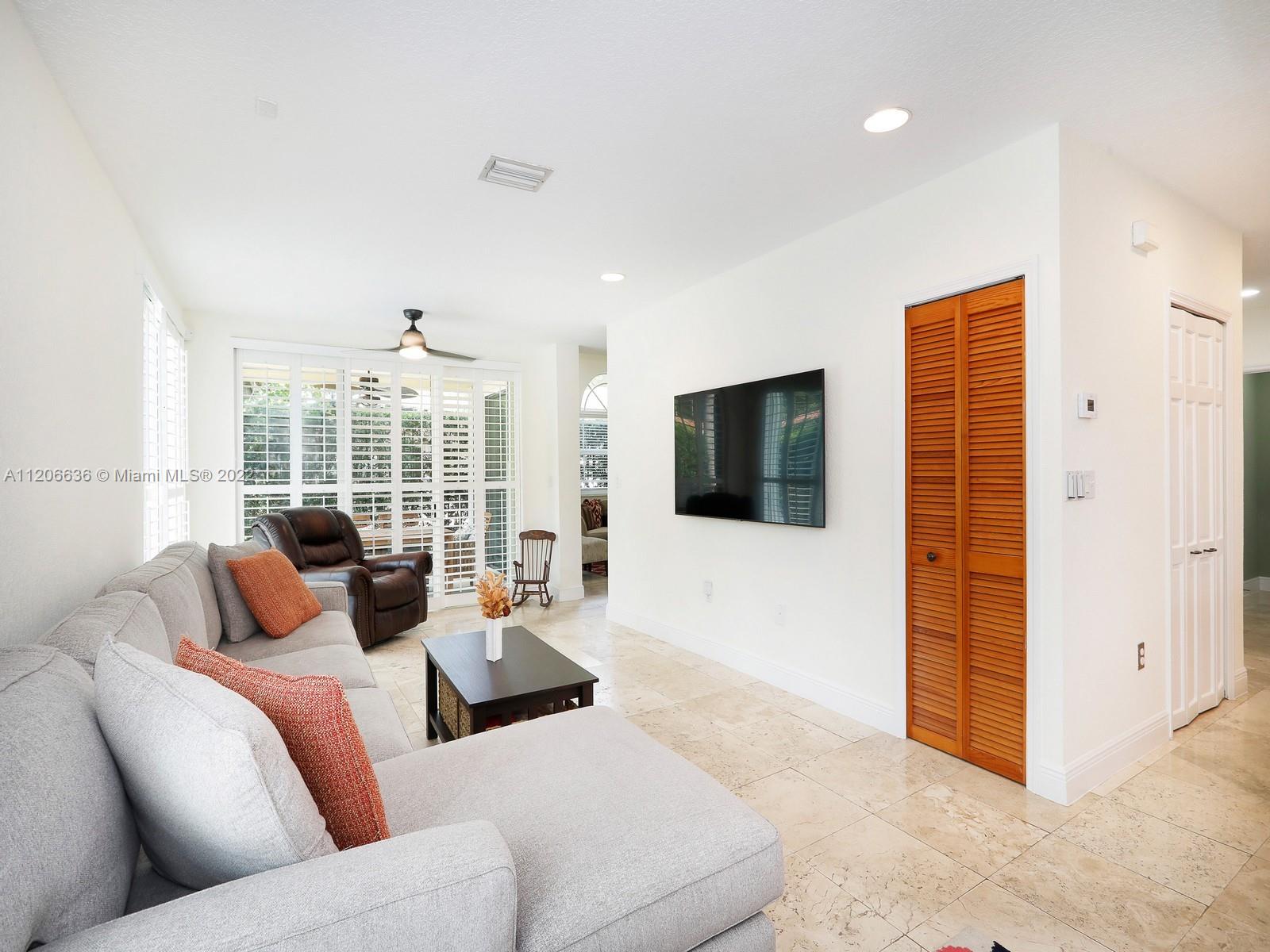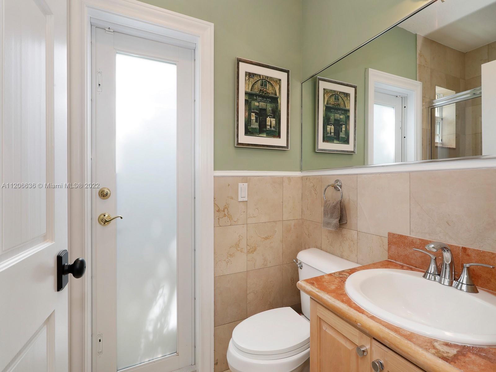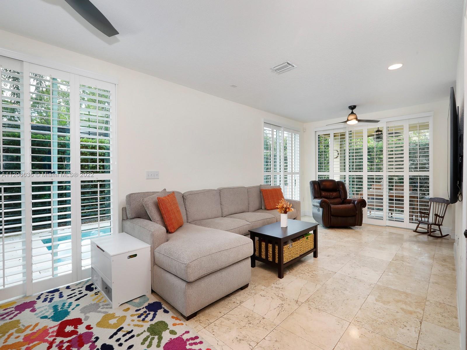 Centrally located on a charming tree-lined street, this beautiful two-story, 3 bed, 3.5 bath home is situated perfectly on its 5250sf private lot. This home features high ceilings, ample natural light, two car garage, formal living and dining rooms, powder room and eat-in kitchen with stainless steel appliances and granite counters. A large family room opens to a covered and breezy pool patio, perfect for dining al fresco in the evening while being protected by the recently installed Swat mosquito system. Upstairs, the master suite has a large walk-in closet and bathroom with dual vanities, whirlpool tub and large shower. The pool area has external bathroom access and pavers throughout the yard for easy maintenance. Enjoy walking distance to UM campus and mere minutes to Gables dining.