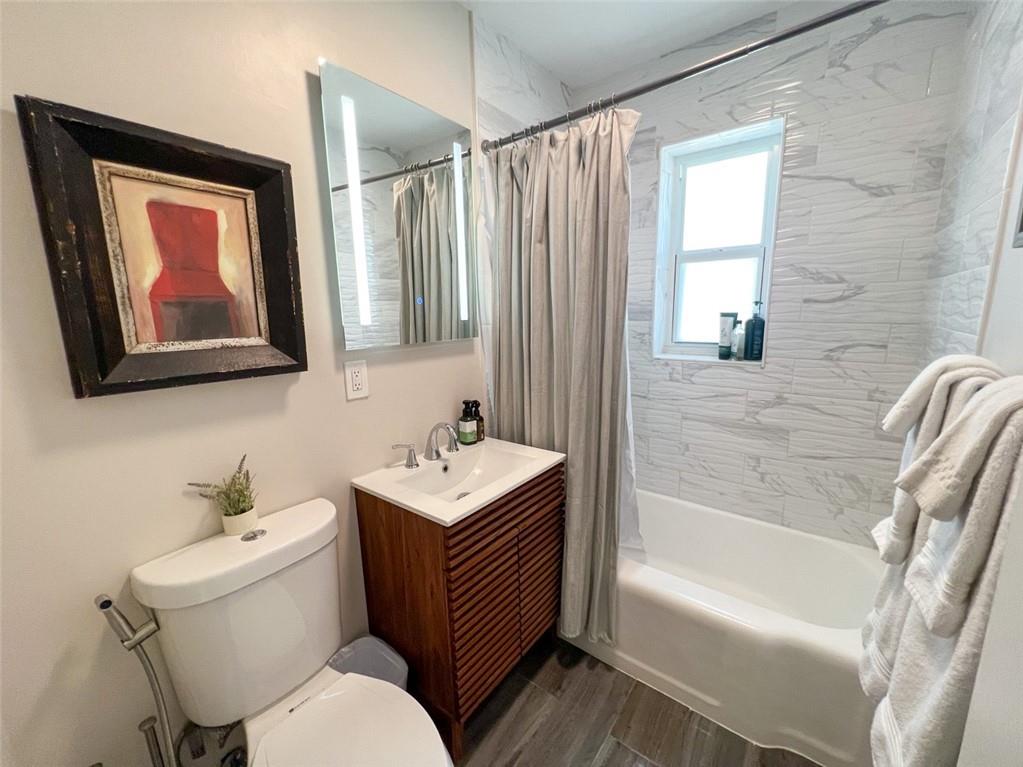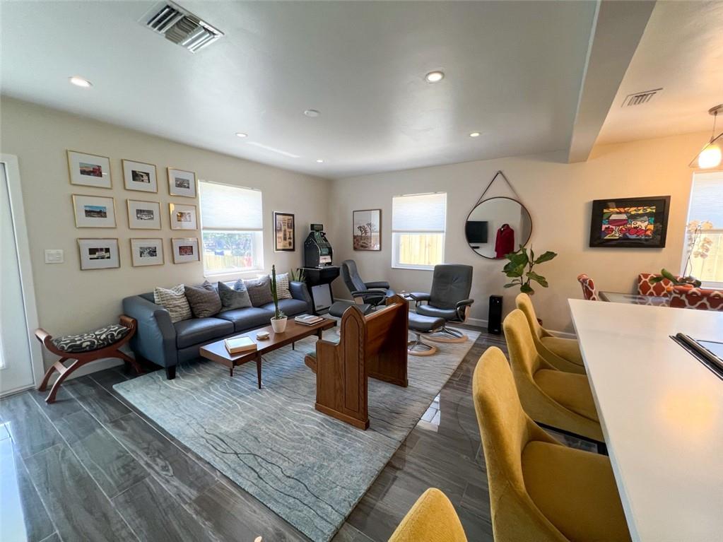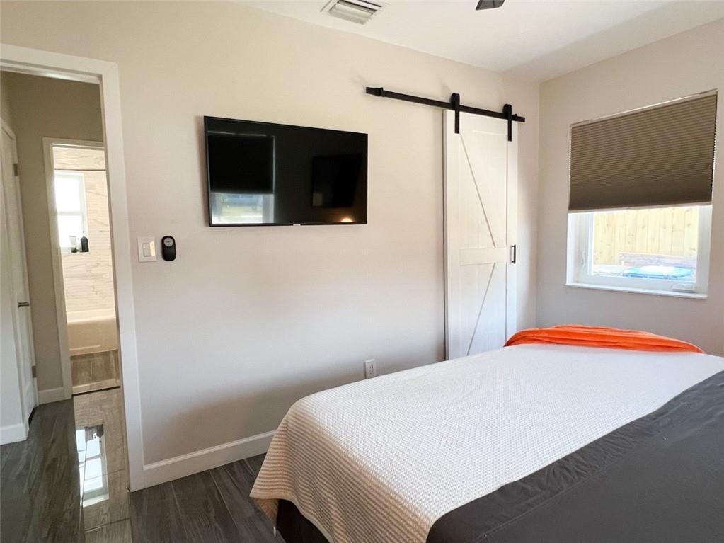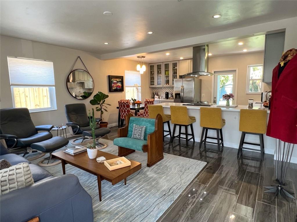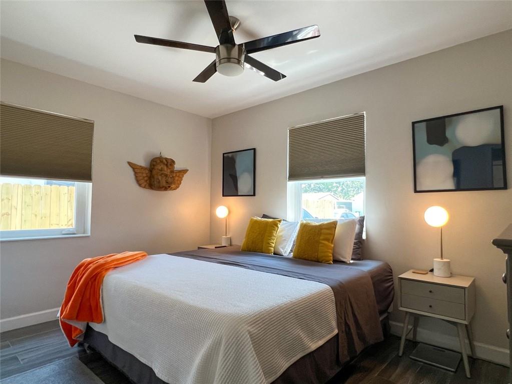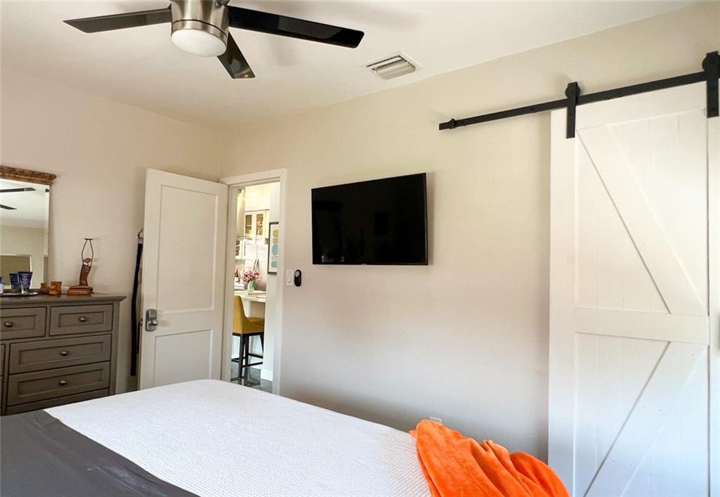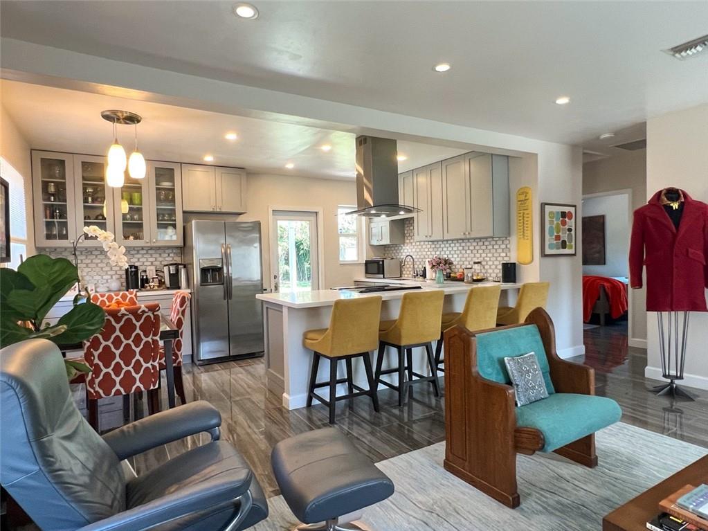 Spectacular, updated 2 bed, 1 bath home in Progresso. Completely updated, move-in ready. Wood-look, porcelain tile throughout. Kitchen open to living area. Corian countertops and large breakfast bar with counter seating. Gray cabinetry w/ soft-close doors and drawers. Stainless appliances include slide-in stove, dishwasher, and refrigerator with ice-maker and water dispenser. Extra deep stainless undermounted kitchen sink. Separate dining area with additional cabinetry and counter. Recessed lighting in living room and kitchen. Each bedroom has a ceiling fan and single closet with sliding barn door. Laundry room under air outside kitchen door. Large yard with room for pool. Storage shed in far rear. New roof in 2020, new impact windows/doors in 2021, and instant hot water heater in 2021.