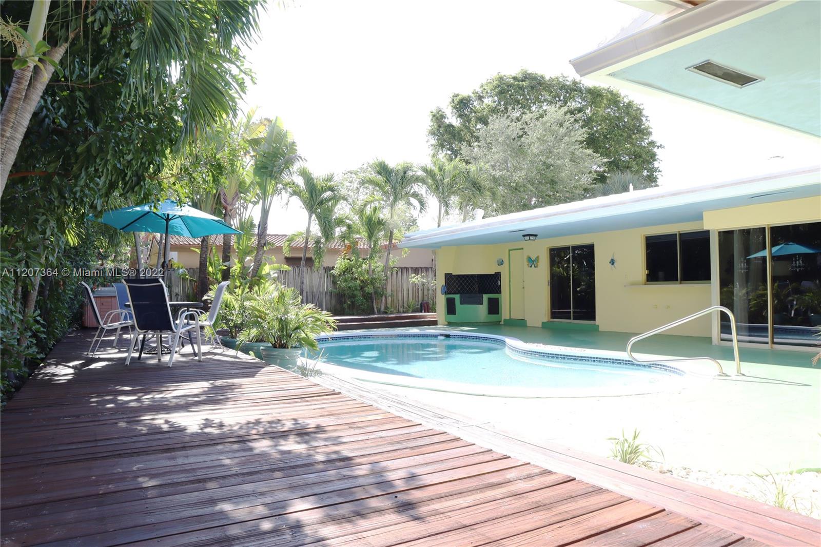 FABULOUS property w/POOL view from MAIN BEDROOM and KITCHEN. LARGE CORNER LOT fully fenced at the ACCLAIMED IMPERIAL POINT community, which is located within minutes from Fort Lauderdale Beach The outdoor Oasis has landscaped w/ palm trees and a pond for a private tropical paradise feeling Well maintained property with a Key West style pool area and backyard IMPERIAL POINT is one of the few subdivisions that have SIDEWALKS New garage doors new hurricane windows, new gutters all around the house resealed driveway, resealed roof w/ new coating gazebo cat 4 hurricane approved North East and West exposure Cabana entry wood deck new plantation shutters for ceiling fans and partridge in a pear tree Fresh painted Murphy bed included w/ the sale Nice barbecue area with access to a full bathroom