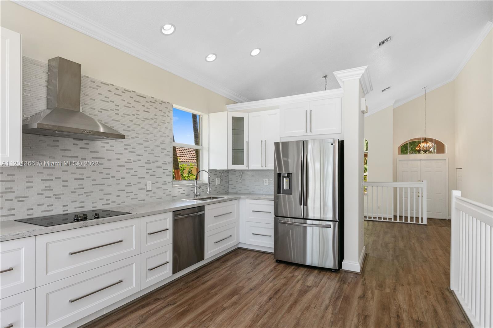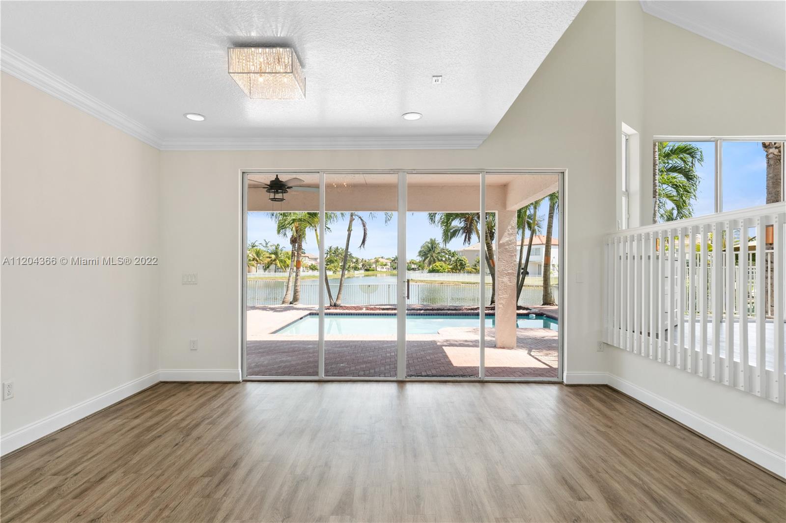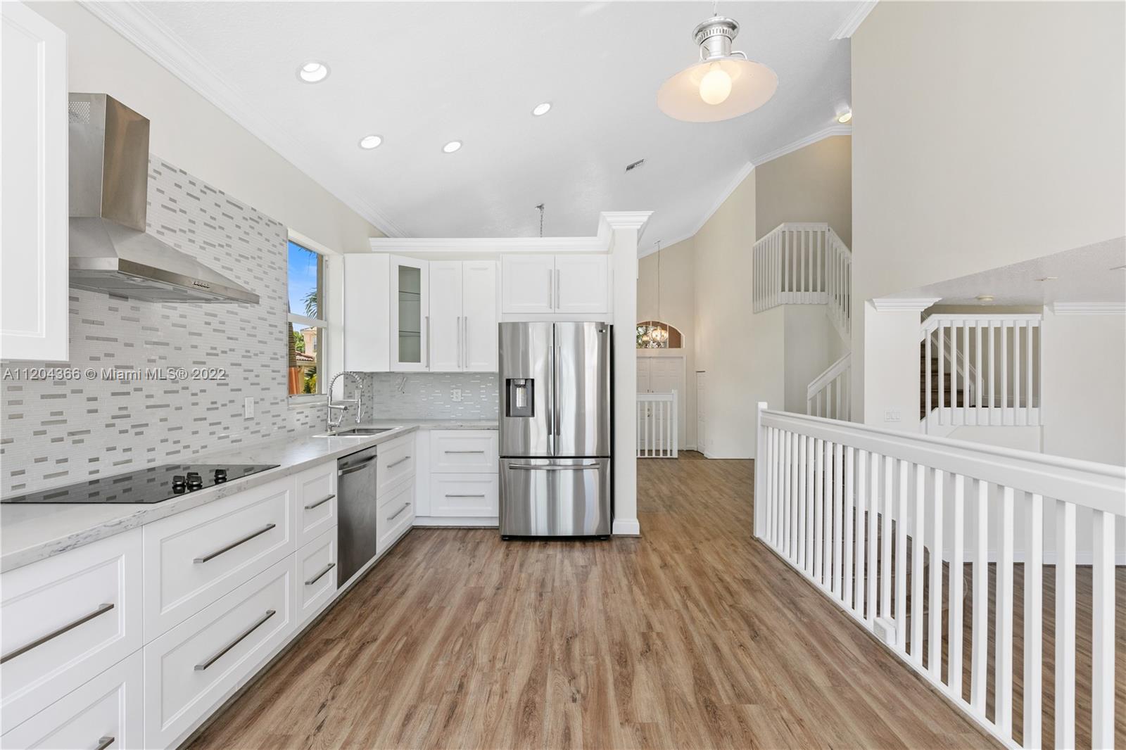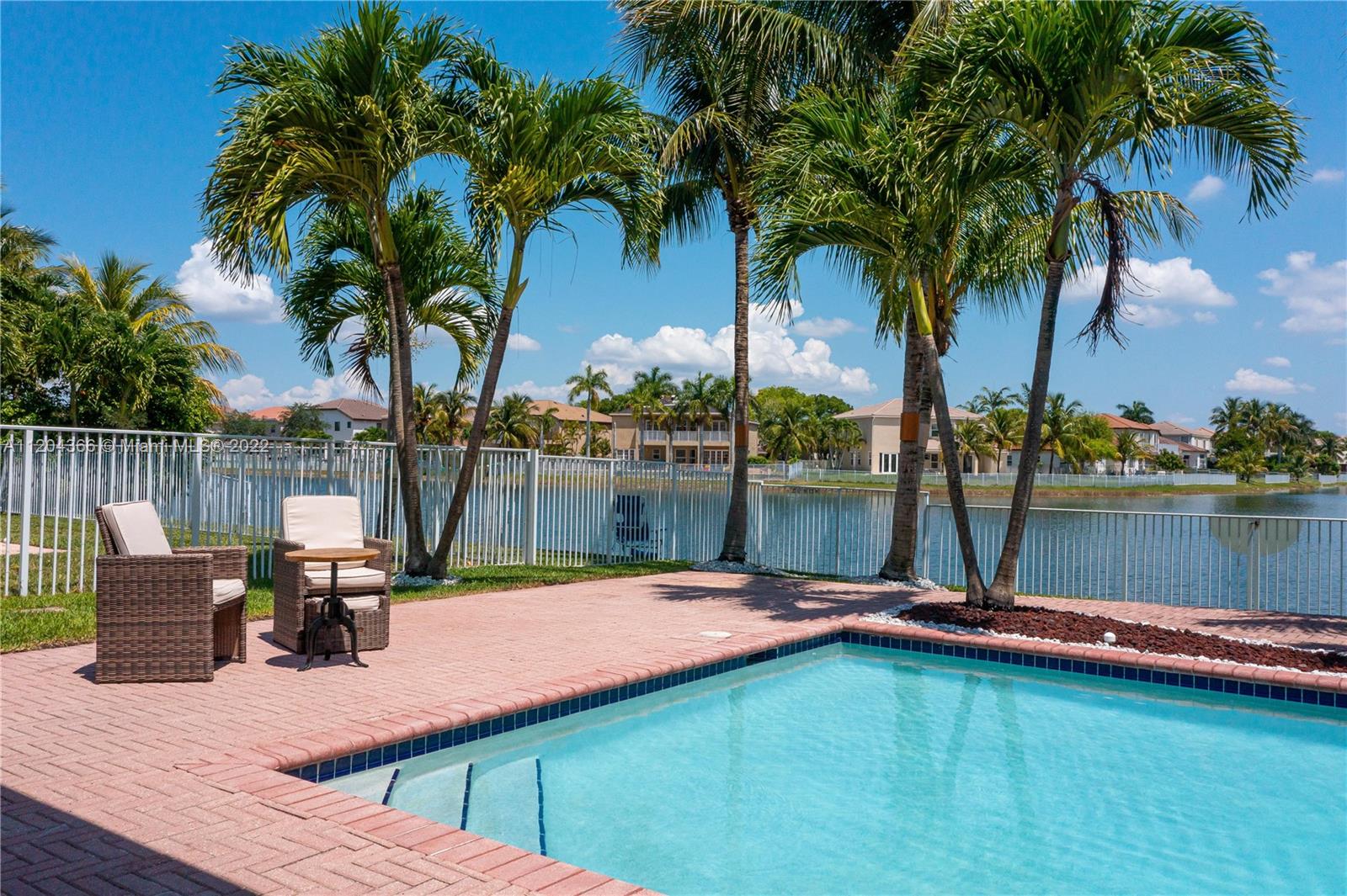 Beautifully renovated 4/3 pool home on the lake in Riviera Isles. This amazing home boasts a modern, brand new, white kitchen and appliances, new vinyl flooring throughout, new tastefully upgraded bathrooms, freshly painted, meticulous curb appeal, built in closets and more. One full bedroom and bathroom on the first floor. Air conditioner was replaced in 2019 and the water heater was replaced in 2018. Accordion shutters for the second floor and hurricane panels on the first floor. This home is move in ready and will not last!