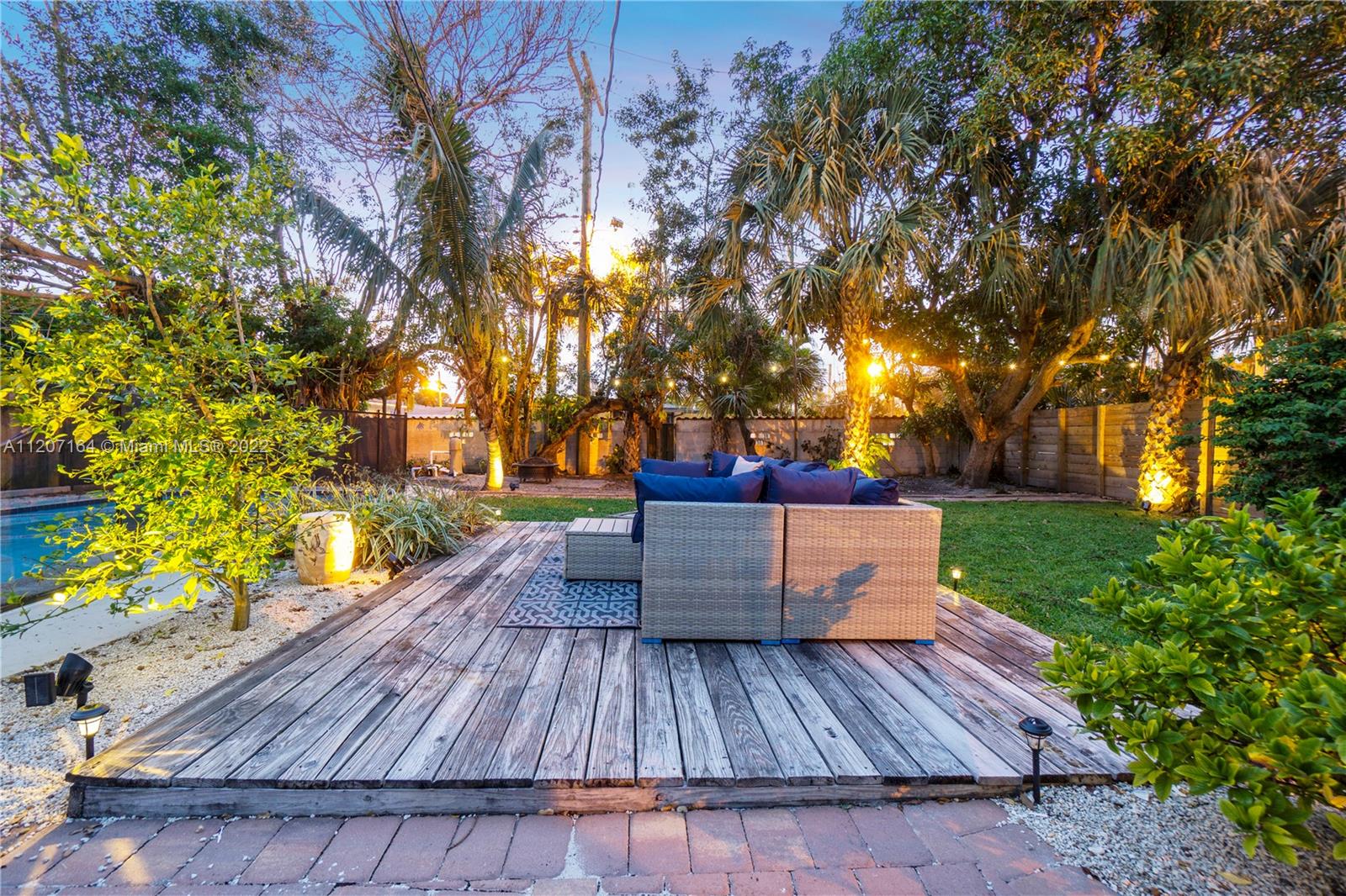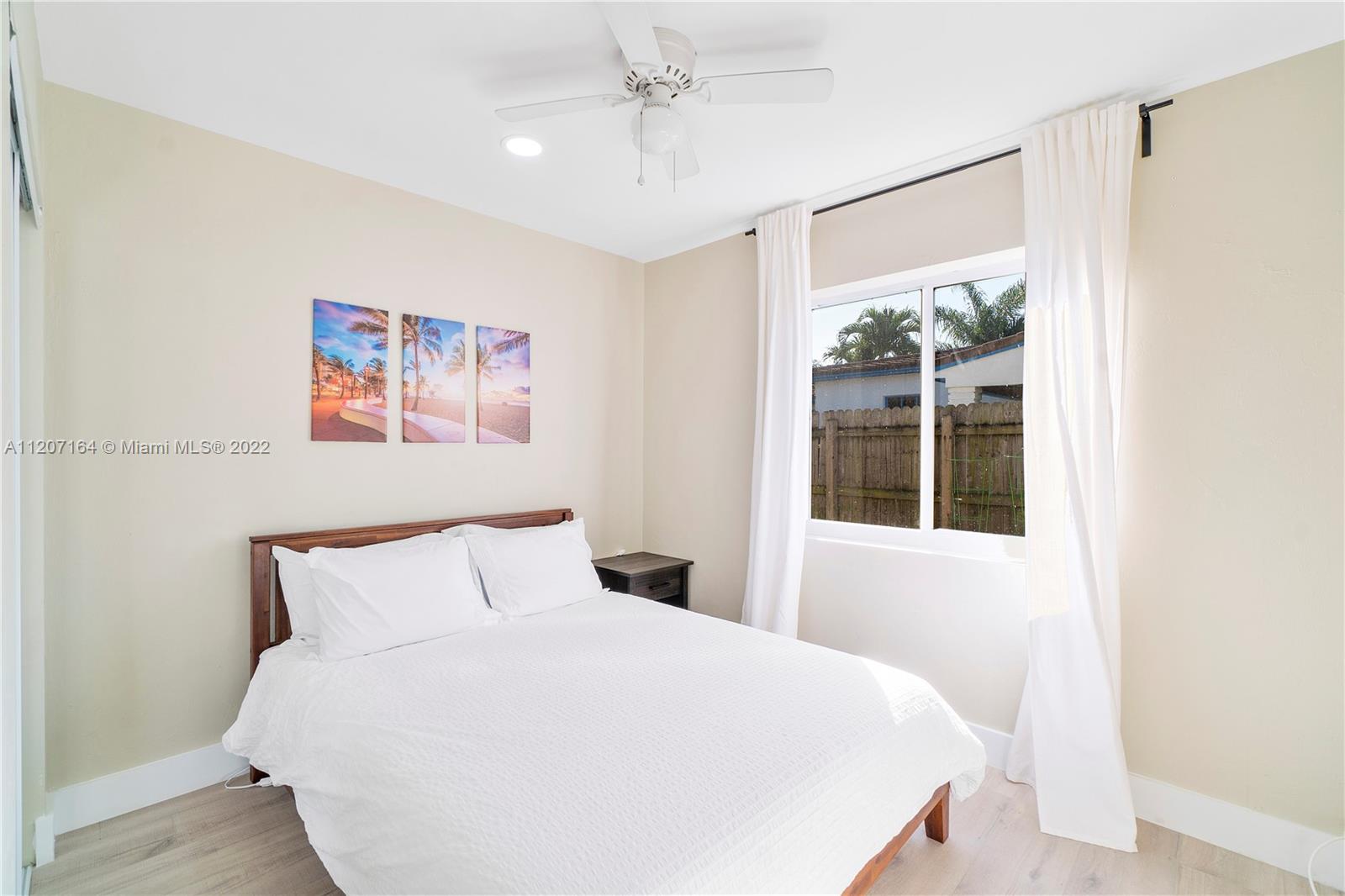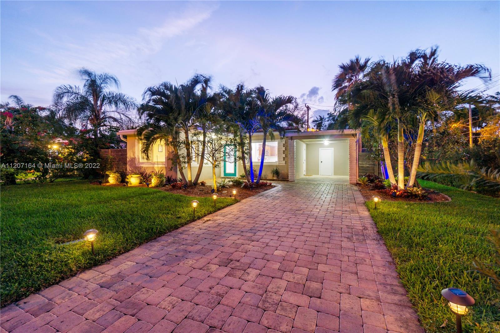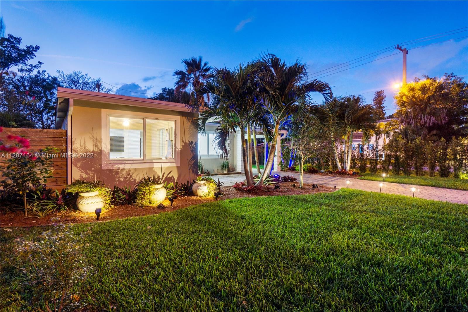 Perfectly remodeled 3/2 corner lot Pool home in the Flagler Village area, just outside Poinsettia Heights & Lake Ridge. Operating as a licensed Vacation Rental property. Turn key furnished w/ Game Room! Updated kitchen w/ Stainless appliances, Granite Counters & breakfast bar. Free-form Salt chlorinated Pool surrounded by a huge, fenced, park like yard w/ Fruit Trees & landscape lighting. High-end plank flooring, LED lighting. Gorgeous updated European style hall bathroom w/ glass shower doors is perfect for guests. The primary bedroom suite features a huge walk-in closet & luxurious bathroom w/ dual vanity. Impact windows & Doors. 2017 Permitted Flat & Tile Roof. A/C Permitted 2020. Brick Paved Driveway & Patio. Ride your bike to Victoria Park, Wilton Manors & Coral Ridge US1 Restaurants!