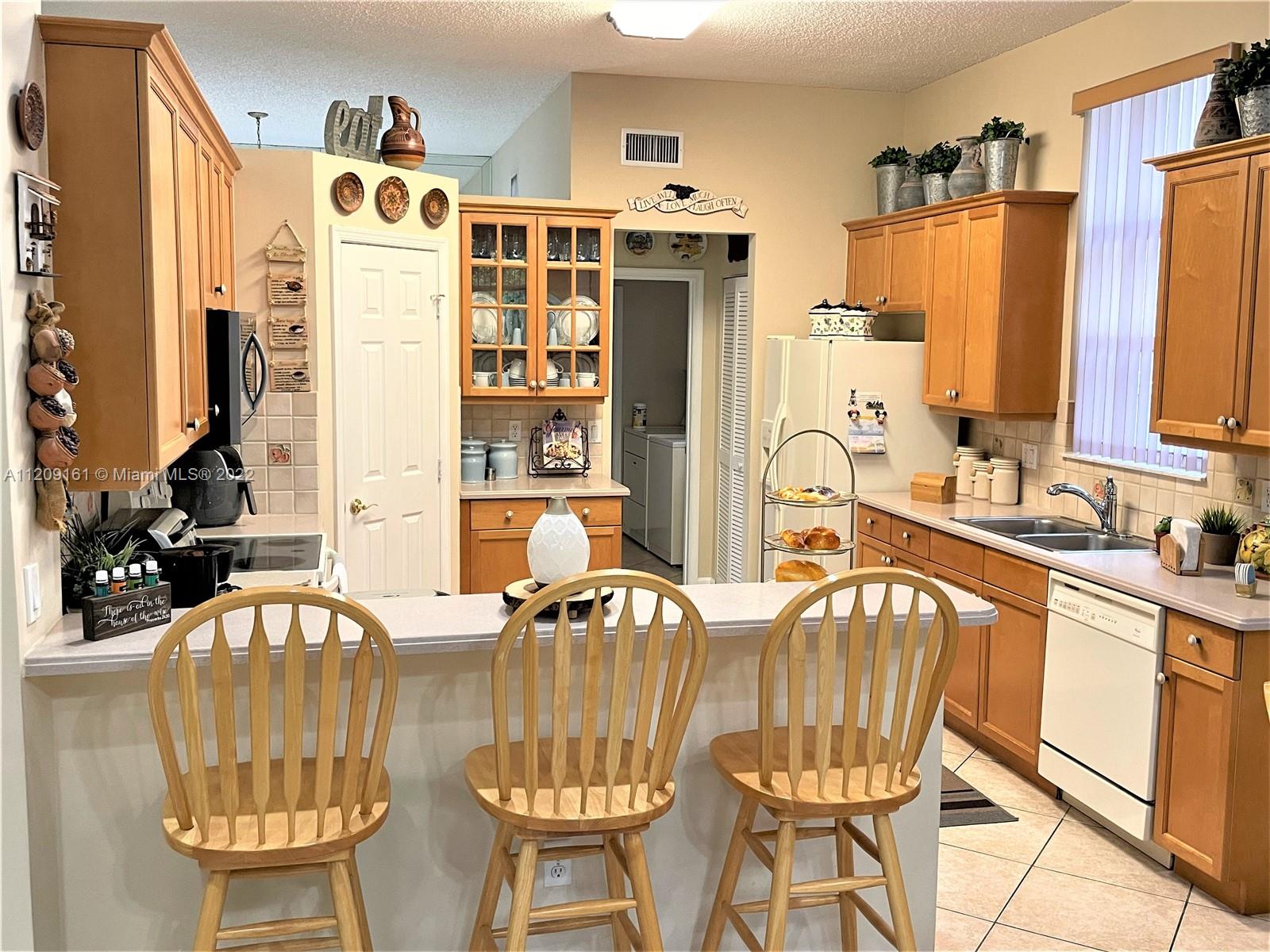 This home is spotless. 4 bedrooms, two baths, two car garage single story home in Riviera Isles; a gated community West of I75. Titled throughout, wood kitchen cabinets, upgraded bathrooms, covered terrace, closet cabinetry, open floor plan. Home is immaculately kept just waiting for new owners. Enjoy resort style amenities including swimming pool, gym, tennis courts, basketball court, kids' room, party room and more. Home centrally located close to public transportation, shopping, restaurants, hospitals and major highways.