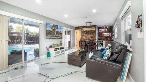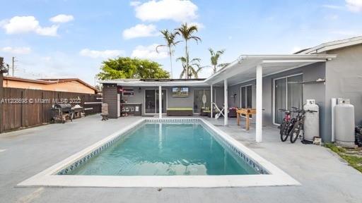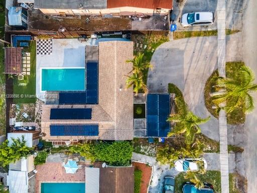 Welcome Home! Nestled in Hollywood, FL is your quiet oasis.. a beautiful 3/2 with lovely pool and hosting area that will leave you looking forward to the weekend! Park in your circular driveway, and enter your smart, solar-paneled home with an open floor plan showcasing your gorgeous kitchen. Equipped with self-closing white cabinets, lower-placed microwave, and stainless steel appliances with wall-mounted hood, this showstopping kitchen is a must see! Your primary room is equipped with walk-in closet, double-sink and backlit mirrors for the primary bathroom. The laundry room boasts a top-of-the-line washer and dryer, perfect storage and wall cabinets for easy organization. With inside + outside bar, pergola, fruit trees, impact windows, roof 2020, shed and storage.. This is HOME!