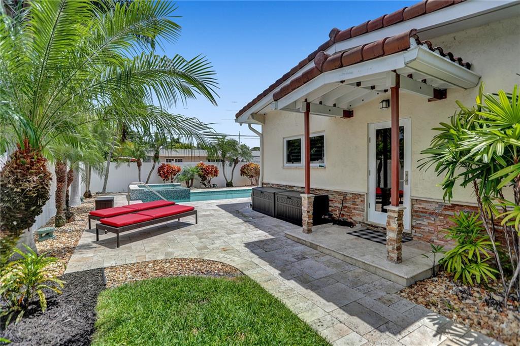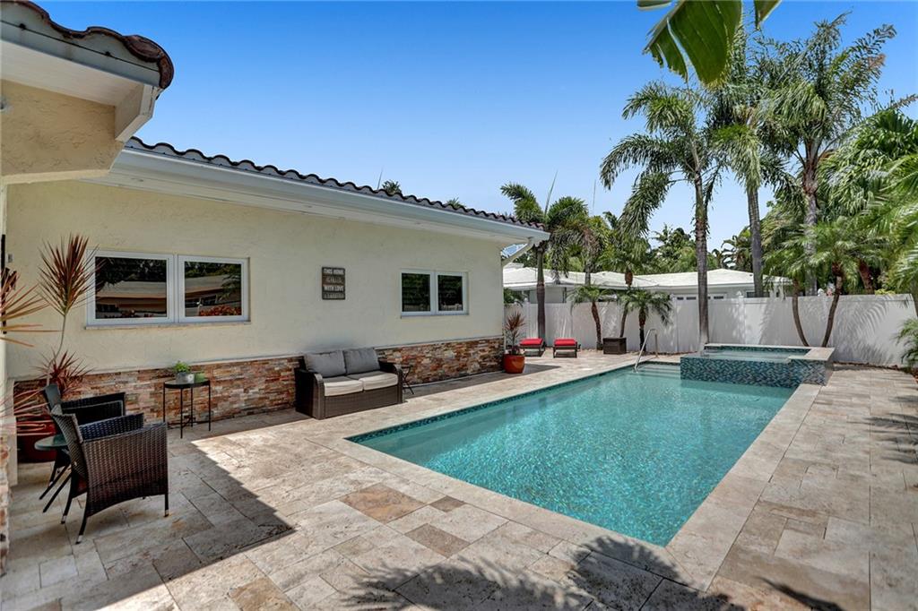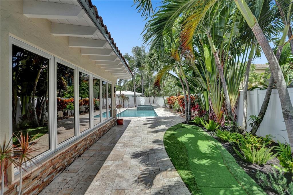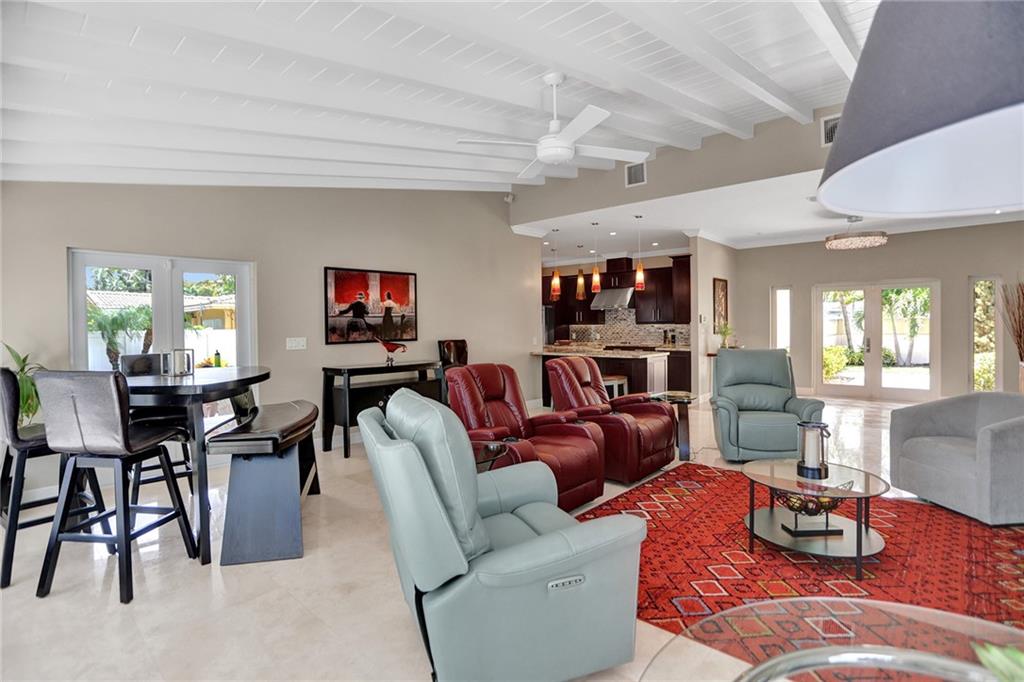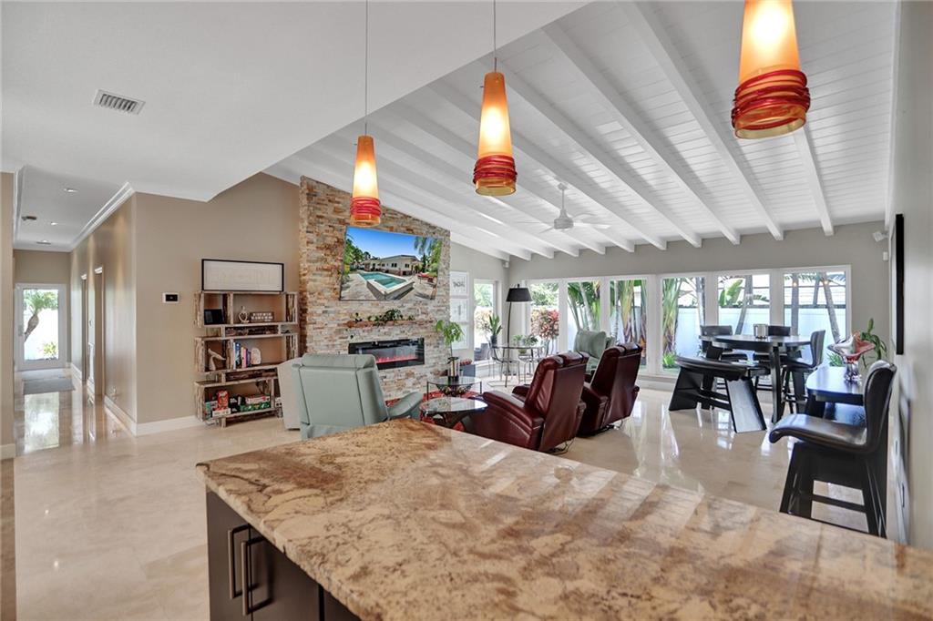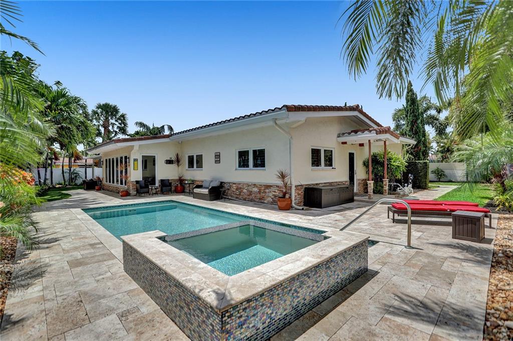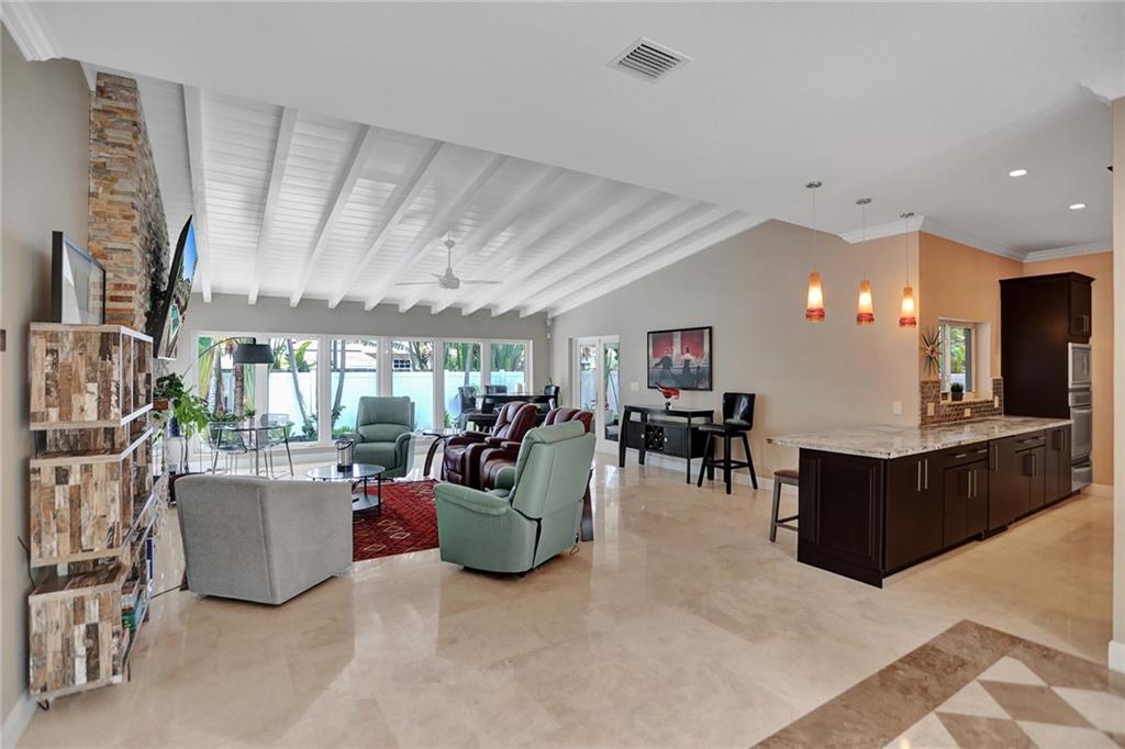 Total New Renovation in desirable Coral Ridge neighborhood. Fabulous 3BR/2BA/,2 Car garage with complete privacy. Vaulted, Open beam ceilings that add charm to the Great room which includes a new modern split rock fireplace. All new Impact windows and doors w/sun blocking shades Enjoy a Huge master Master bath w/soaking tub. A total WOW kitchen w/island &, Kitchen Aid appliances. The home is behind a stately masonry wall with custom decorative gates and travertine up lit walkway to the double glass entryway. Landscaping includes Italian Cypresses and over 70 palm trees. New 19 x 27' covered outdoor granite kitchen/Bar/Fire-pit. Saltwater Pool/Spa, New underground sewer/water lines/electrical/cable to street. Bose system in & out, Brand new A/C, Maintenance free grass. security cams,