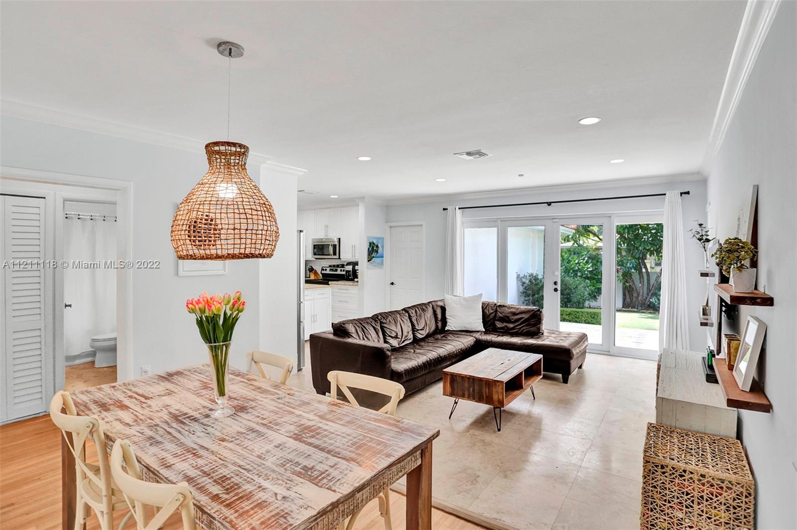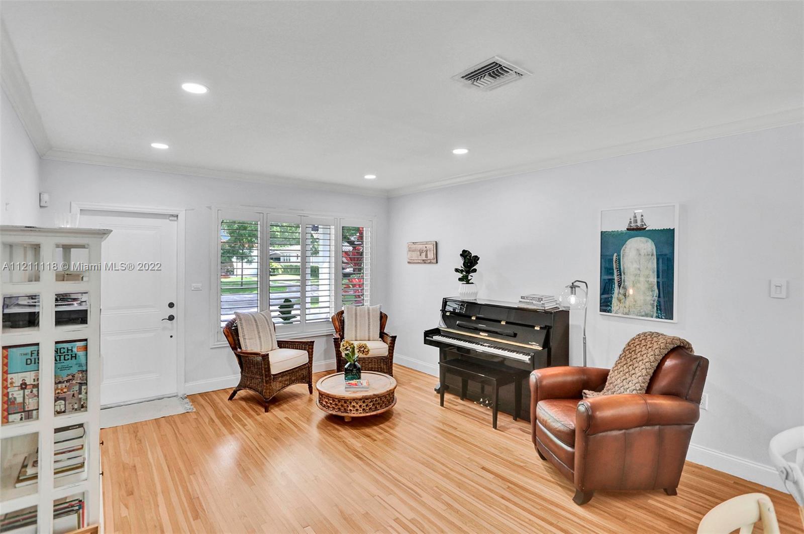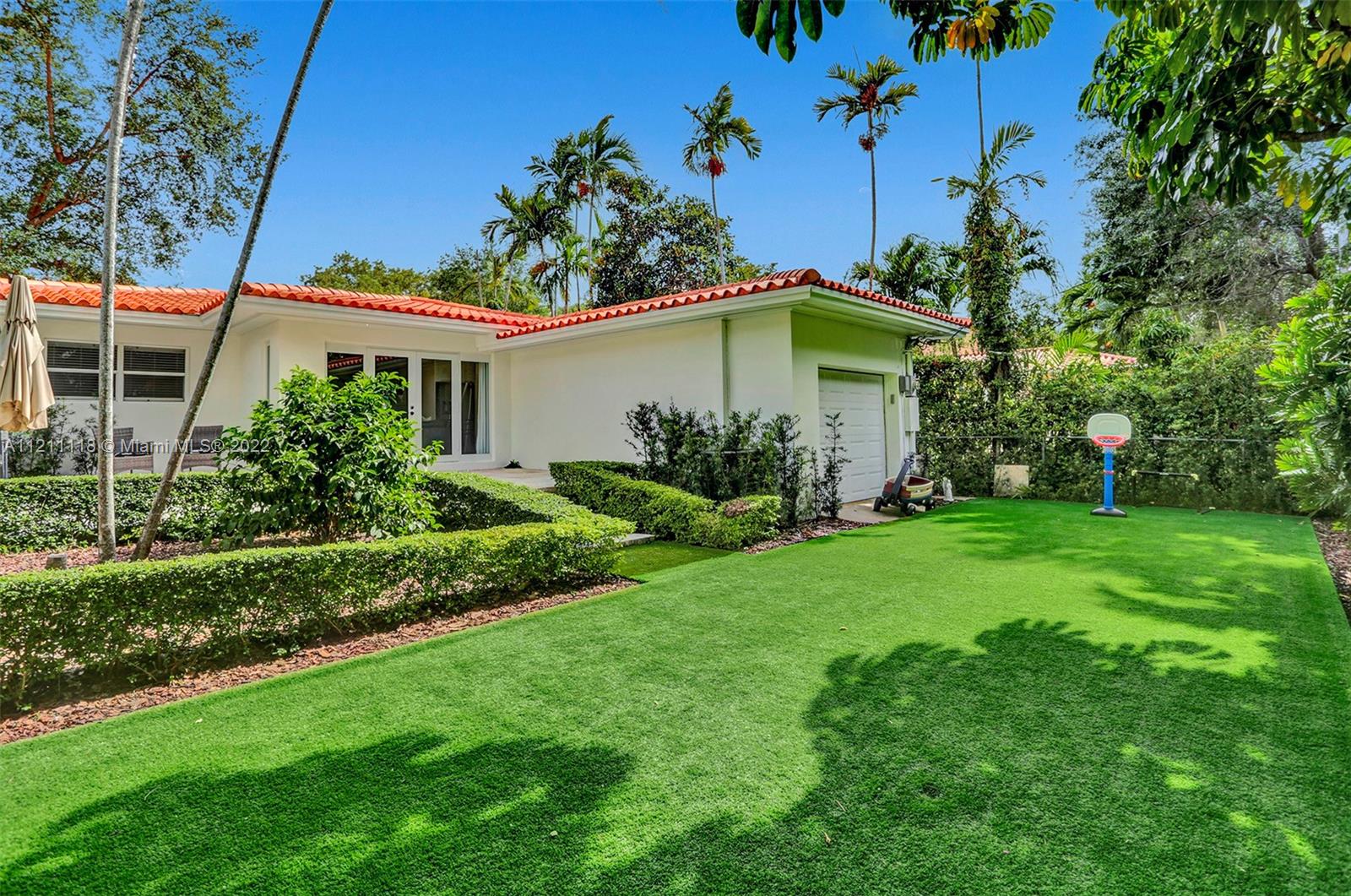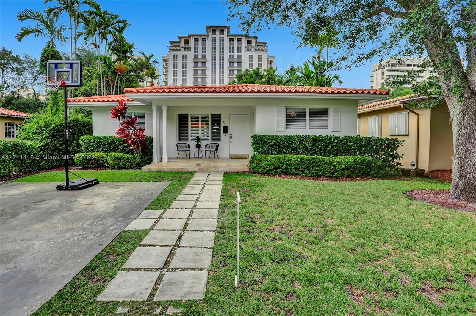 Best location in central Gables! This 3-bed, 2-bath home has an inviting open layout with tons of natural light. Beautiful, original hardwood floors throughout most of the house, and travertine tile in the remaining area. Impact glass doors open to a spacious terrace and landscaped backyard with turf. Upgraded PVC pipes throughout. A newly refinished garage with A/C can be used as a multipurpose room. Walk to the shops and restaurants of Miracle Mile, Coral Gables Youth Center, Coral Gables City Hall, Granada Golf Course, and more. City living in a single-family home. A real gem!
