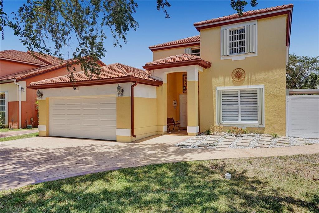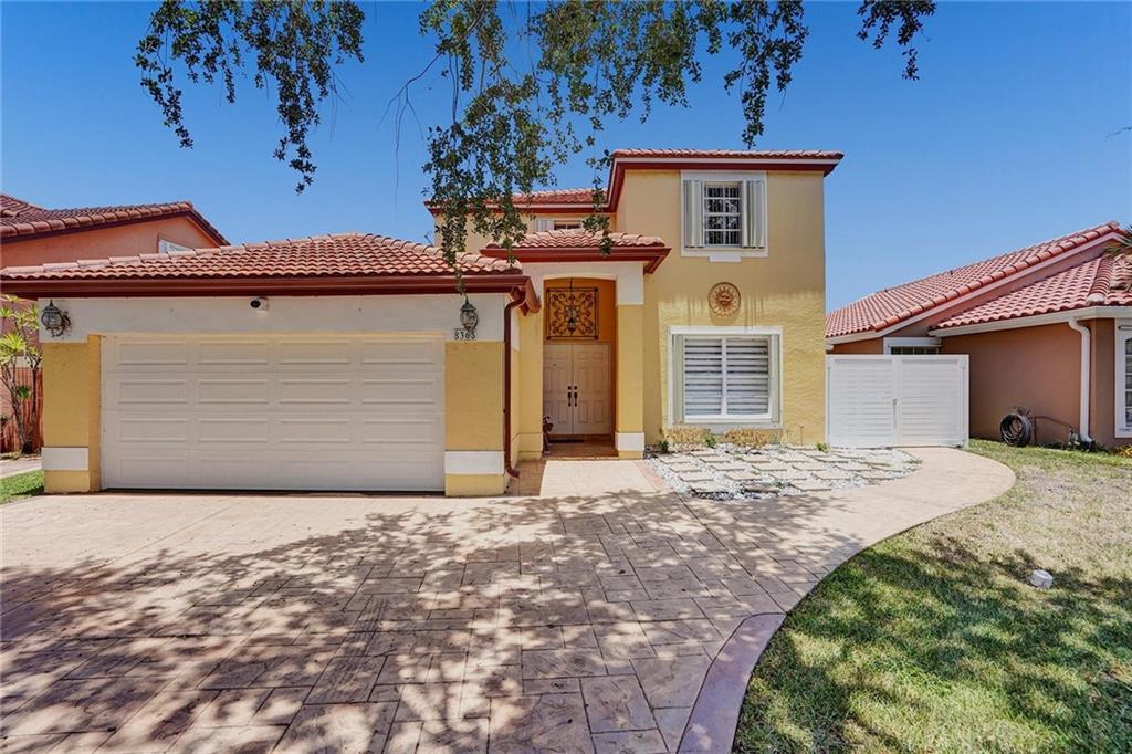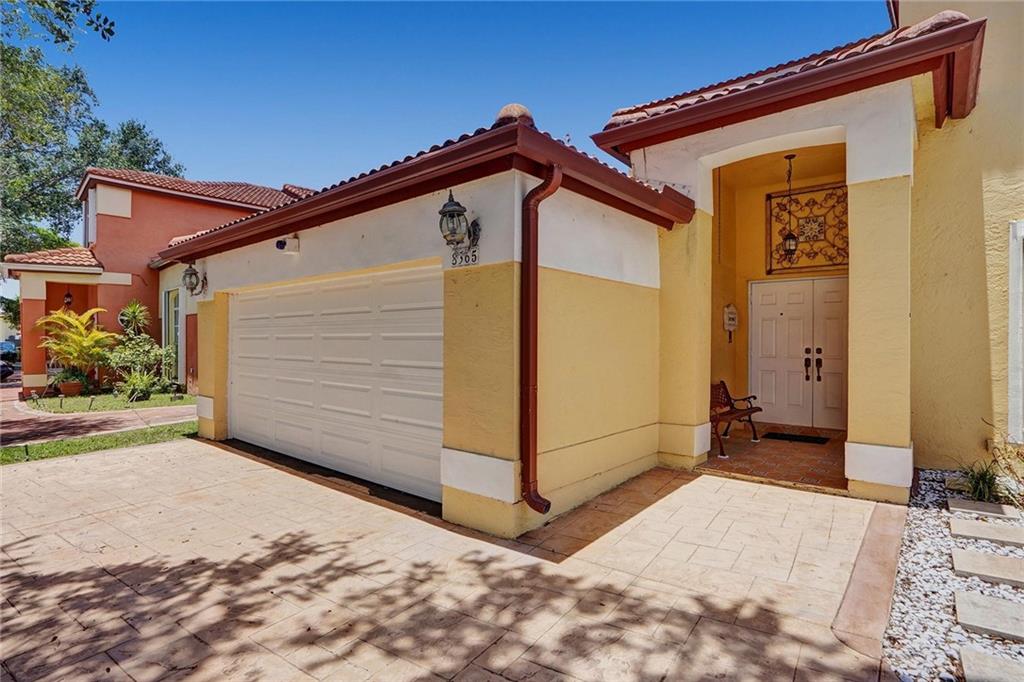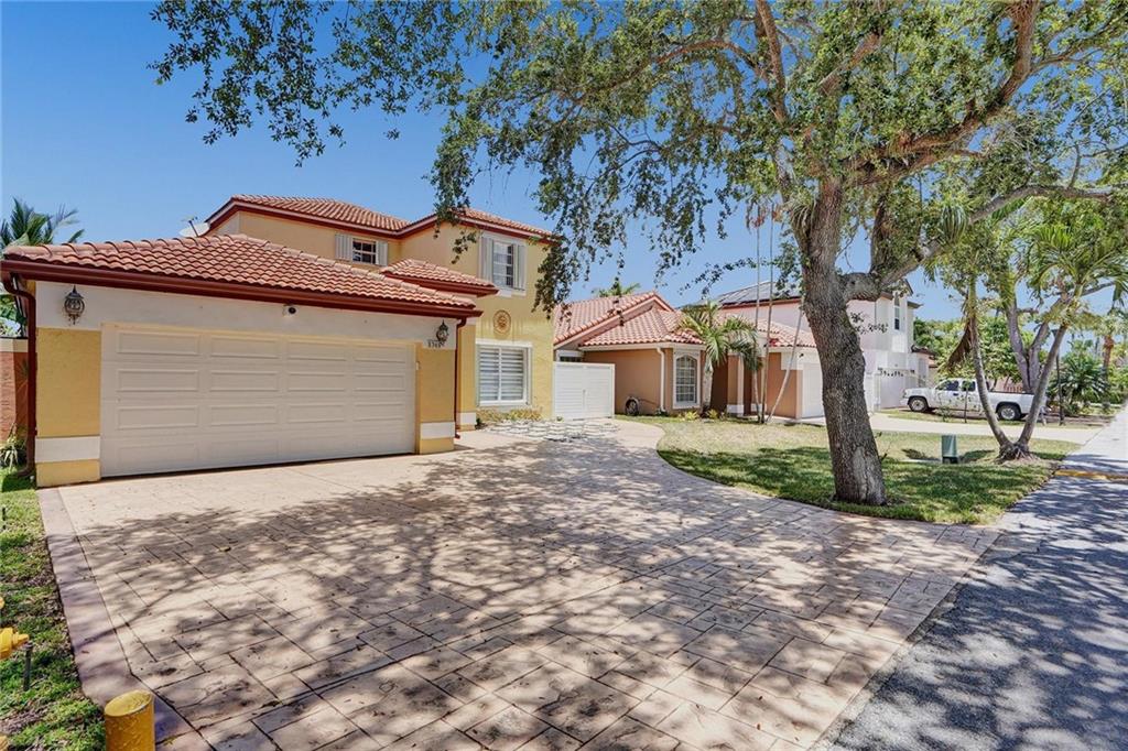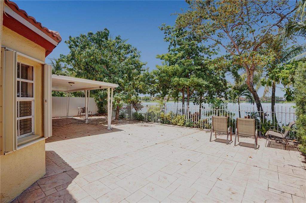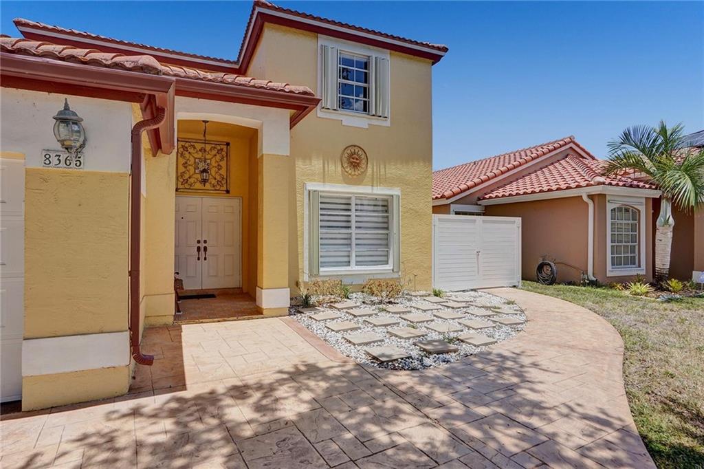 Welcome to this move in ready home, ready for its new owners! From the moment you enter, you are greeted by vaulted ceilings & water views. This waterfront beauty is bright, spacious & full of light. It features 3 beds(with the possibility to add a 4th), 2.5 baths, kitchen w/island, granite countertops, stove & beverage cooler, & an attached 2 car garage (with impact rated garage door), accordion shutters throughout the entire home, a mango tree, & a patio w/ lake views. From the backyard you have access to a walking path that leads to the clubhouse & pool. Situated in the lovely private community of Marbella Park, with 24Hr manned guard gates, clubhouse & community pool. Located near highways, shopping, dining, schools & more! EASY TO SHOW! Do not miss it!