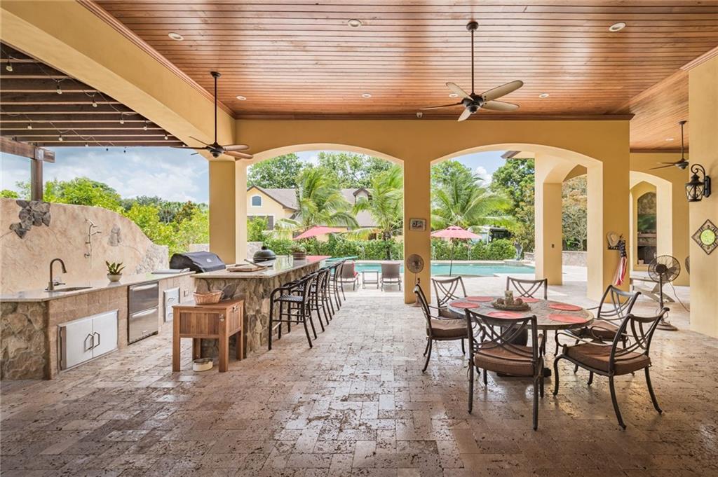 AMAZING FAMILY ESTATE LOCATED ON A QUIET CUL-DE-SAC, BOOSTING 1.4 ACRES OF LUSHLY TROPICAL PARK LIKE SETTING. CONSTRUCTED BY RENOWNED BUILDER WITH ALL THE QUALITY FEATURES IN MIND. THIS ENTERTAINERS PARADISE DELIVERS A WONDERFUL OPEN FLOOR PLAN WITH GENEROUS USE OF DESIGNER ELEMENTS THROUGHOUT. ALL BEDROOMS ARE ON-SUITES FOR LIFES PRIVATE COMFORTS. ONE OF A KIND LANAI WITH OVER 2,000 SQFT OF ROOFED AREA COMPLEMENTED BY FULL SUMMER KITCHEN AND CHARMING OUTDOOR FIREPLACE. NOT 1 BUT 2 PRIVATE APARTMENTS (GUESTHOUSES) 5 CAR GARAGES ON PROPERTY WITH PLENT OF ROOM TO PARK RV/BOAT.
