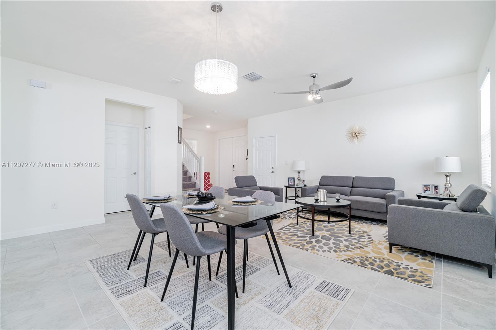 This home features 3 bedrooms, 2.5 baths in 2,407 Sqft with a modern kitchen, stainless steel appliances, double-door refrigerator. Spacious Master Bedroom. Modern tile downstairs and carpet upstairs. Lots of natural light. Full size Washer & Dryer. Two car garage and parking for 2 cars on the driveway. Residents will enjoy a great lakefront Clubhouse with children's playground, resort-style pool and state of the art gym. Excellent location, close to Miami Lakes excellent schools, shopping, restaurants and easy access to the main highways.